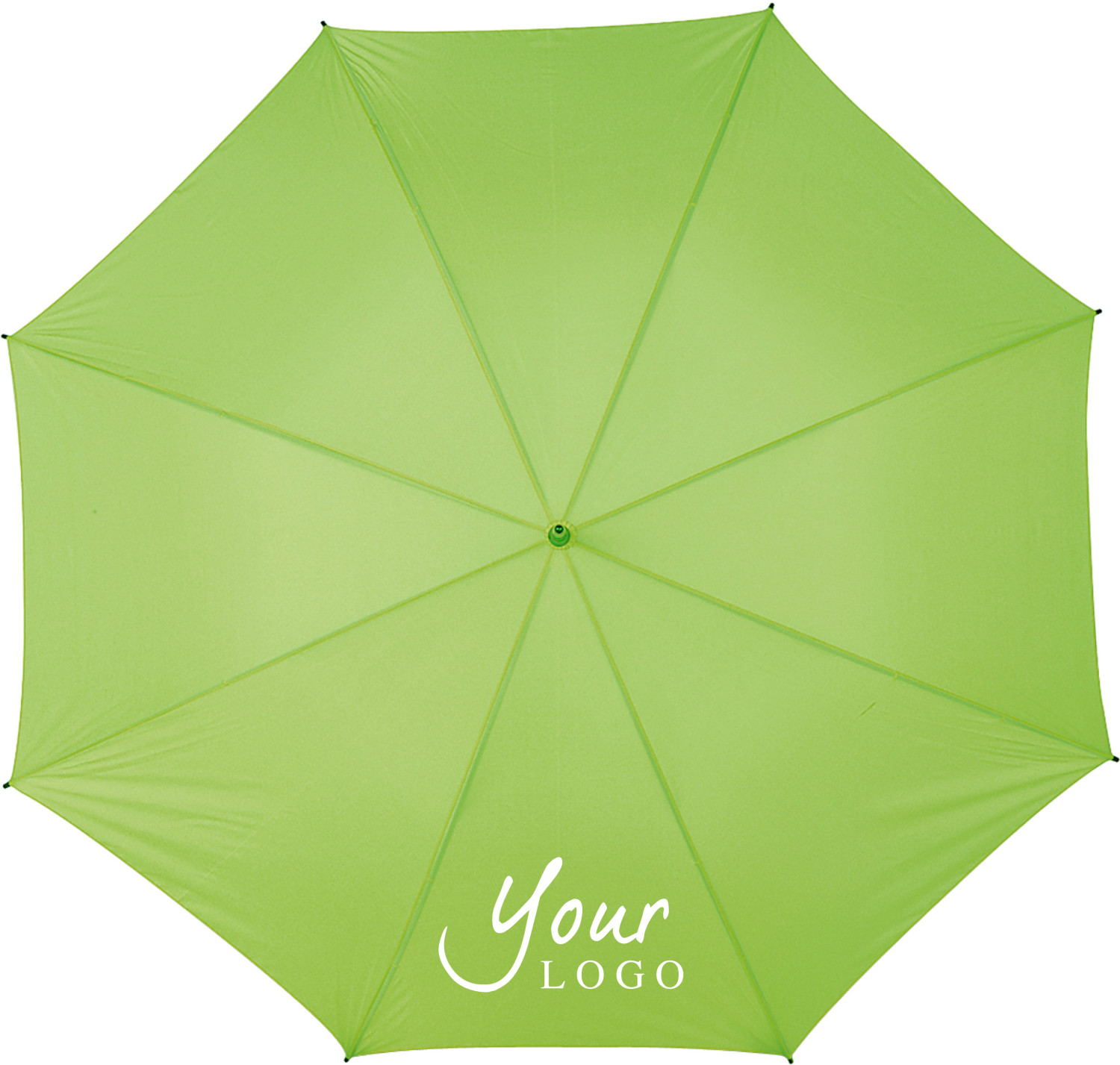 Portierschirm aus Polyester (210T), mit Handöffner, Schaft, Gestell und Spitze aus Metall, Kunststofftips, Klettverschluss, Griff aus EVA-Schaum und Hülle.