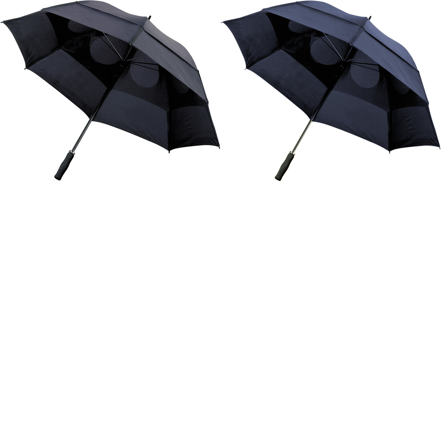 Portierschirm aus Polyester (190T), mit Handöffner, Schaft, Gestell, Spitze mit Sturmsicherung aus Metall, ist Wind-Proof, hat einen Griff und Hülle aus EVA-Schaum.