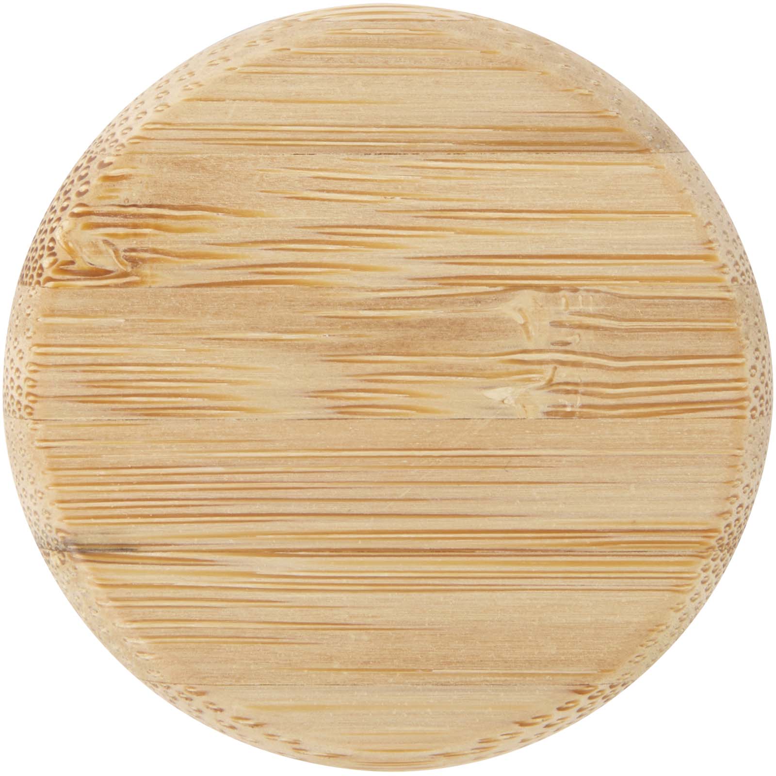 Einwandige Wasserflasche aus Glas mit Drehverschluss aus Bambus, der aus nachhaltigeren und sozial verantwortlicherenn Quellen stammt. Geliefert mit einem praktischen Trageriemen aus Silikon. Verpackt in einer Geschenkbox aus recyceltem Karton. Fassungsvermögen: 500 ml.