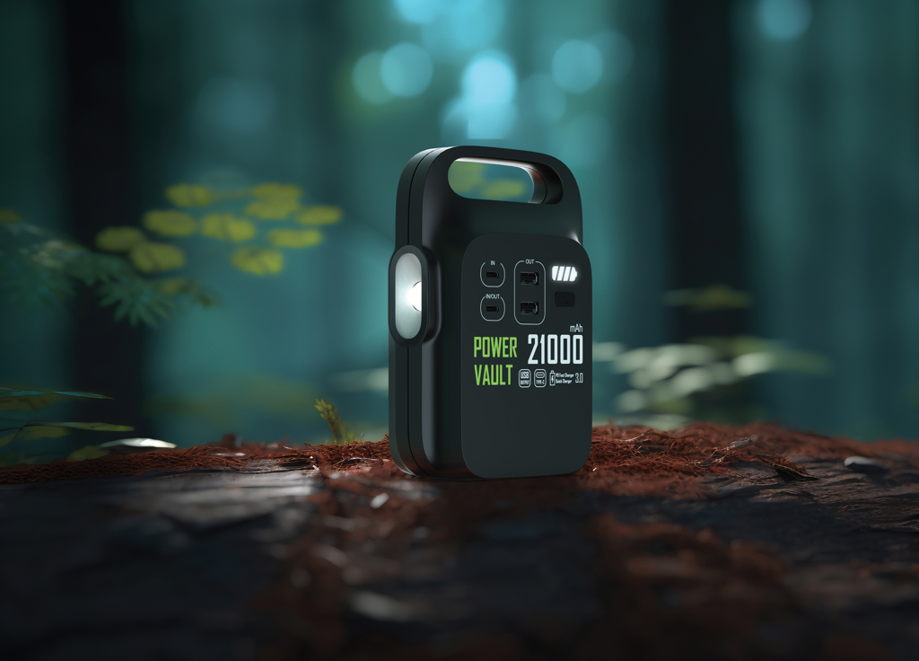 21.000 mAh Power Station aus RCS-zertifiziert recyceltem ABS. Recycelter Anteil insgesamt: 25%, bezogen auf das Gesamtgewicht des Artikels. Die RCS-Zertifizierung gewährleistet eine vollständig zertifizierte Lieferkette für die recycelten Materialien. Die Power Vault ist ideal für den Einsatz im Freien, auf Reisen oder zu Hause für Notfälle. Der 21.000mah-Akku kann über die 3 Ausgangsanschlüsse (2x USB-A, 1x Type-C) mehrere Geräte gleichzeitig aufladen. Mit integriertem 120-Lumen-LED-Licht, das im Notfall bis zu 40 Stunden leuchten kann und über einen SOS-Modus verfügt. Mit Notkurbel für den Fall, dass der Akku komplett leer ist und mehr Energie benötigt wird. Type-C-Input: 5V/2.4A; 9V/2A;12V/1.5A. Type-C-Output: 5V/2,4A; 9V/2A; 12V/1,5A. USB-A Outputs: 5V/2,4A; 9V/2A; 12V/1,5A. IPX 5 Wasserdicht. Perfekt für die Aufladung durch mobile Solarzellen (nicht im Lieferumfang enthalten)