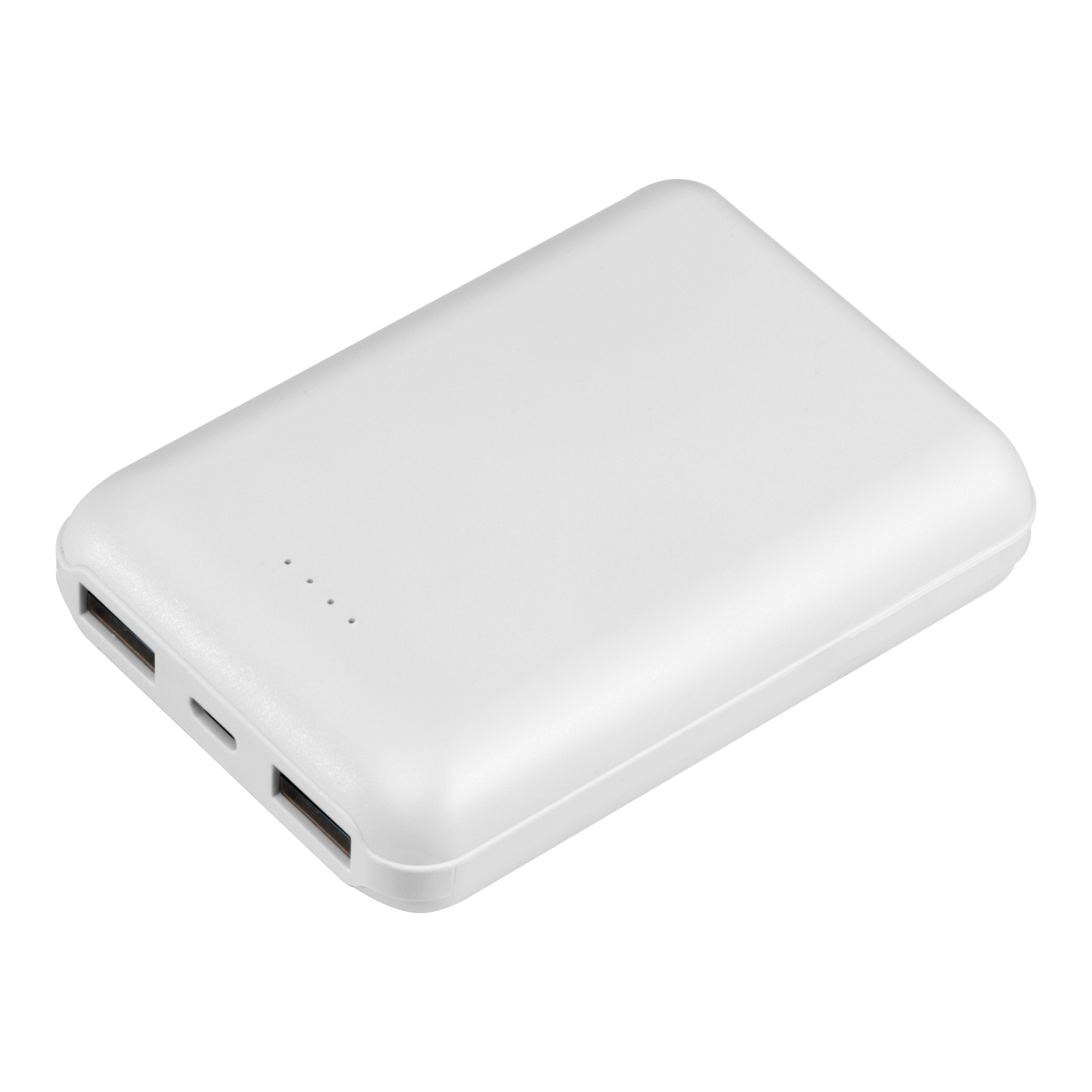 Powerbank aus Kunststoff mit 10.000 mAh Leistung, Ladekabel und -anzeige. Es können 2 Smartphones / Tablets gleichzeitig aufgeladen werden, Input: 5V/2.1A - Output: 5V/2.1A. Ihre Werbung drucken wir auf die glatte Oberfläche.