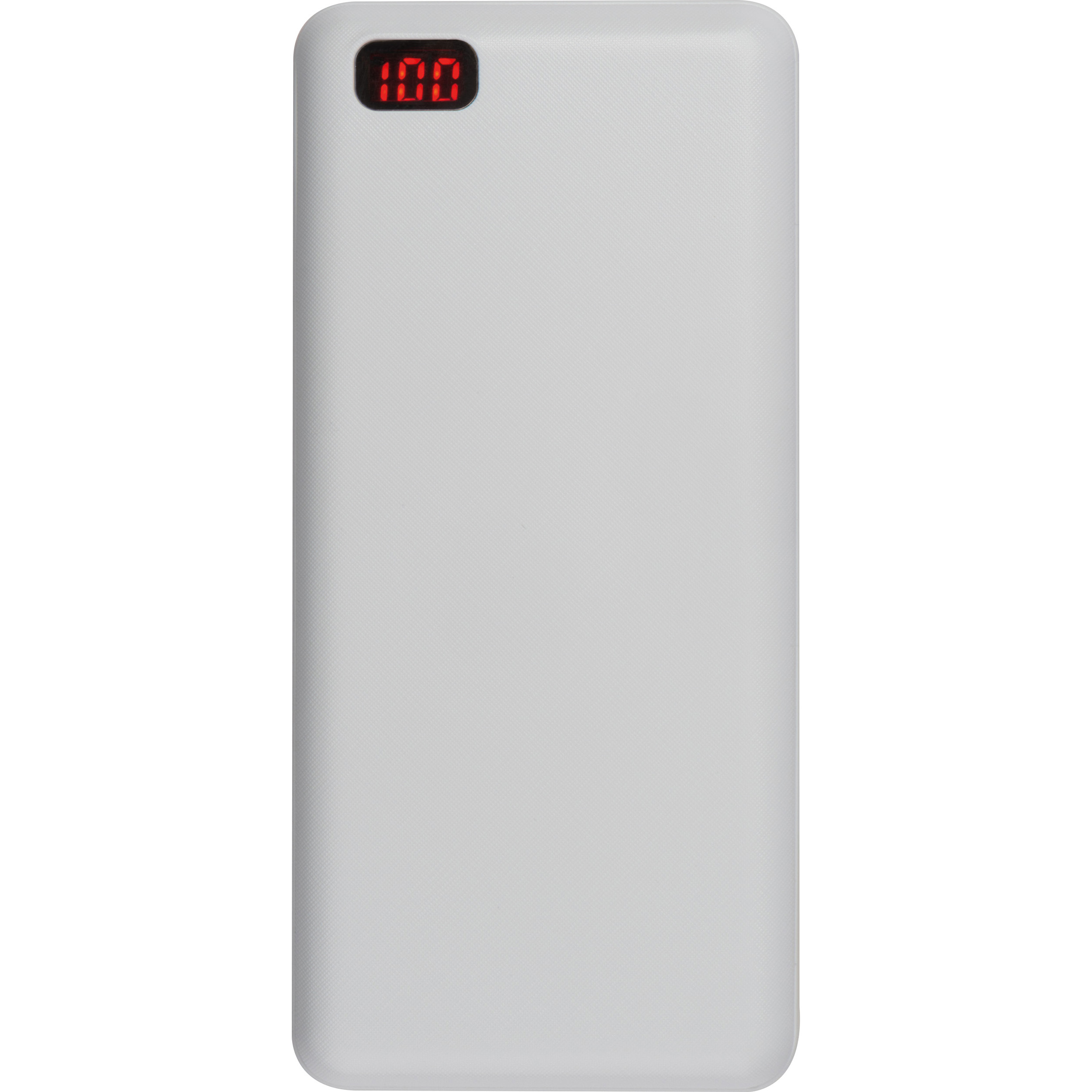 Powerbank mit 20.000 mAh Leistung, digitaler Ladeanzeige und inkl. Ladekabel. Sie können problemlos 2 Geräte gleichzeitig laden. Input: 5V/2A (Micro + Type-C) - Output: 5V/2A (2x USB). Ihre Werbung wird auf die Powerbank gedruckt.