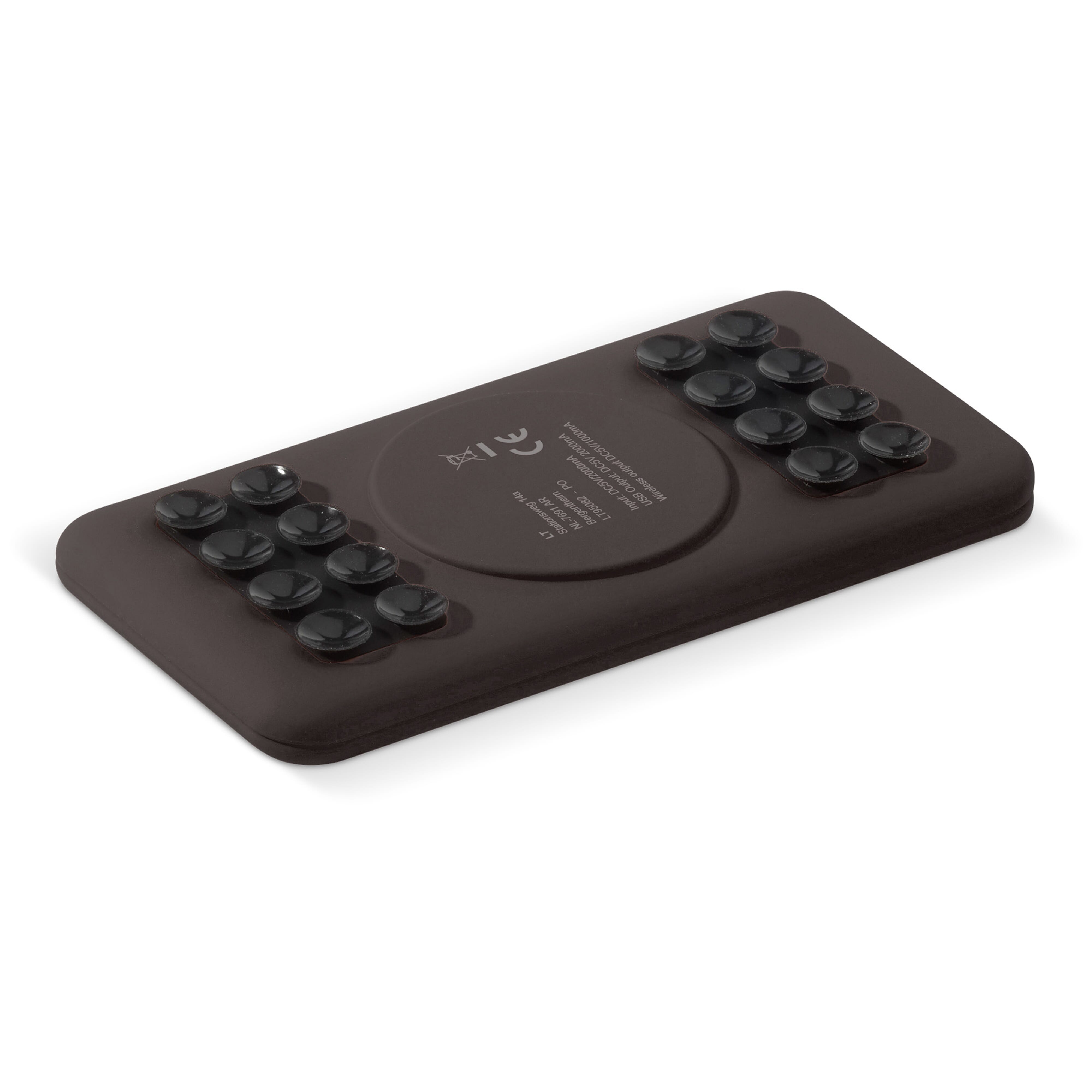 Flache kabellose Powerbank der Serie Blade mit einer gummierten Oberfläche. Die Saugnäpfe sorgen dafür, dass das Smartphone immer verbunden bleibt, auch wenn es mal in einer Tasche ist. Die Powerbank verfügt über USB-Anschlüsse mit denen auch Smartphones ohne Wireless-Charging-Funktion geladen werden können. Einzeln verpackt in einer Geschenkbox.
