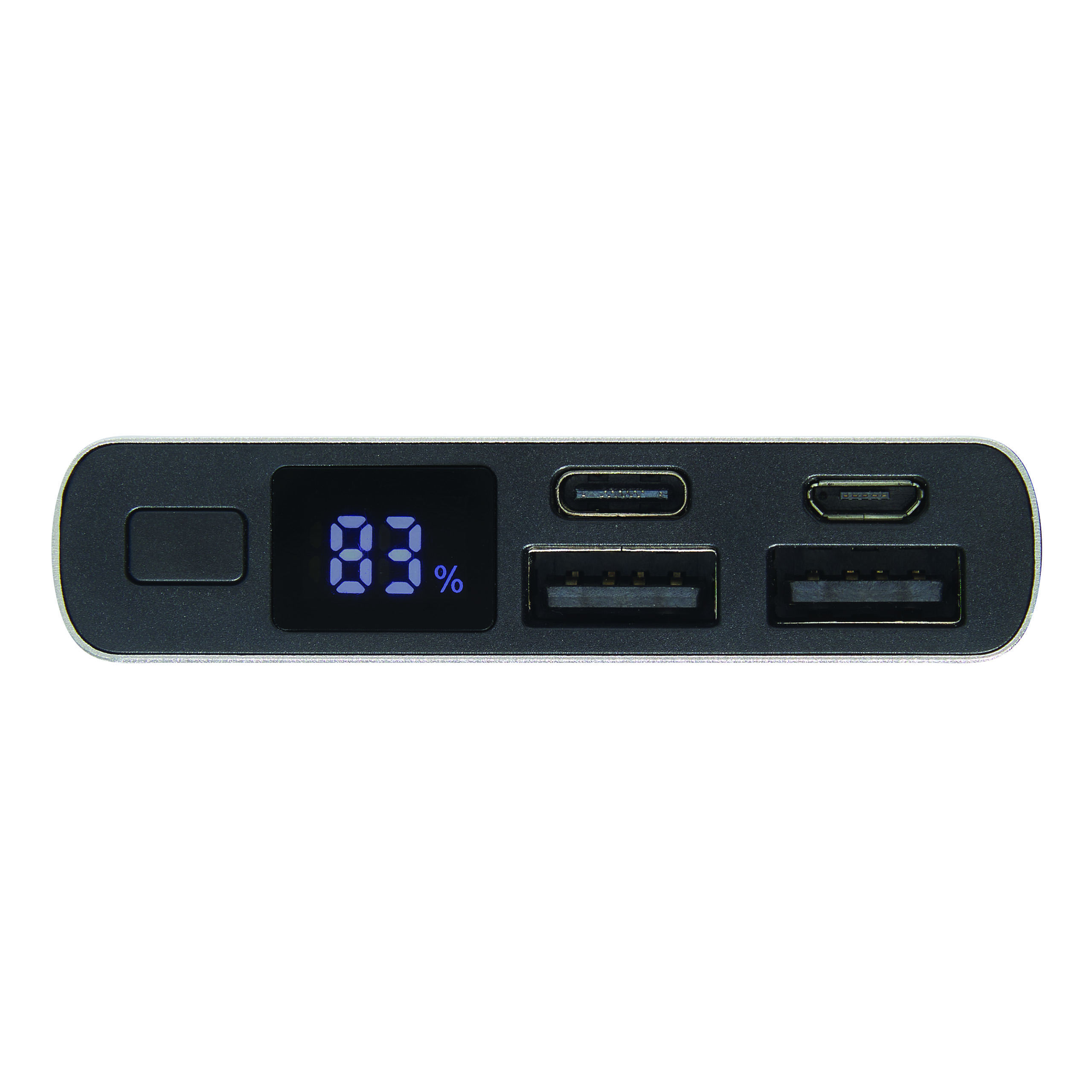 Powerbank CORE: geeignet für Smartphones und USB-betriebene Geräte, inkl. USB-Ladekabel mit USB Typ C Stecker (Länge: ca. 30 cm), mit Ladestandanzeige in Prozent, Ein- und Ausschalter, 1 USB Typ C Eingang / Ausgang, 1 Micro-USB Eingang und 2 USB Typ A Ausgänge, Eingangsleistung: 5V/2A, Ausgangsleistung: 5V/2A (max), Kapazität: 10.000 mAh, leistungsstarker Lithium-Akku, in Box