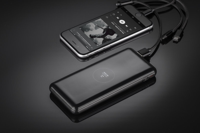 Die FUERTE 15W ist eine Powerbank mit vielen modernen Funktionen. Die wichtigste davon ist die Power Delivery (PD) Schnellladefunktion. Das ist ein Schnellladestandard, der es ermöglicht, eine hohe Leistung über einen Stecker vom Typ USB-C zu übertragen. Die Technologie zeichnet sich durch ein erhöhtes Leistungsniveau aus, im Fall der FUERTE sind es bis zu 18W. Der größte Vorteil des Power-Delivery-Standards ist die Fähigkeit, die Ladeleistung intelligent an das zu ladende Gerät anzupassen. Darüber hinaus verfügt die Powerbank über ein integriertes kabelloses Ladegerät mit einer maximalen Leistung von 15 W, ein digitales Display, das sich unter dem eleganten verspiegelten Gehäuse befindet, und eine Taschenlampe. Der USB-C-Anschluss ist bidirektional - er ist sowohl ein Eingang als auch ein Ausgang, was bedeutet, dass - einschließlich der beiden USB-A-Ausgänge - bis zu drei Geräte gleichzeitig geladen werden können. Das Ladekabel ist im Lieferumfang enthalten.