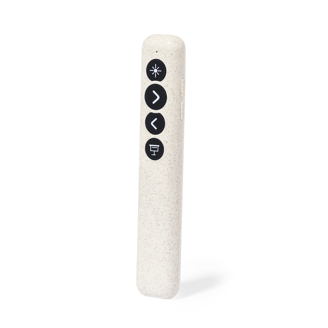 Stilvoller Laserpointer der Klasse 2 mit USB-Anschluss aus Weizenstroh. Speziell für PowerPoint- und Keynote-Präsentationen entwickelt, mit seitlicher Aktivierungstaste, Vorlauf-, Pause- und Rücklauftaste. Gehäuse speziell für Tampondruck-Branding entwickelt. Batteriebetrieben: 1xAAA enthalten. Präsentiert in einer Design-Kraftstoffbox, mit Bedienungsanleitung in Englisch und Spanisch. Weizenstroh fördert die Verwendung natürlicher Rohstoffe und reduziert so die Schadstoffemissionen.