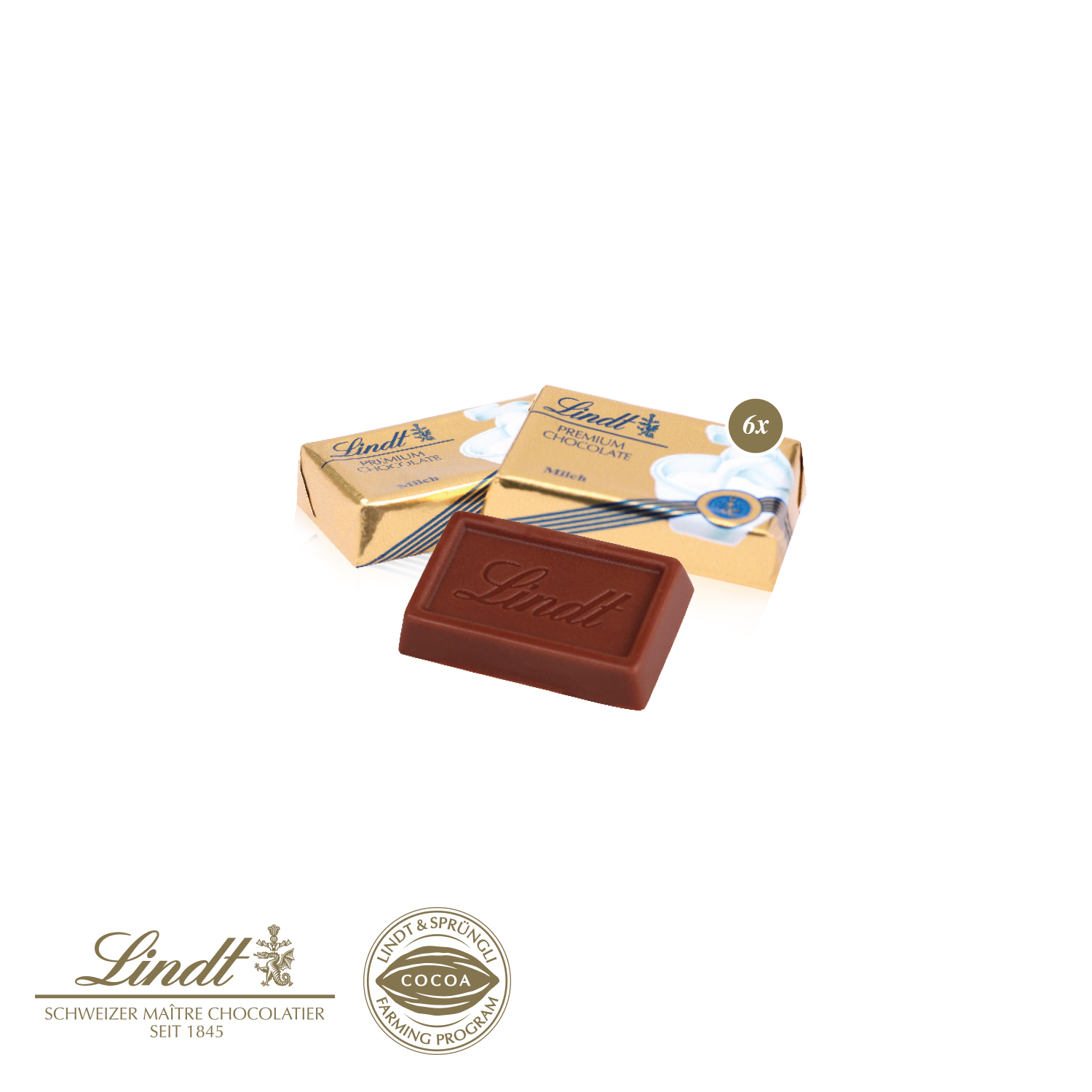 6 Schokotäfelchen (ca. 30 g) "Vollmilch" von Lindt.