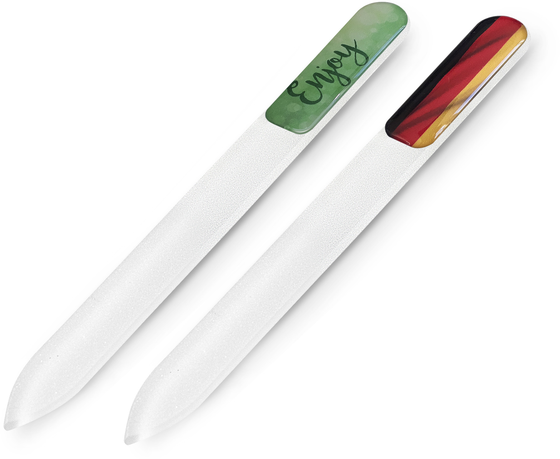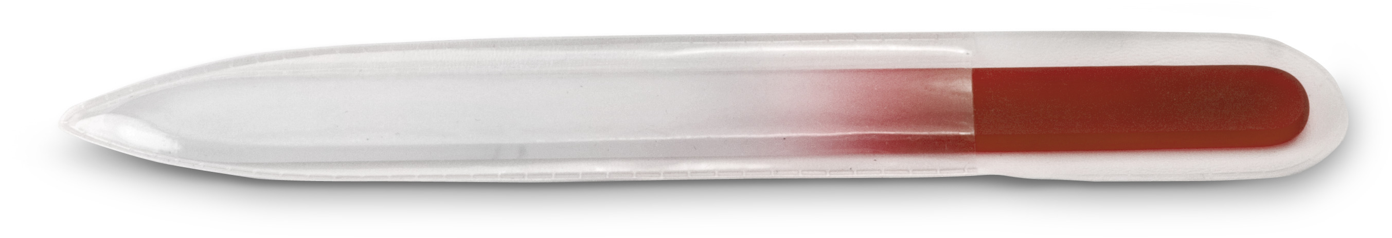 Zur regelmäßigen Nagelpflege gehört in erster Linie die richtige Nagelfeile. Besonders gut eignet sich unser Renner - die Glasnagelfeile: sie ist sehr stabil und liegt gut in der Hand. Langlebigkeit und einfache Reinigung aufgrund der geätzten Schleiffläche aus Glas! Wir bieten die Glasfeile standardmäßig mit drei verschiedenen Kopffarben an. Weitere Farben sind jedoch auf Anfrage möglich. Die Feilen sind einzeln in einem transparenten Etui verpackt.