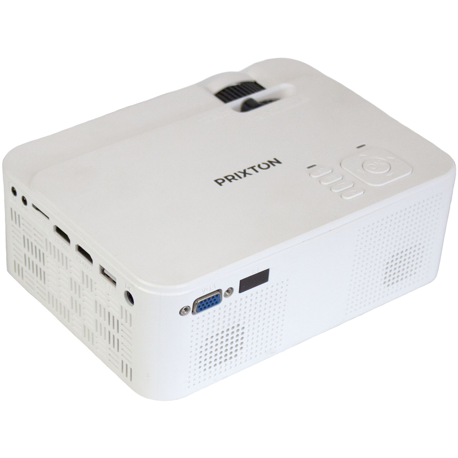 Projektor mit einer Auflösung von 800 x 480 und einem Projektionsabstand von bis zu 5 Metern. Lampe mit einer Leistung von bis zu 2.800 Lumen. Weißes LED-Licht 40 ANSI Lumen. Kontrast 500:1. LED-Glühbirne mit mehr als 50.000 Stunden Wiedergabezeit. Projektion von 30 bis 150 Zoll. Kann an alle Arten von Geräten mit HDMI-Anschluss angeschlossen werden. Wiedergabe von Video, Audio, Foto und Texten. Eingänge: VGA, 2 x HDMI, USB 2.0, Micro-SD-Karte und AV IN. Inklusive 2 Stereolautsprecher und Fernbedienung. Wird in einer luxuriösen Geschenkbox geliefert.