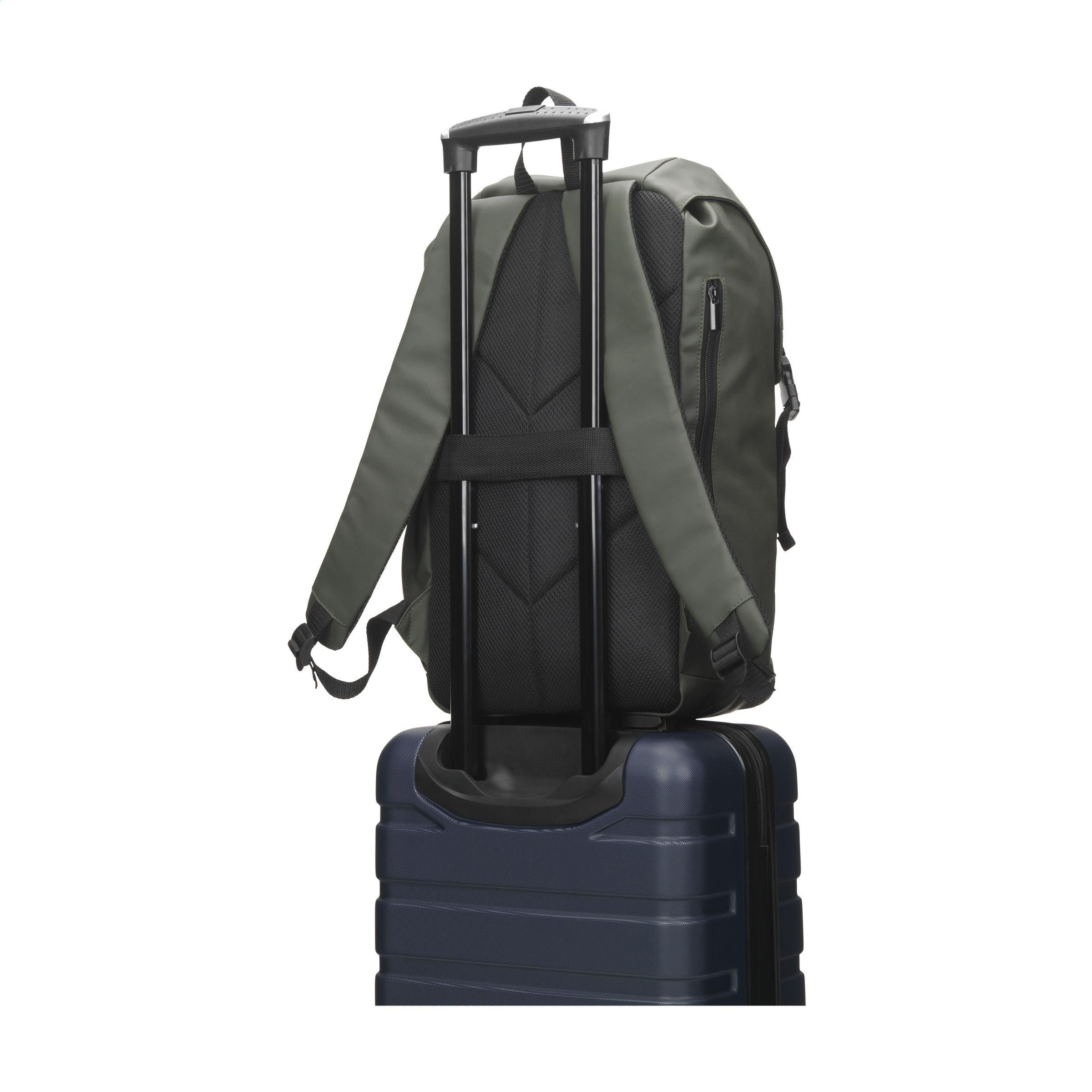 Sehr geräumiger Rucksack aus wasserabweisendem, 100% recyceltem Polyester. Dieser Rucksack verfügt über ein sehr geräumiges Hauptfach mit separatem Laptop-Fach (bis zu 15,6 Zoll), ein zusätzliches Reißverschlussfach an der Seite und ein Fach für eine Trinkflasche. Die verstellbaren Schultergurte und der Rücken sind mit atmungsaktivem Mesh und Schaumstoff für zusätzlichen Tragekomfort ausgestattet. Sauber verarbeitet und gefüttert mit 100% recyceltem 210D-Polyester. Ausgestattet mit einem Kordelzugverschluss und einer Überschlagklappe mit Druckknöpfen sowie einem reflektierenden Akzent für bessere Sichtbarkeit im Dunkeln. Perfekt als Sporttasche, mit viel Platz für Kleidung und Schuhe, aber auch ideal als Reisetasche oder Schulranzen. GRS-zertifiziert. Fassungsvermögen ca. 20 Liter.