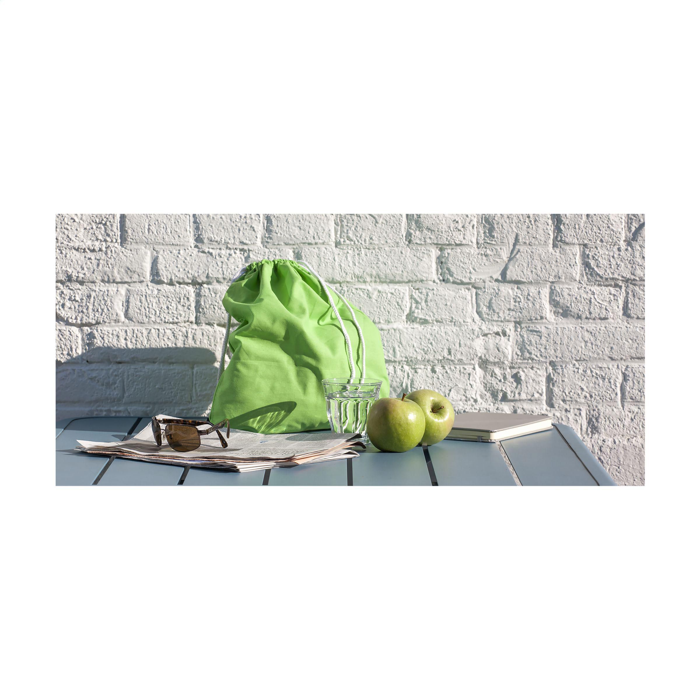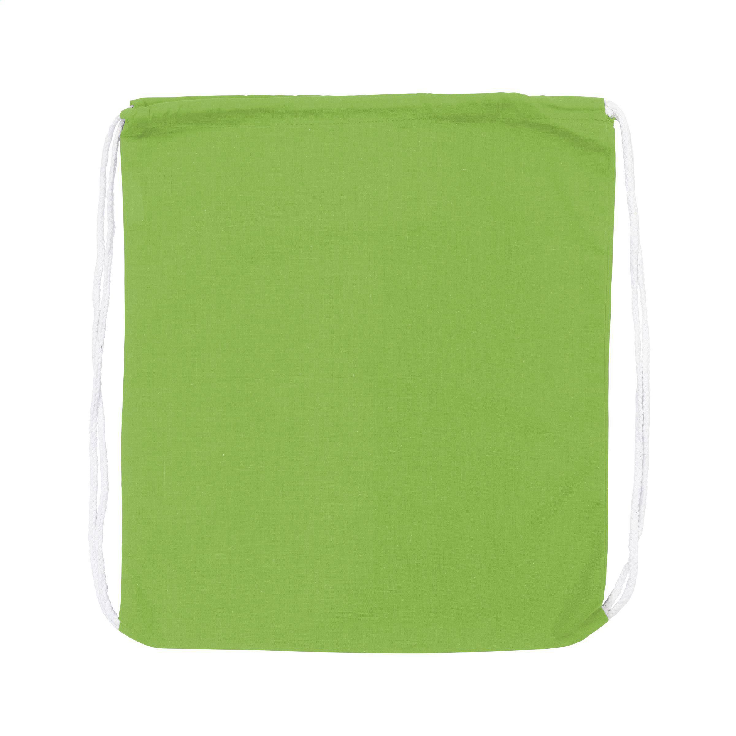 Rucksack aus 100% Baumwolle (120 g/m²). Mit Zugkordel. Fassungsvermögen ca. 8 Liter