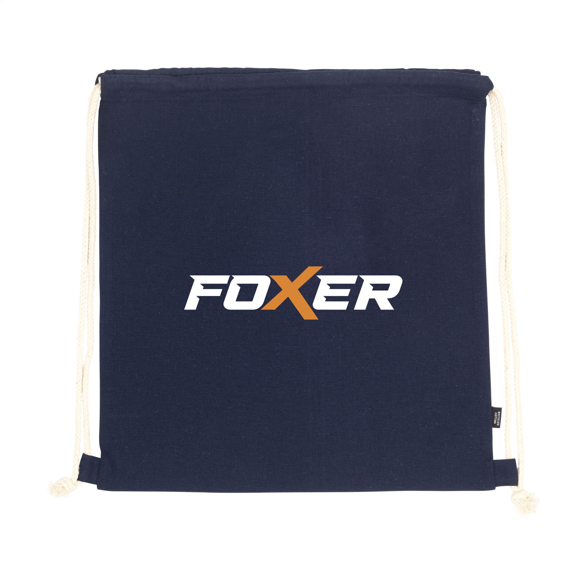 WoW! Rucksack mit Kordelzug aus 80% recycelter Baumwolle und 20% recyceltem Polyester (150 g / m²). GRS-zertifiziert. Recyceltes Material insgesamt: 100%. Fassungsvermögen ca. 7 Liter.