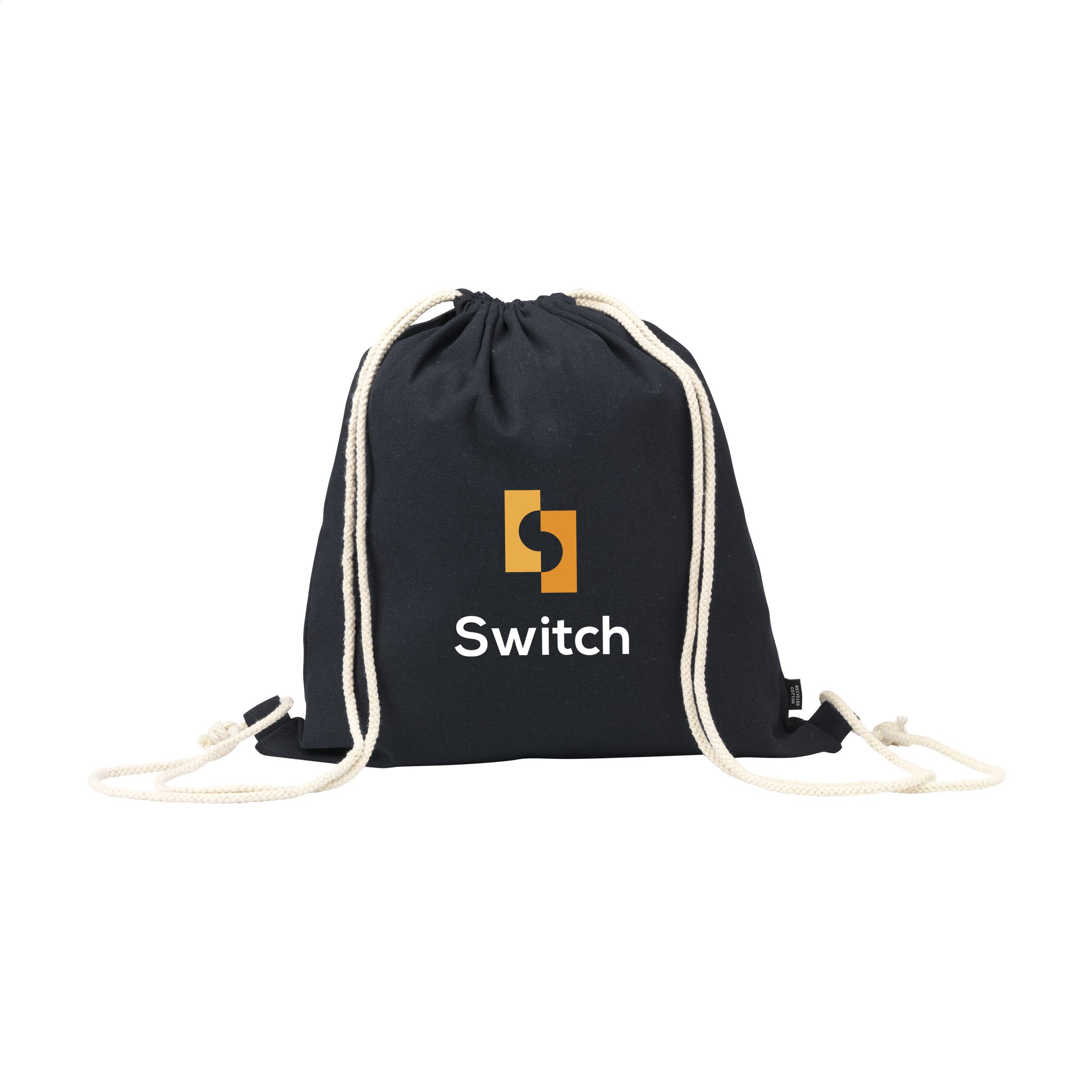 WoW! Rucksack mit Kordelzug aus 80% recycelter Baumwolle und 20% recyceltem Polyester (150 g / m²). GRS-zertifiziert. Recyceltes Material insgesamt: 100%. Fassungsvermögen ca. 7 Liter.