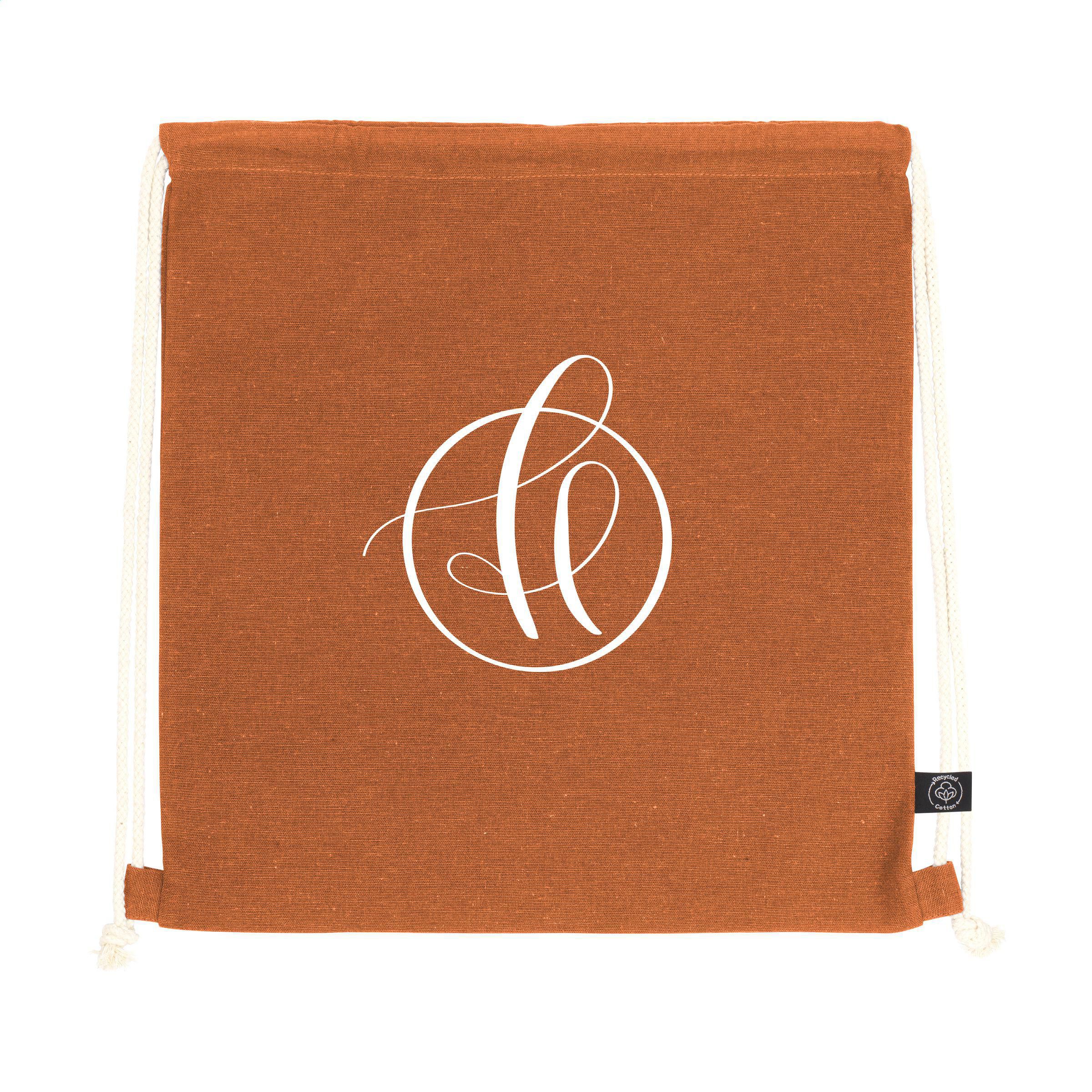 Rucksack mit Kordelzug aus 80% recycelter Baumwolle und 20% recyceltem Polyester (150 g/m²). GRS-zertifiziert. Recyceltes Material insgesamt: 100%. Fassungsvermögen ca. 7 Liter.
