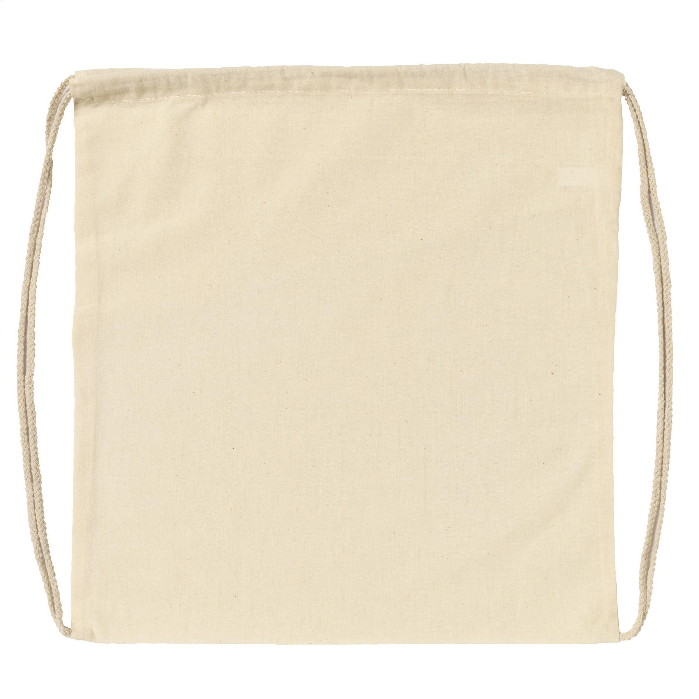 Rucksack aus 100 % Baumwolle (100 g/m²). Mit Zugkordel. Fassungsvermögen ca. 8 Liter.