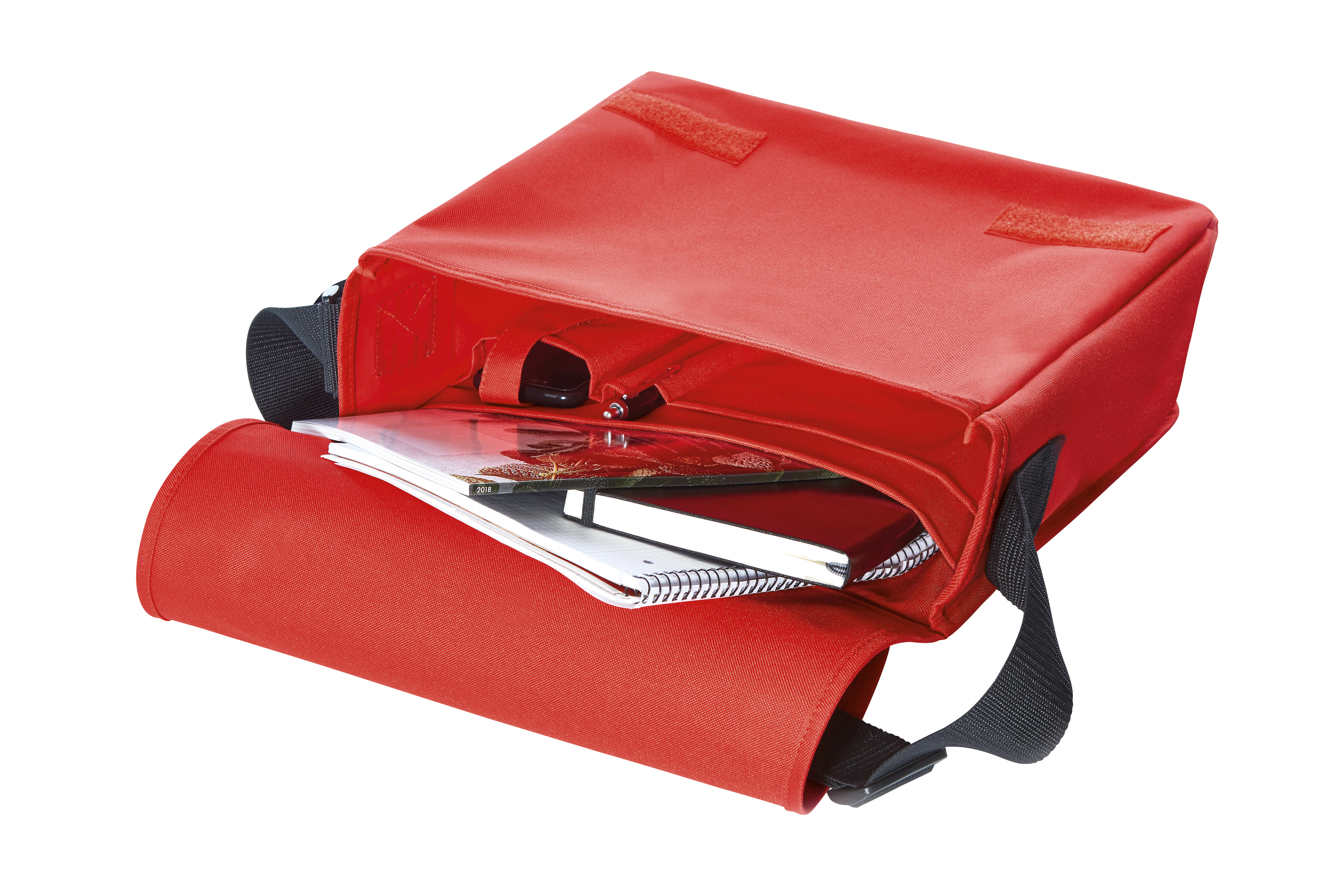 Geräumiges Hauptfach mit Organizer-Elementen; flaches Einsteckfach innen; gepolsterter Rücken; längenverstellbarer Schultergurt; großer Überschlag mit Klettverschluss