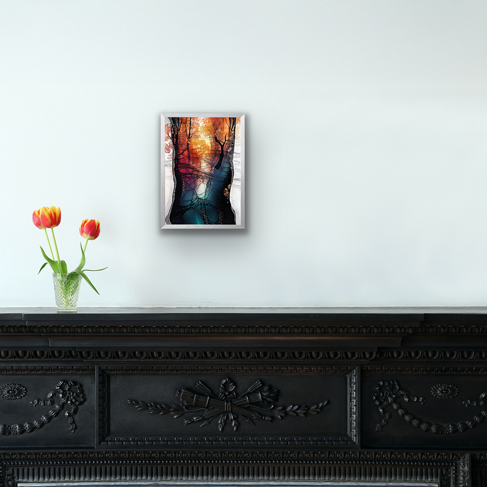 Die Rot- und Blautöne strahlen eine Energie aus, die sowohl beruhigend als auch belebend wirkt. Während das Rot in den oberen Bereichen des Bildes die Wärme und Vitalität des Lebens symbolisiert, bringt das Blau in den tieferen Bereichen eine wohltuende Ruhe und Gelassenheit. Zwischen diesen Polen entsteht eine fließende Bewegung, die an das ewige Wechselspiel der Kräfte in der Natur erinnert – ein Tanz der Elemente, der das Leben in all seiner Vielfalt und Tiefe widerspiegelt.