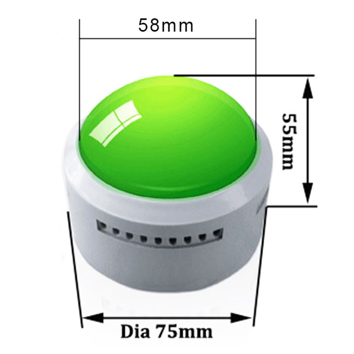 Nach dem Drücken des Push-Buttons ertönt der Sound und das LED-Licht blinkt. Kunststoffgehäuse und Push-Button annähernd nach Pantone. Wir können einen Sound oder auch mehrere unterschiedliche Sounds aufspielen. Nach jedem Drücken des Push-Buttons ist dann in der Reihenfolge der nächste Sound zu hören. Inklusive 2 Stück Import-Batterien.
