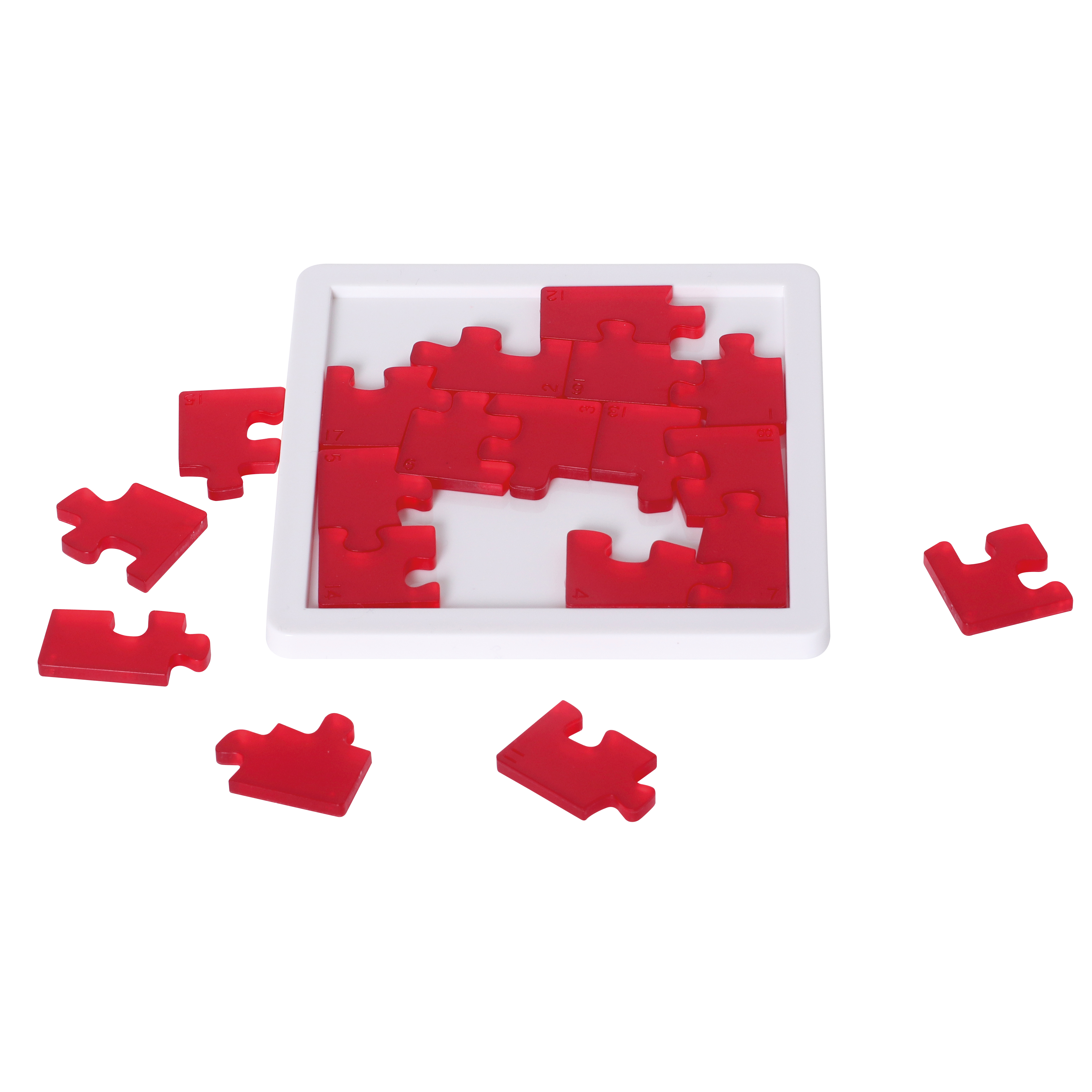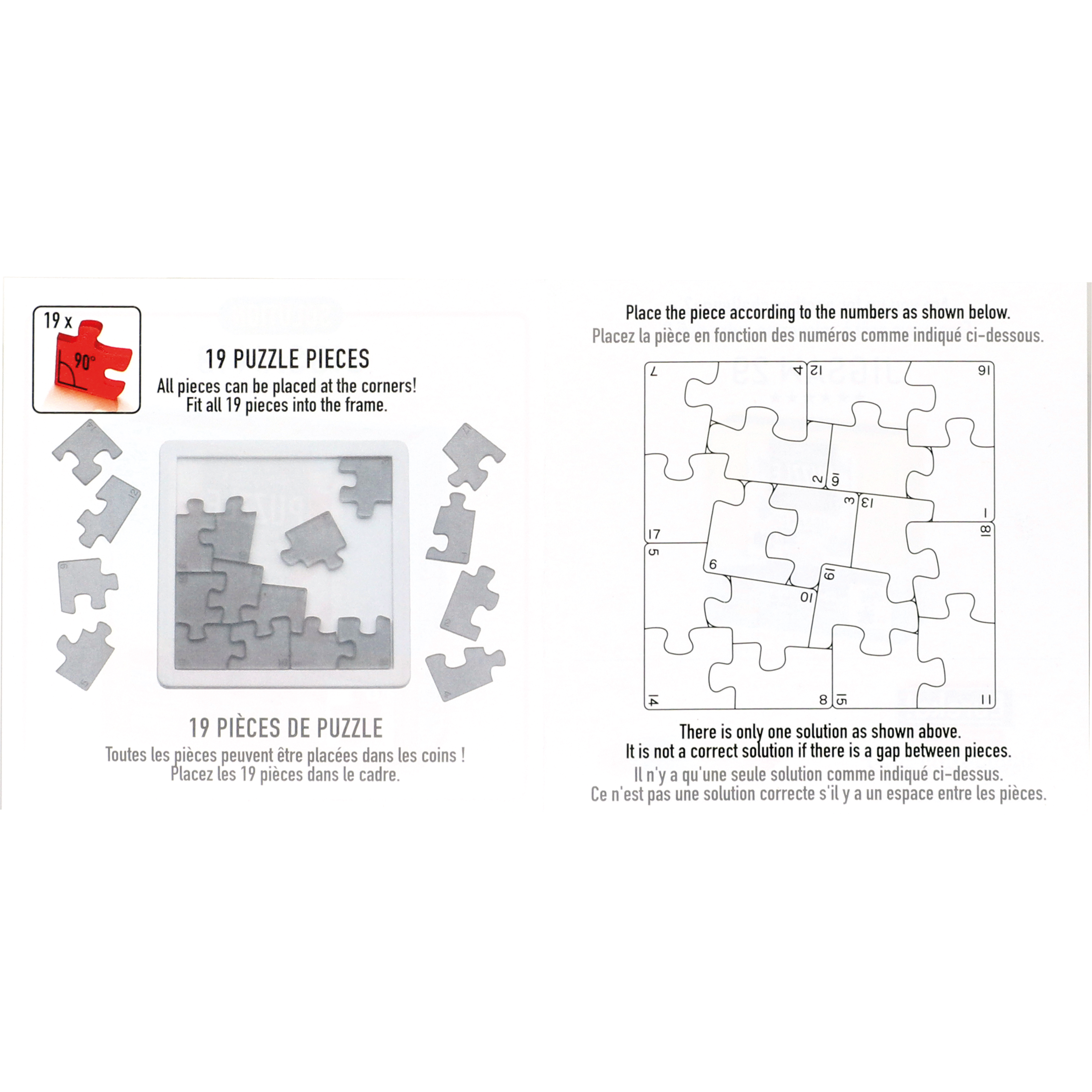 Puzzle mit außergewöhnlichen Puzzleteilen. Wer schafft es, dass alle 19 Teile Platz im Rahmen finden? Mit Lösung. 5 Sterne.