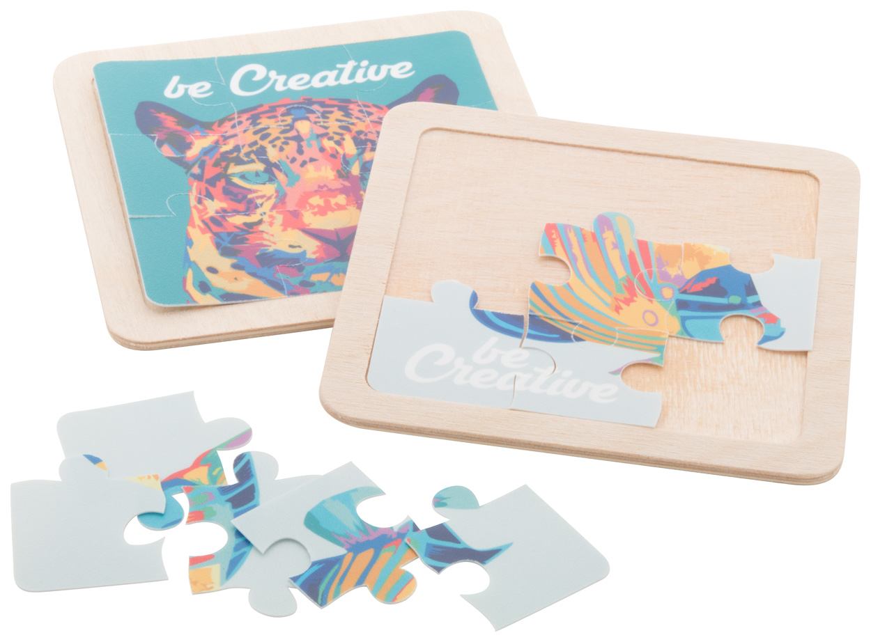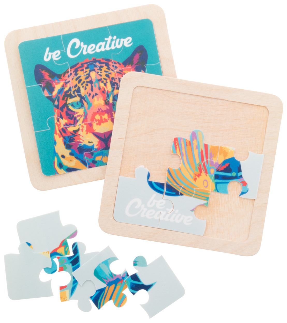 9-teiliges Puzzle mit individuellem Motiv im Holzrahmen (laminierte Birke). Preis inklusive UV LED Druck. Mindestmenge: 100 Stk.