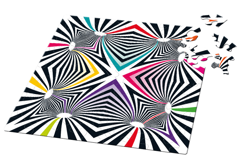 Quadratisches Puzzle in tollem Design! Puzzlegröße fertig: 12,5 x 12,5 cm Größe Puzzlebox: 9 x 9 x 1,8 cm