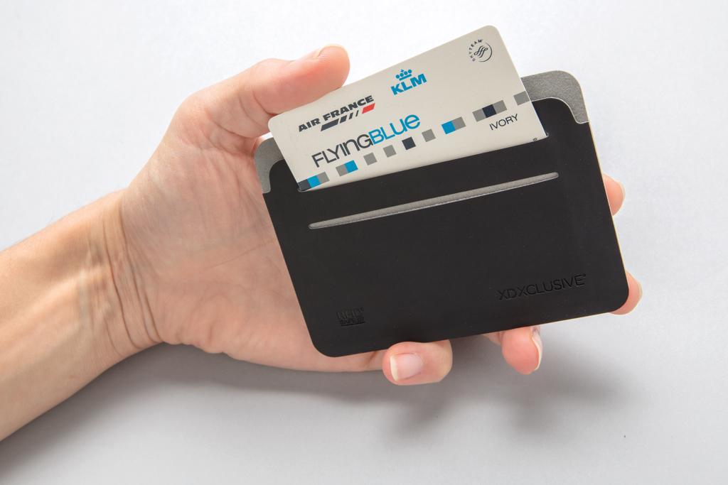 Dieser komfortable Kartenhalter ist speziell designt um Ihre Karten zu schützen. Der Inhalt wird durch RFID blockierendes Material geschützt. 4 Kartenfächer gewähren Platz und Schutz für bis zu 8 Karten. Registered design® NFC-Blockierung (13,56 MHz)