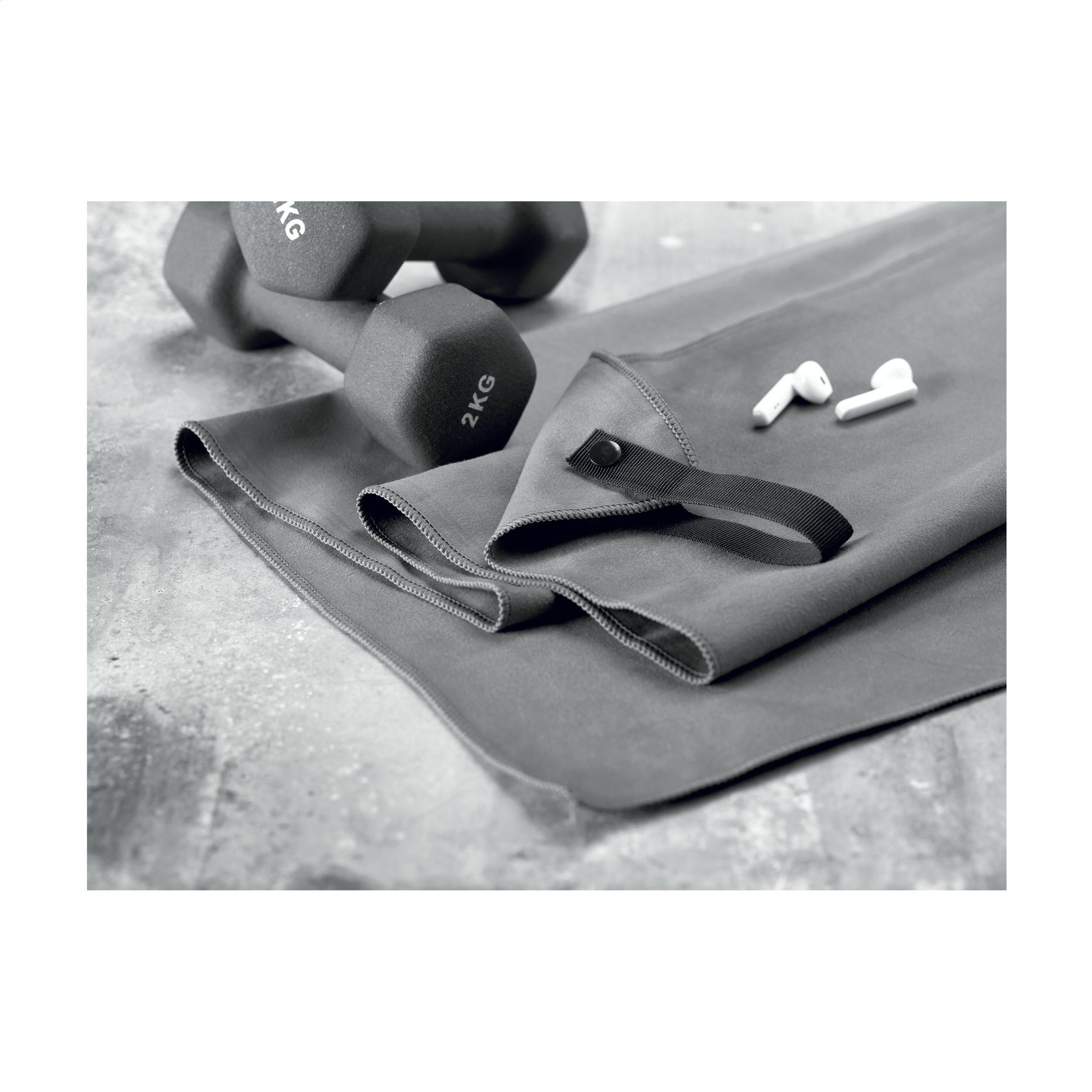 Praktisches Mikrofasertuch (100 x 50 cm) aus 80 % Mikrofaser und 20 % Polyamid. Dieses Sporttuch hat eine hervorragende Saugfähigkeit und ist unglaublich leicht, fühlt sich angenehm weich an und trocknet sehr schnell. Mit Aufhängeöse. Lieferung im praktischen Beutel (Größe 17,5 x 13,3 cm). Ideal für den Einsatz während und nach einer intensiven Sporteinheit.