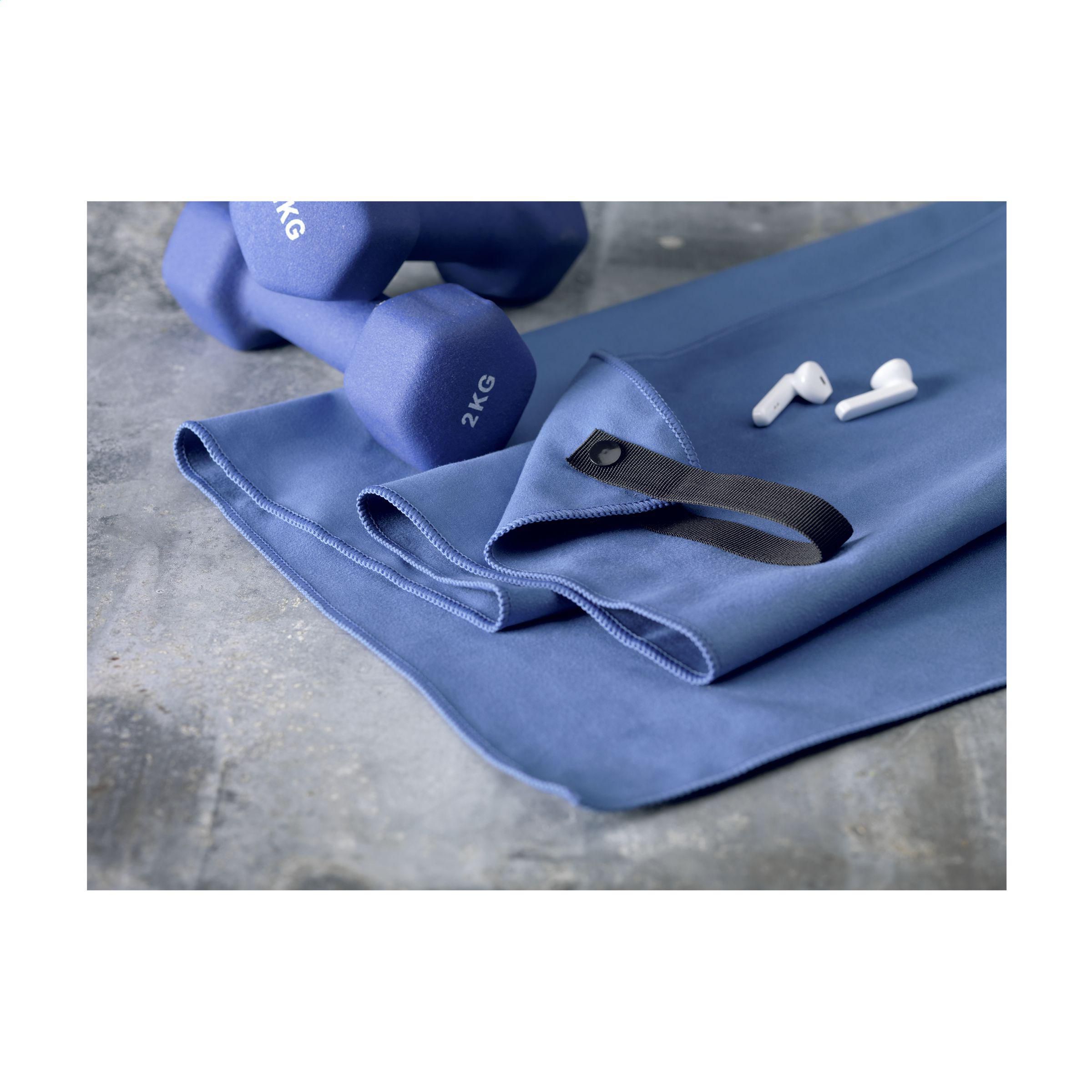 Praktisches Mikrofasertuch (100 x 50 cm) aus 80 % Mikrofaser und 20 % Polyamid. Dieses Sporttuch hat eine hervorragende Saugfähigkeit und ist unglaublich leicht, fühlt sich angenehm weich an und trocknet sehr schnell. Mit Aufhängeöse. Lieferung im praktischen Beutel (Größe 17,5 x 13,3 cm). Ideal für den Einsatz während und nach einer intensiven Sporteinheit.