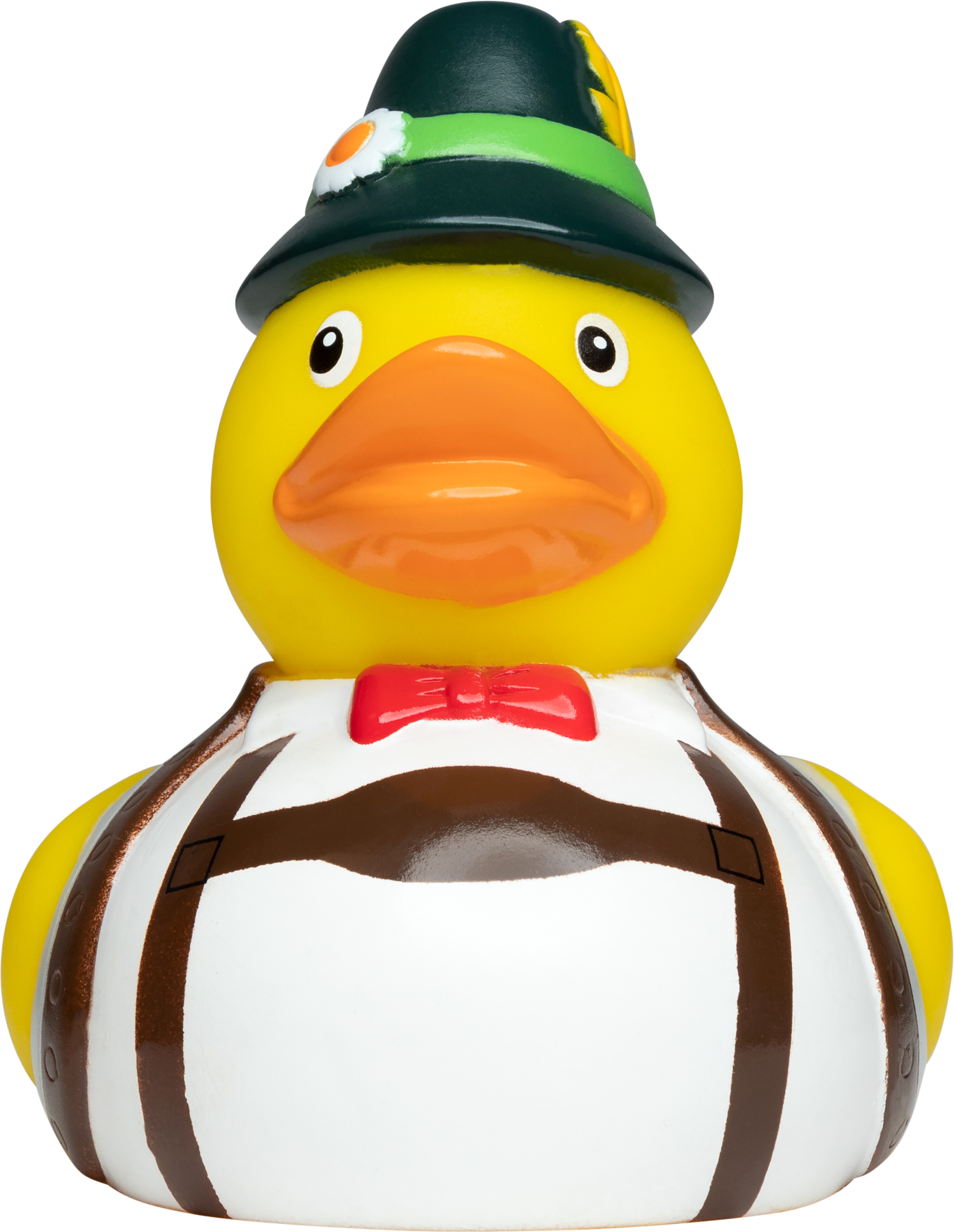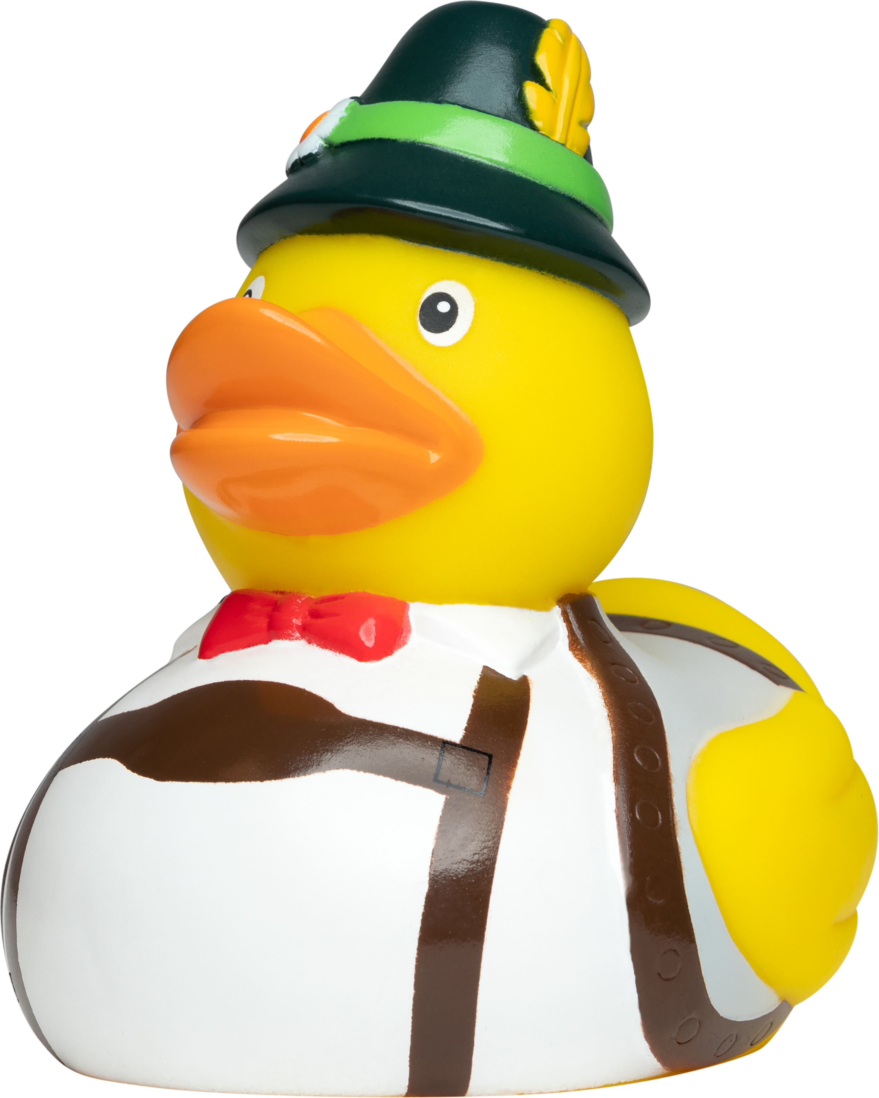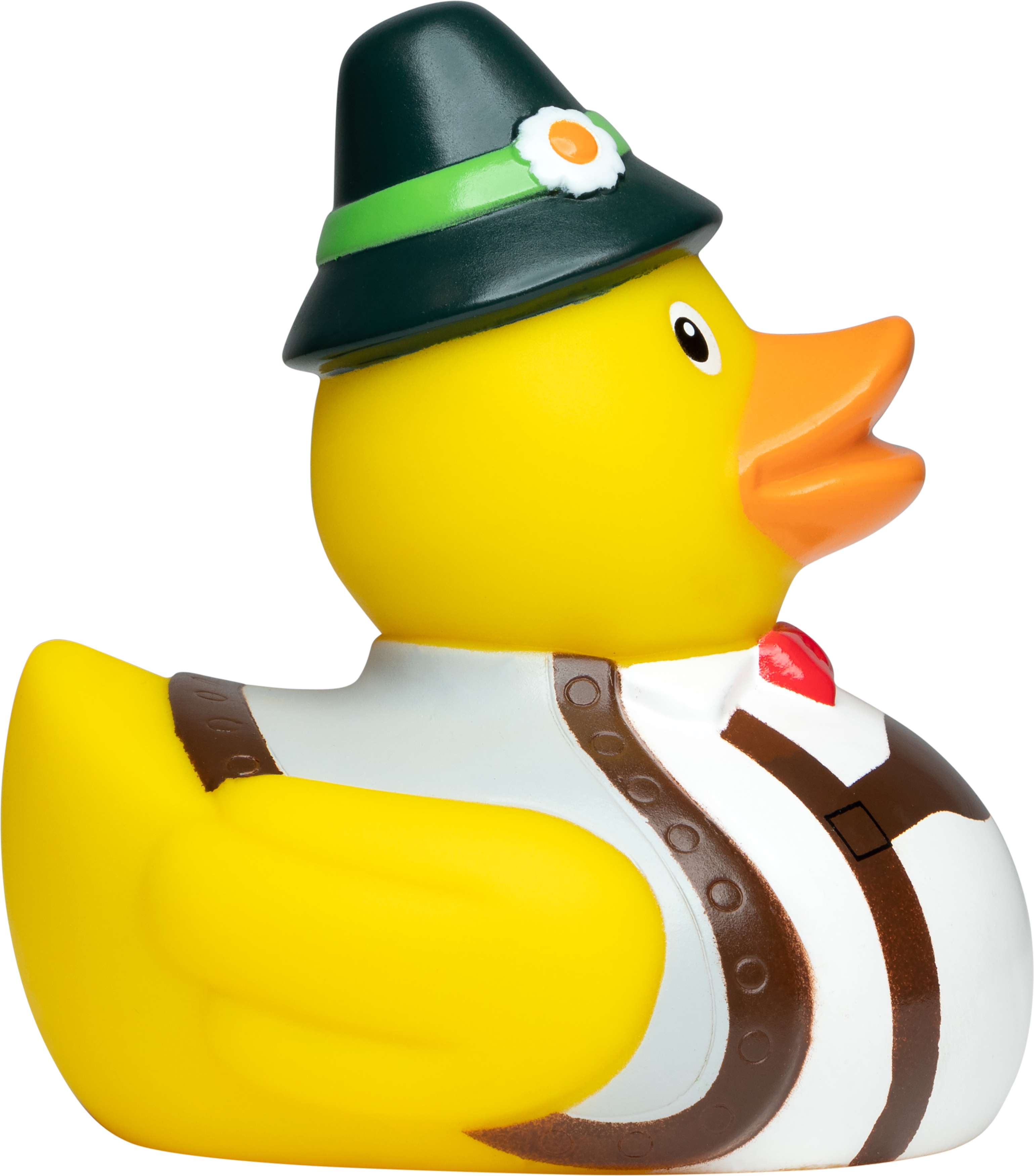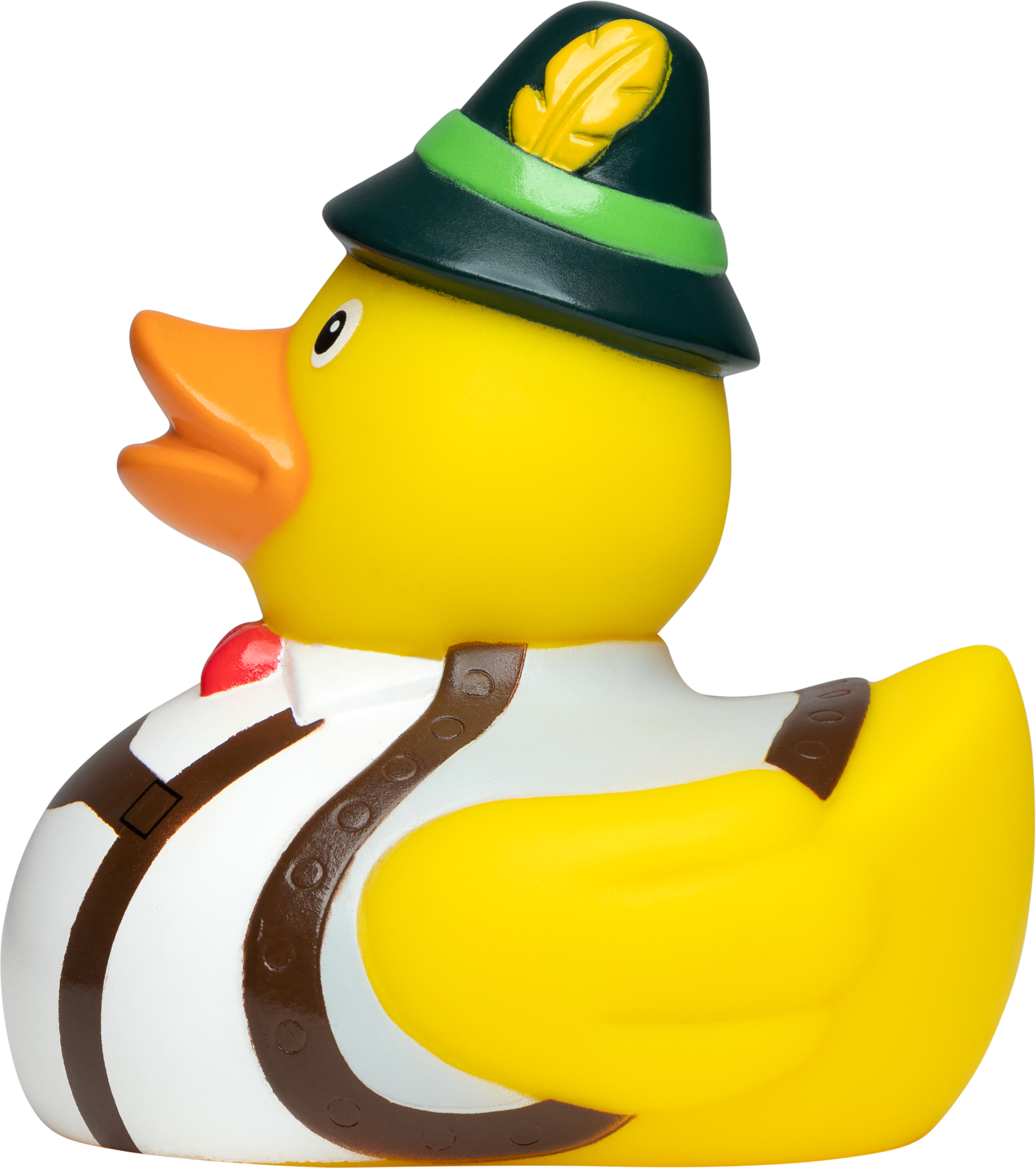 Unser Bayer kommt traditionell bayrisch mit Lederhose und Trachtenhut daher. Aber diese Badeente ist nicht nur die Richtige für Bayern Fans, sondern auch für alle anderen ein richtiger Hingucker.