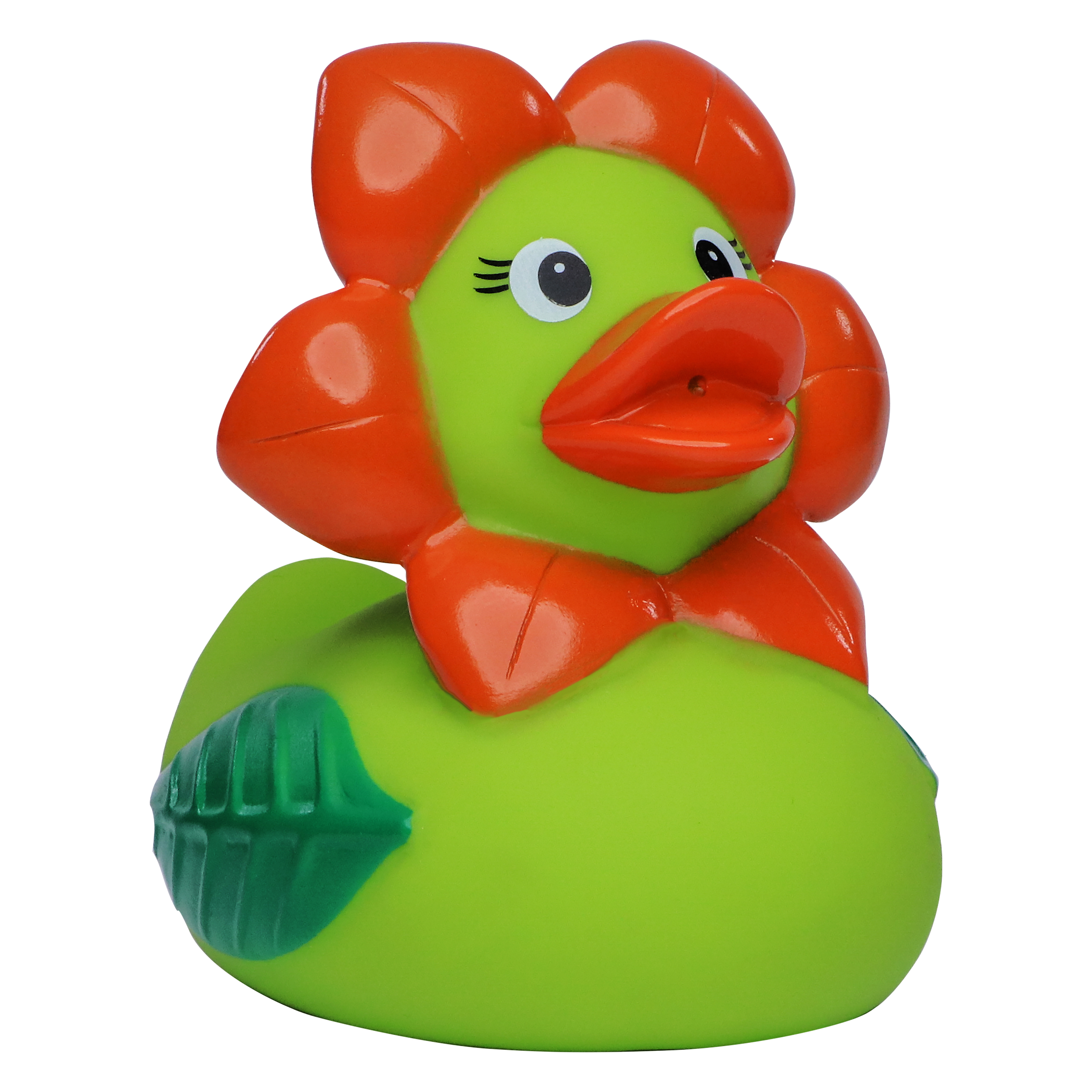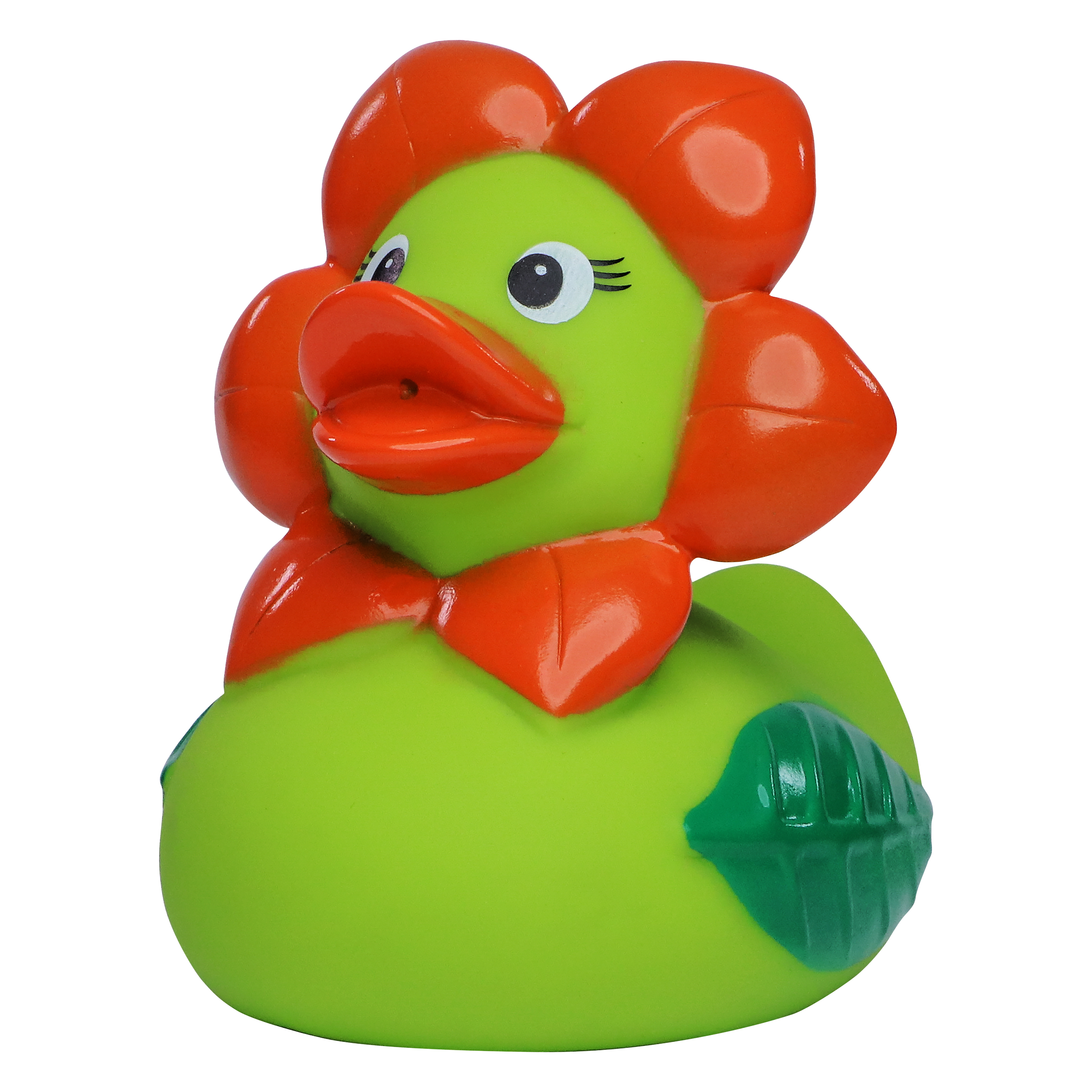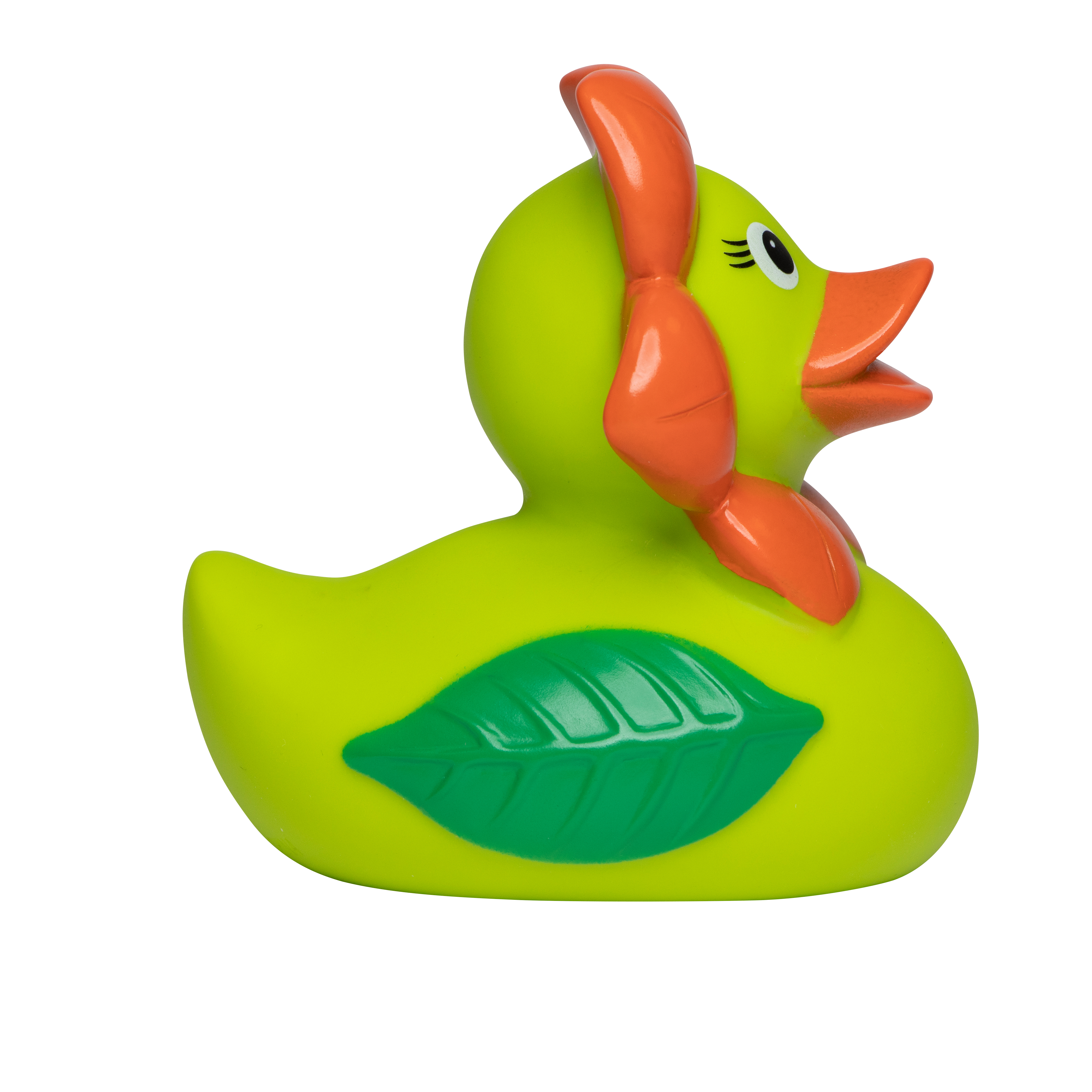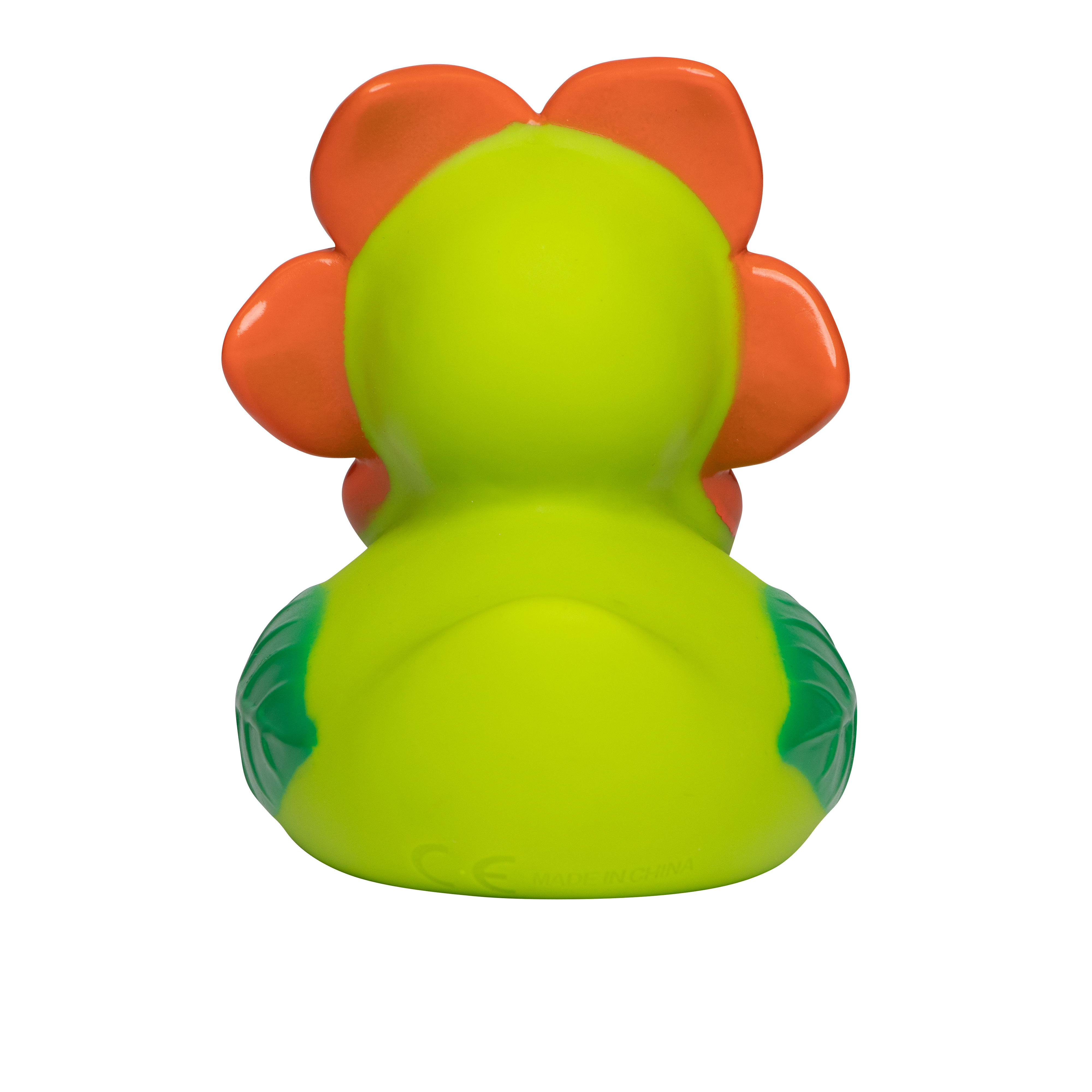 Bei dieser blumigen Ente bekommt der Begriff Grünschnabel eine ganz neue Bedeutung - dabei ist ihr Schnabel, wie bei unseren anderen Enten auch, im typischen Orange, nur das Gefieder ist grün. Um ihren Kopf wächst ein Kranz von Blütenblättern und da, wo andere Enten ihre Flügel haben, hat sie grüne Blätter. Diese Ente ist eine richtige Augenweide und eine blumige Aufmerksamkeit, die unter Garantie niemals welken wird!
