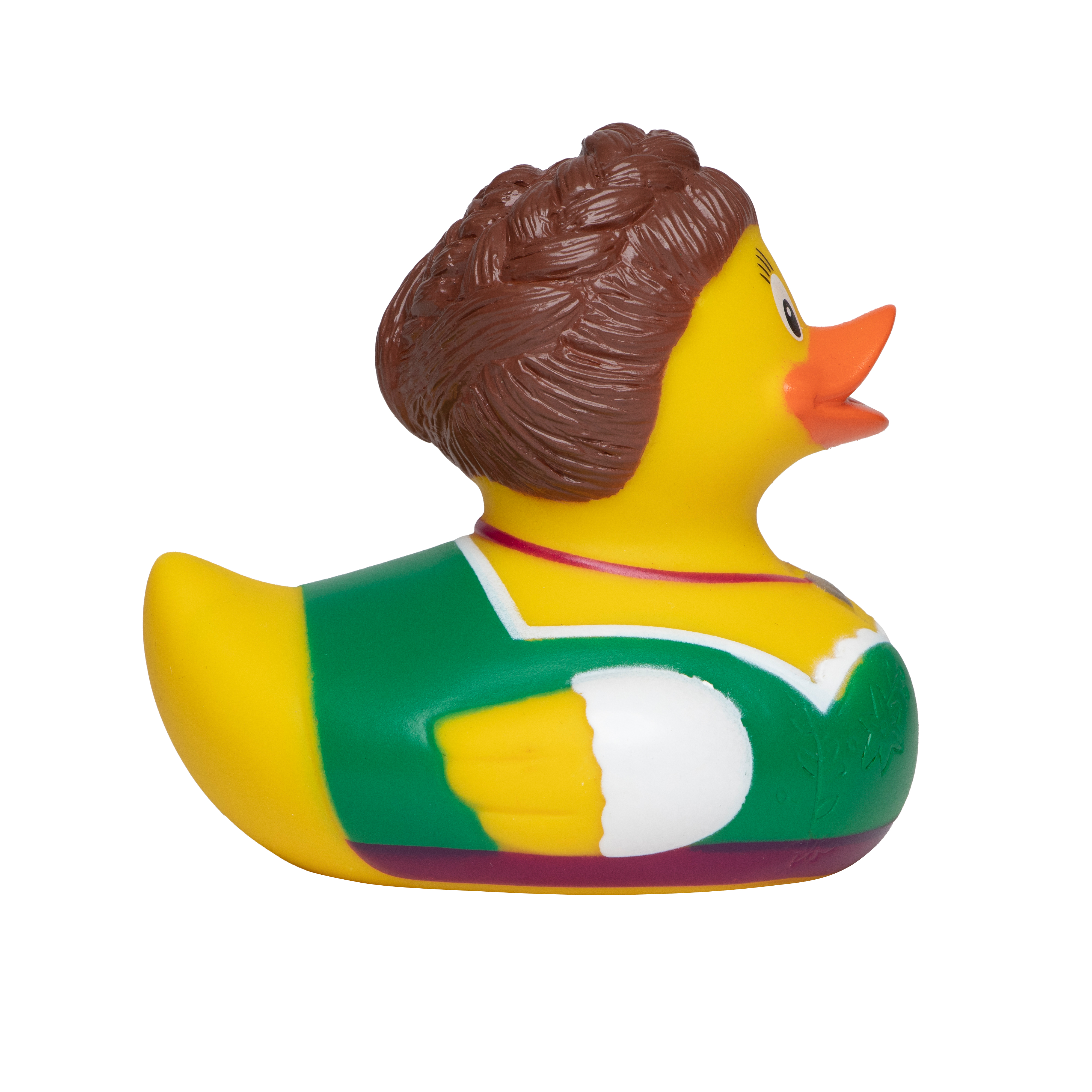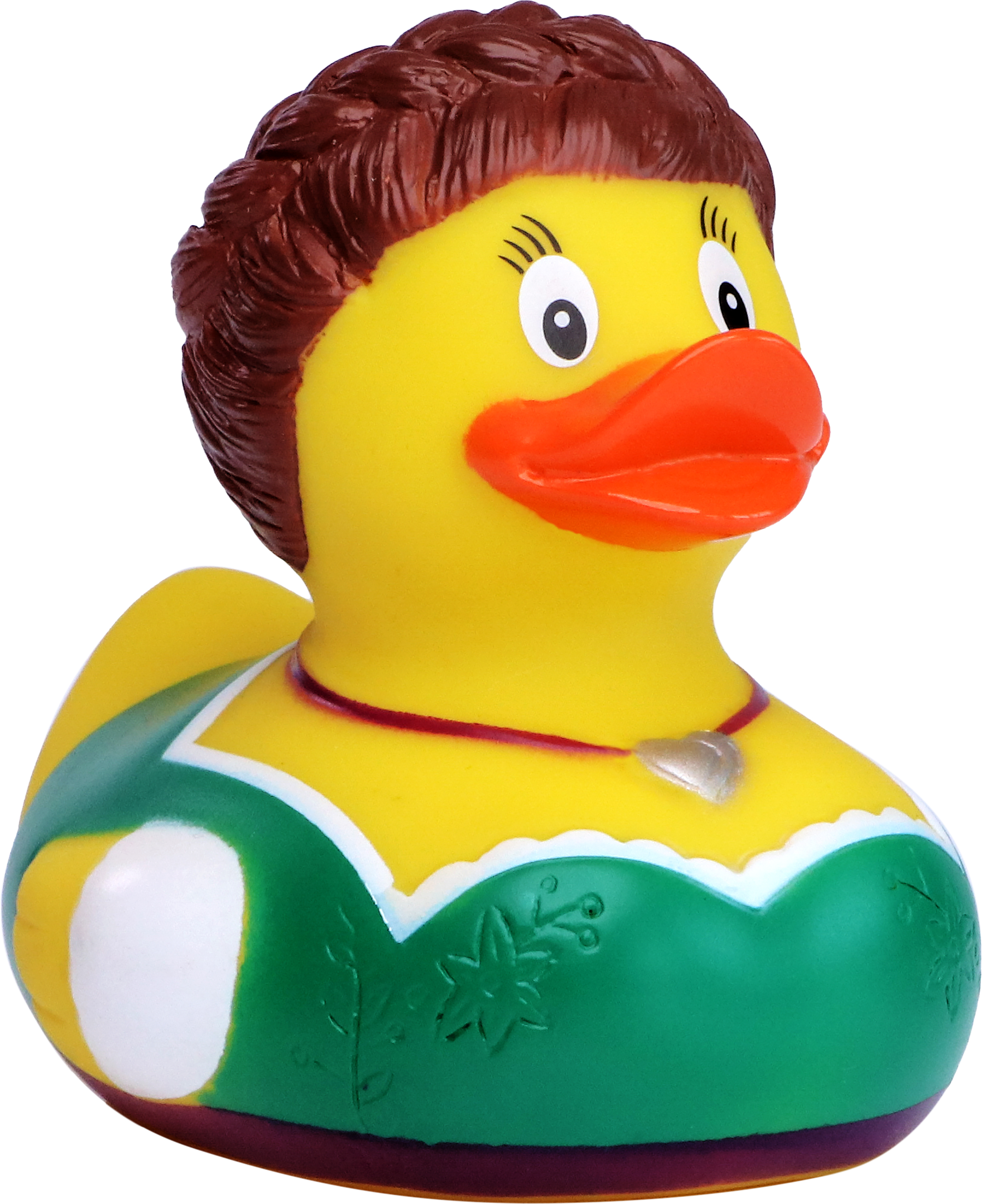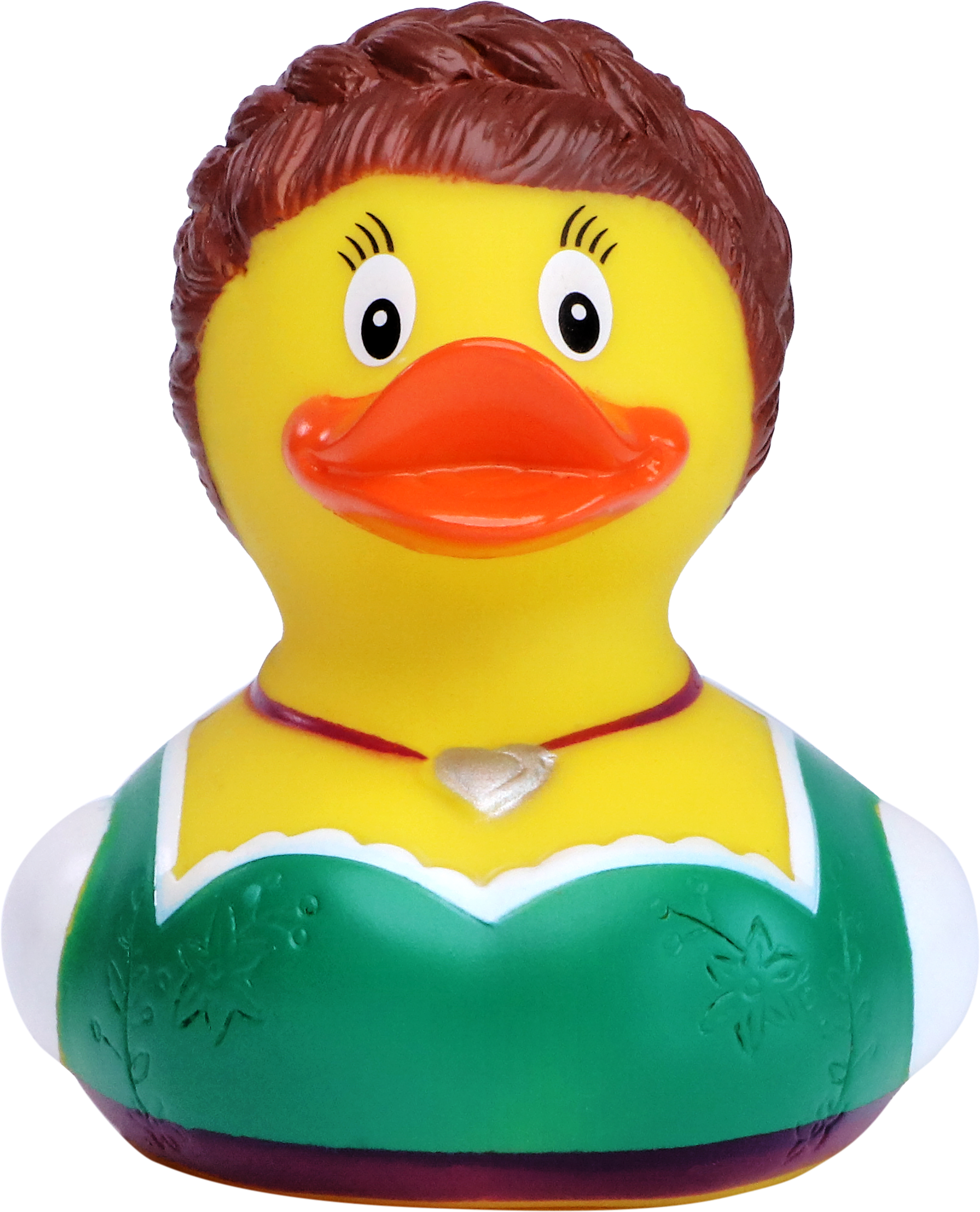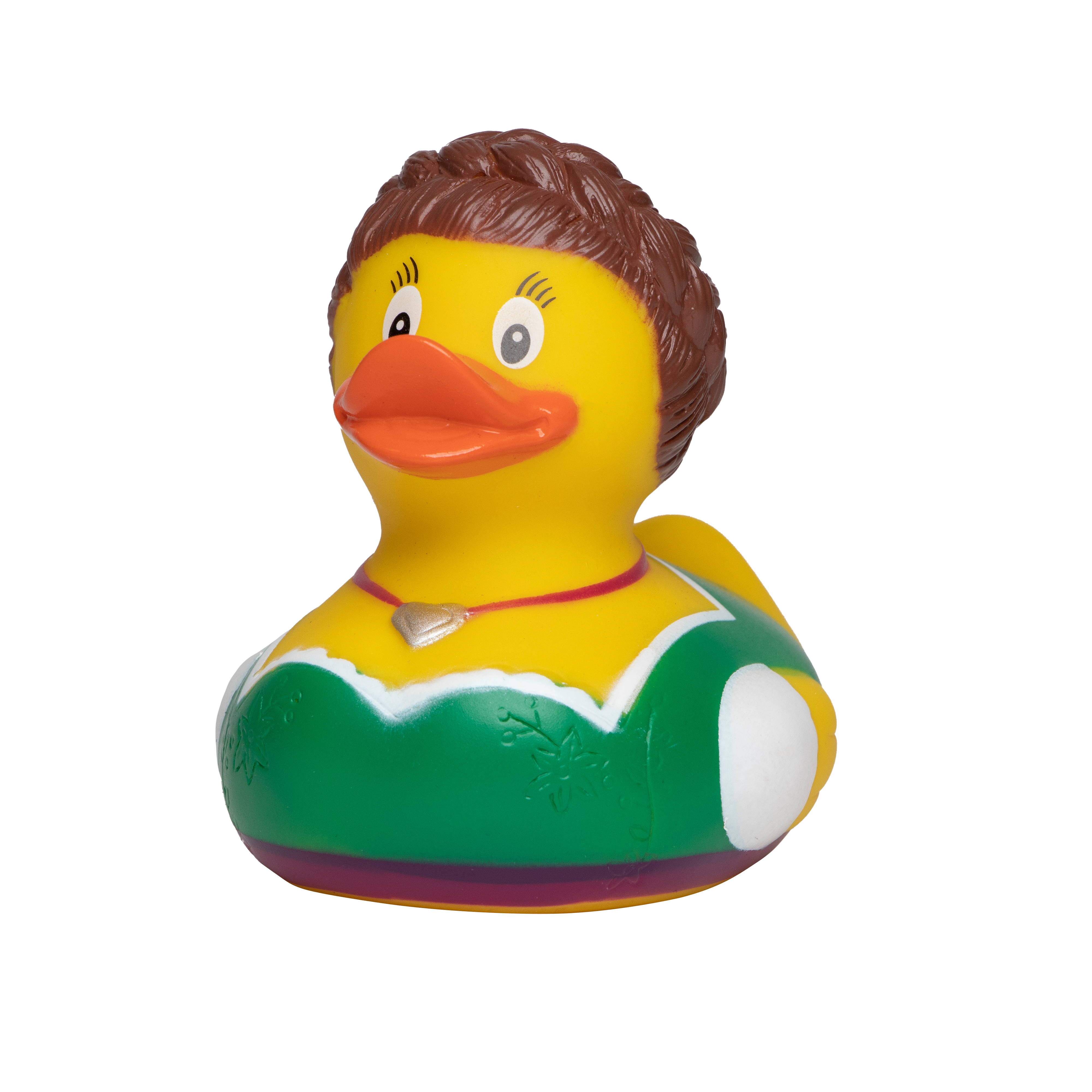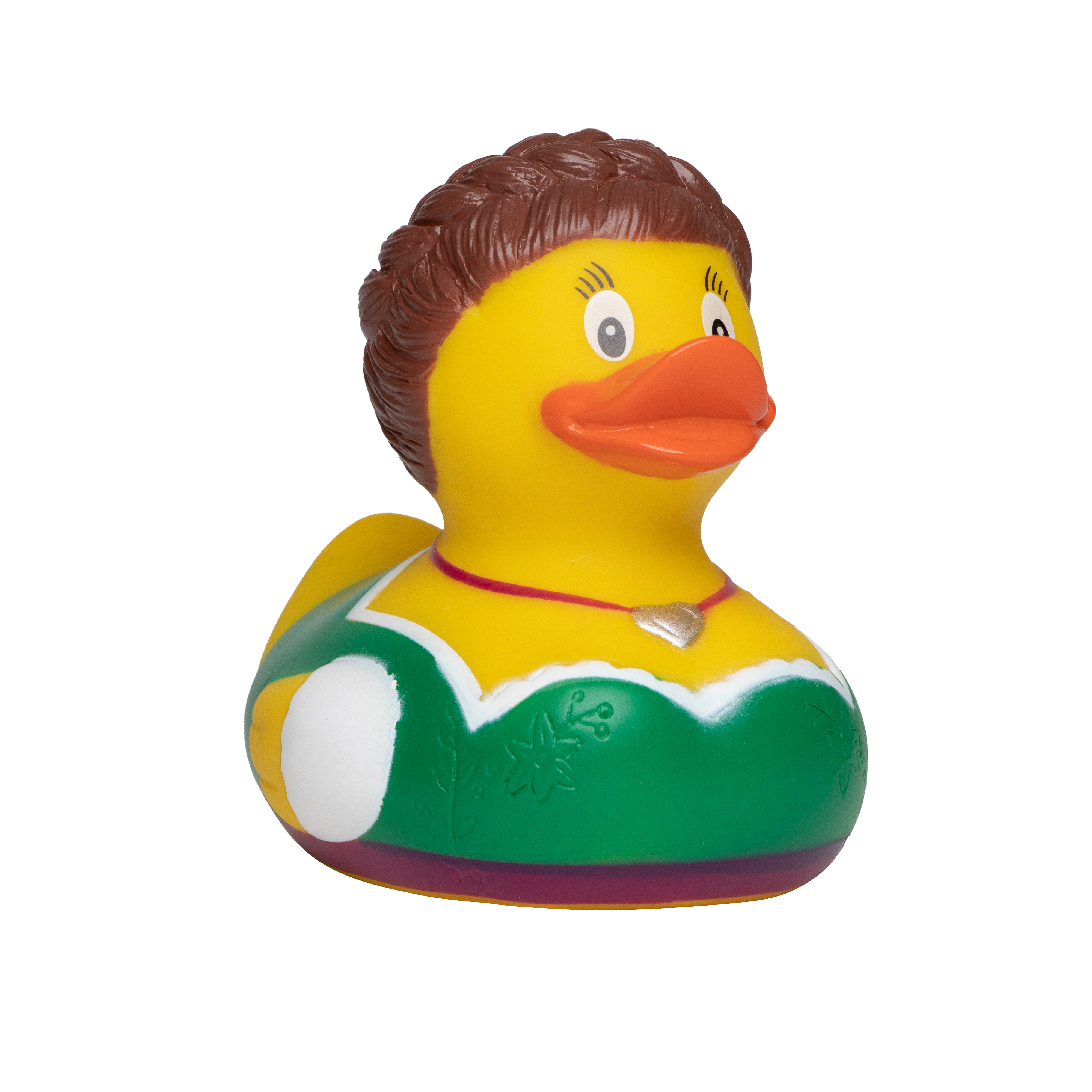Ein fesches Entel gehört nun zur Schnabels® Familie und macht mit Dirndl, Zopffrisur und Geschmacksmusterschutz richtig Lust auf Berge, eine zünftige Brotzeit und rauschende Feste im Festzelt. Sie macht sich prima als Botschafterin für Bayern und Volksfeste. Die 8 cm große Quietsche -Ente Bayerin mit Geschmacksmusterschutz muss man einfach lieben!