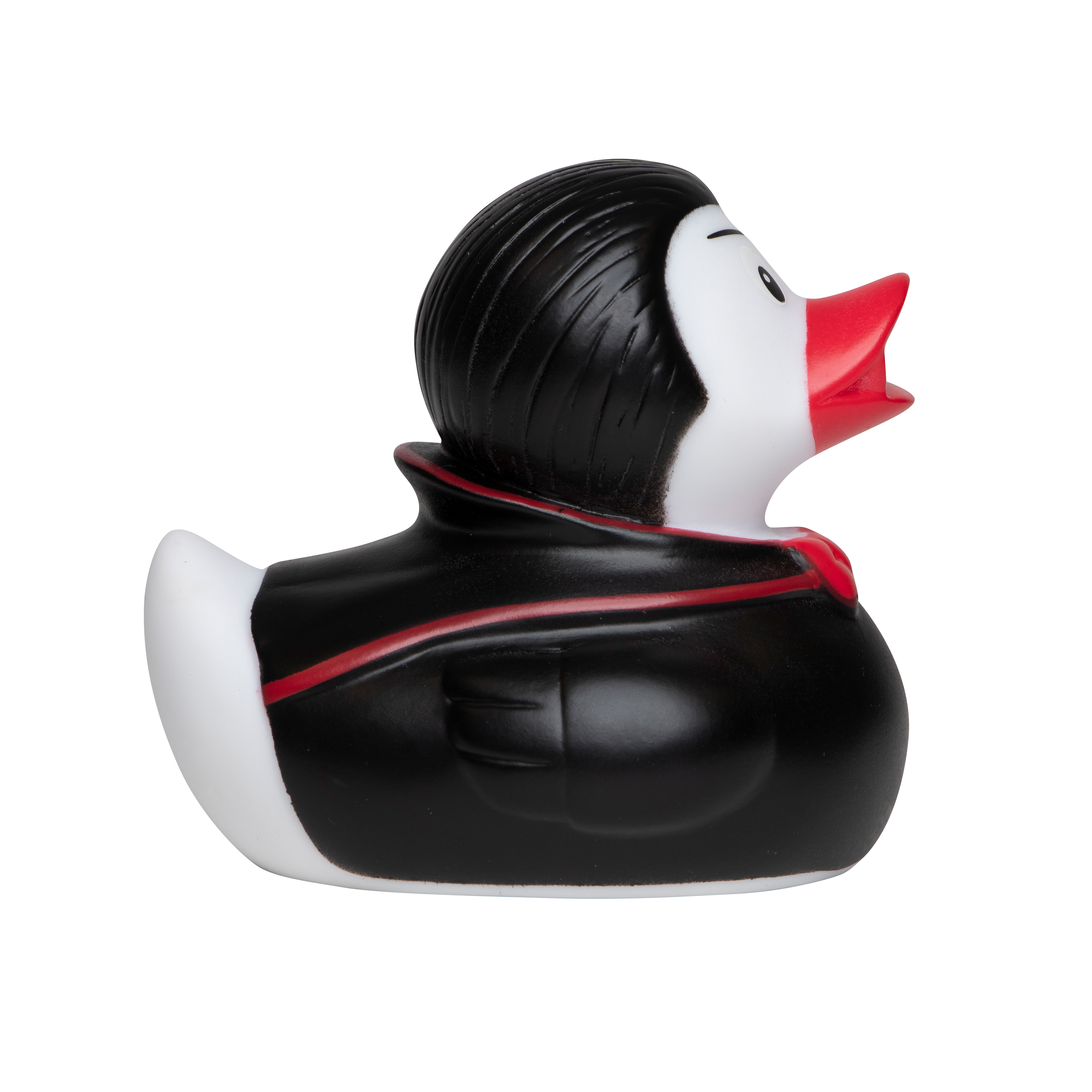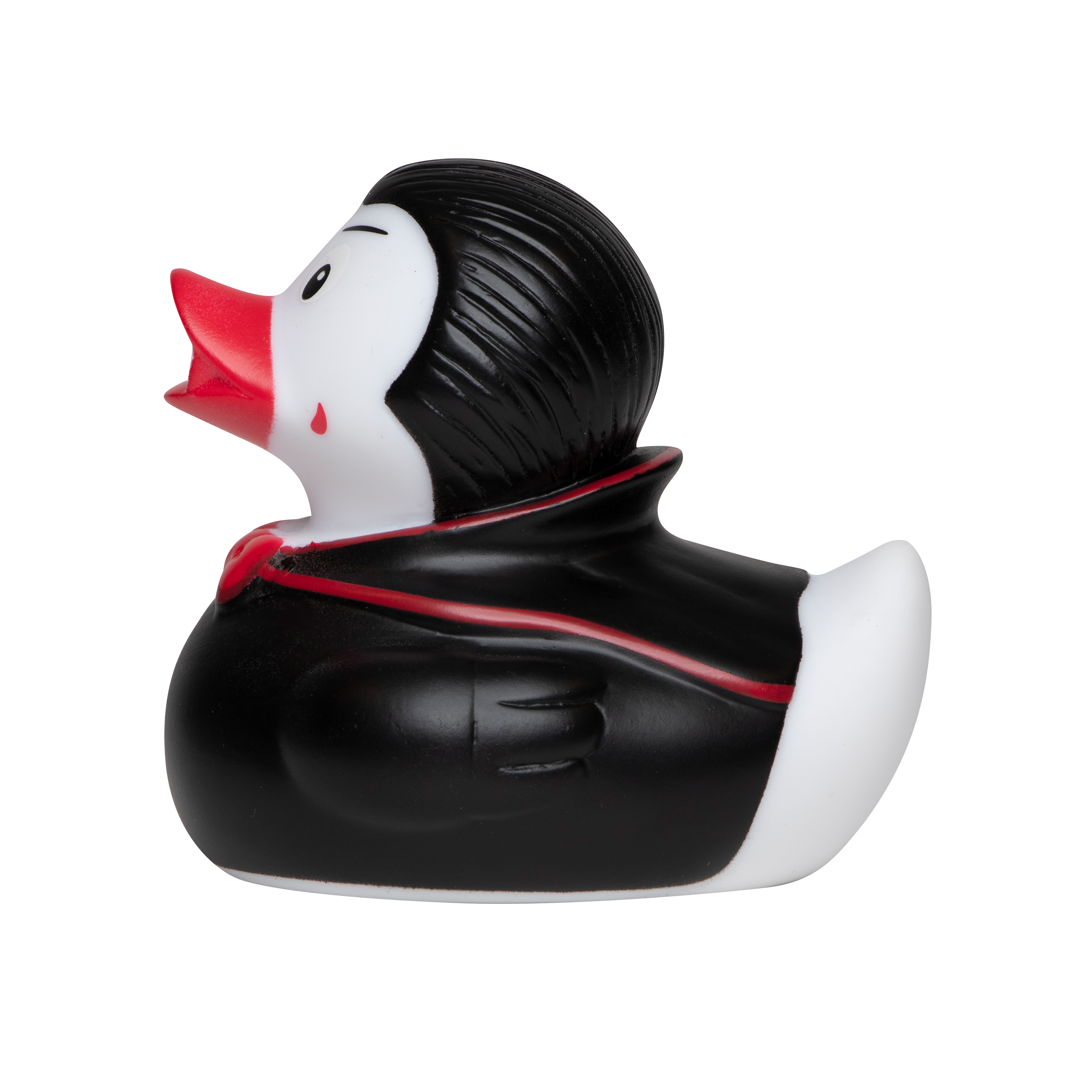 Im Schutz der Dunkelheit wimmelt es nun in Teichen, Wannen und Co vor kleinen, gruselig-schönen Geschöpfen. Allen voran der Meister selbst: Quietsche-Ente Dracula! Etwas blass um den Schnabel, aber die frechen Eckzähne lassen keinen Zweifel aufkommen, dieser schick gekleidete Herr mit roter Fliege kommt sicher direkt aus Transsilvanien ... Na gut nicht ganz! Dieser Kerl kommt, wie alle Schnabels®, aus Wanderup und macht mit seinen 8 cm Größe, Geschmacksmusterschutz und stilvollem Outfit dem Grafen selbst Konkurrenz. Cooles Give away, saisonaler Eycatcher in der Deko oder Bewacher des Schreibtisches – diesem Entchen will man auch im Dunklen gerne begegnen.