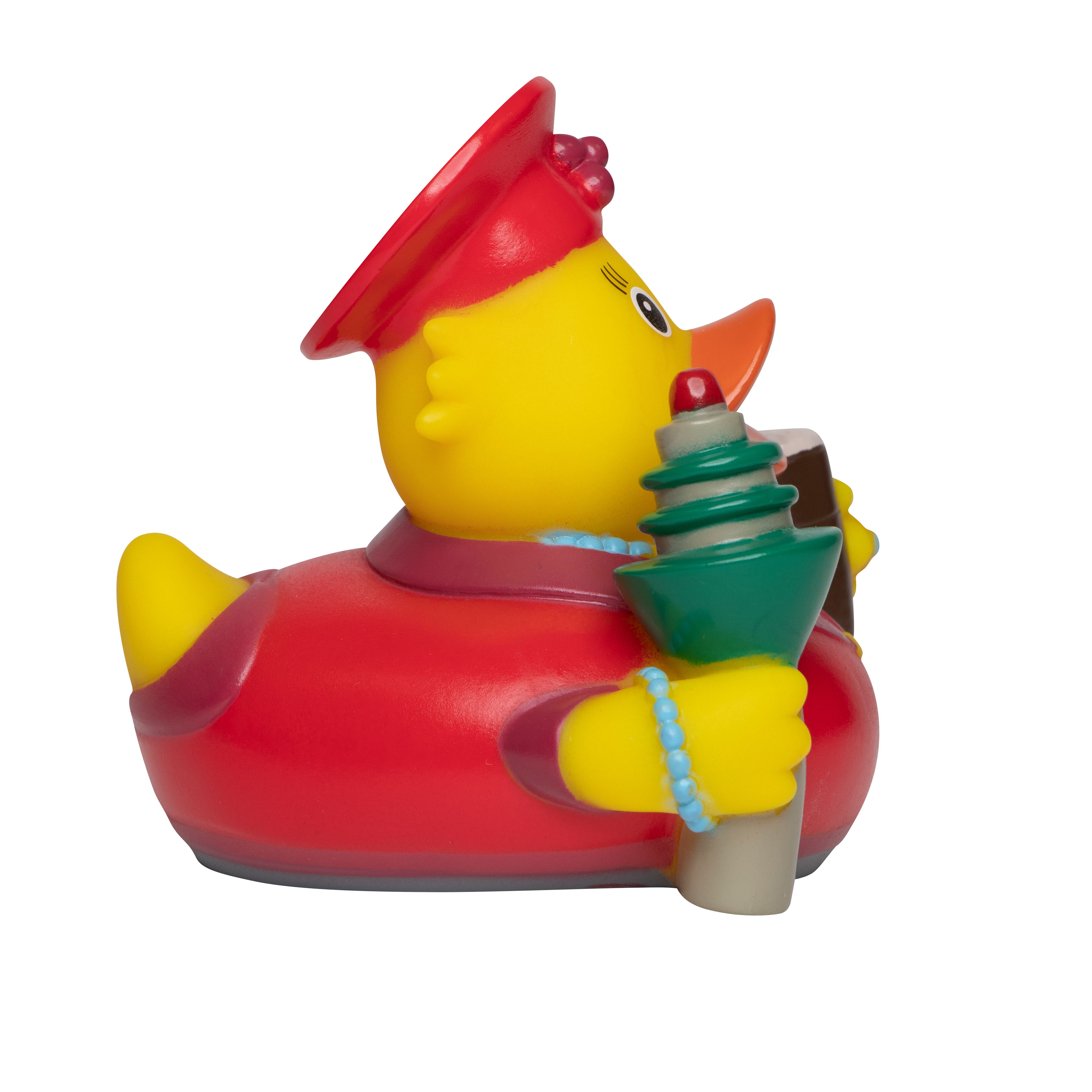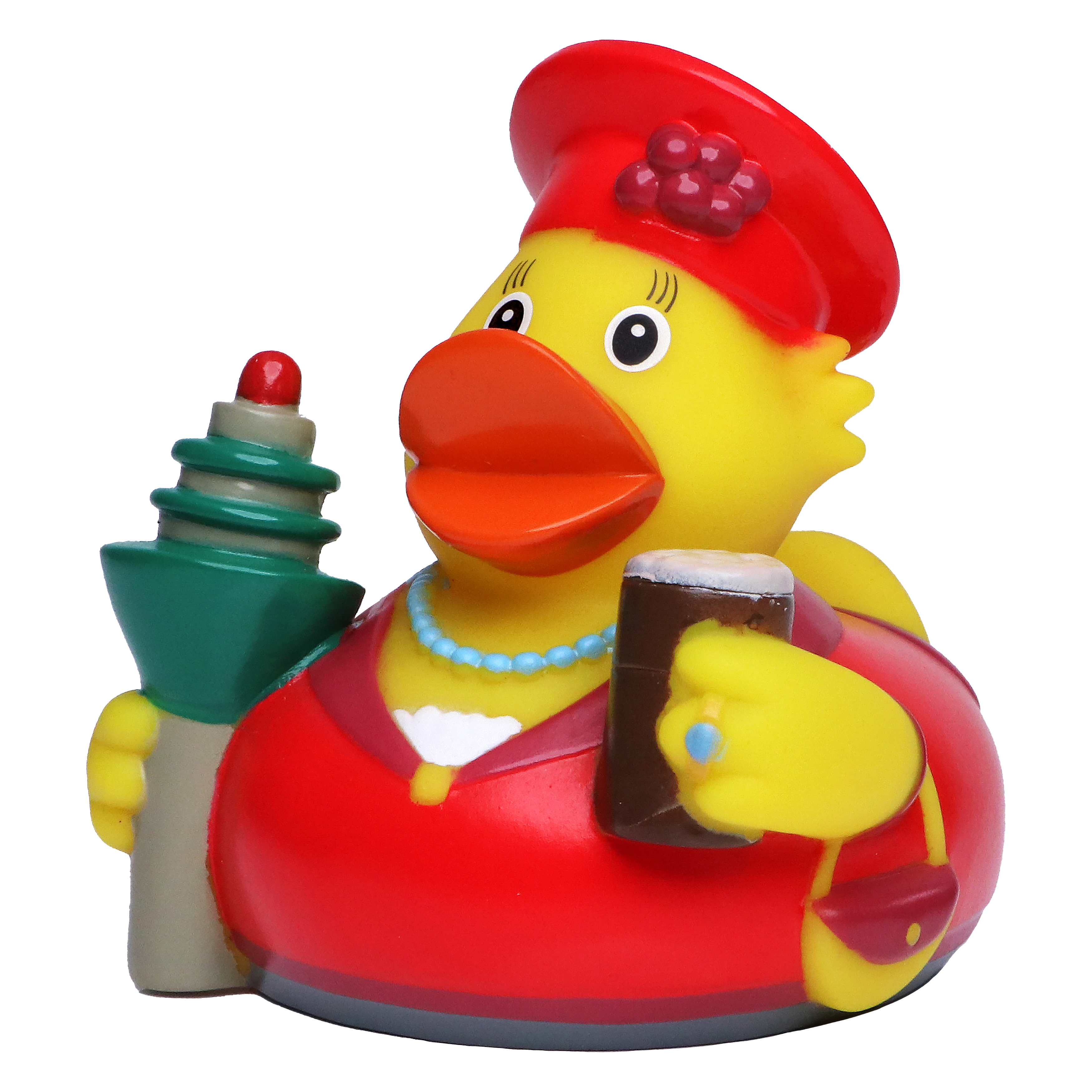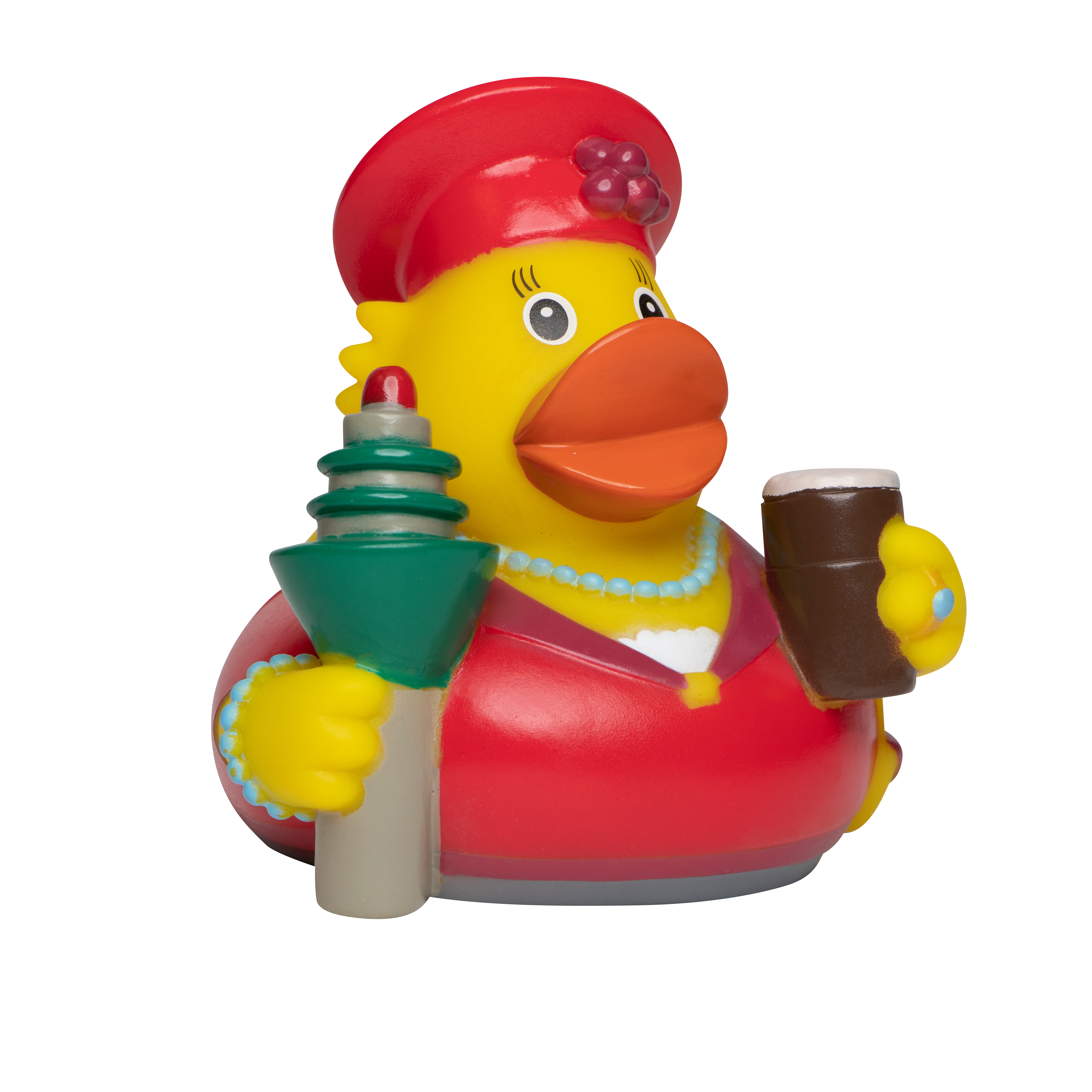 In der Modemetropole Düsseldorf schmeißt sich die Ente von Welt stets schick in Schale, um beim Flanieren auf der Kö neugierige Blicke auf sich zu ziehen. Feuriges Rot und zarte Perlen sind der neuste Ententrend und werden nur noch durch eine ausladende Kopfbedeckung getoppt. Doch welcher Lippenstift ist der Richtige? Am besten ein wasserfester, lautet unsere Empfehlung an das Schwimmtier. Und dann heißt es: Schnabel hoch und auf ins Vergnügen! Der Vollständigkeit halber hat unsere CityDuck® den Rheinturm dabei - nicht zuletzt, um nach dem ein oder anderen Altbier sicheren Halt zu bewahren.