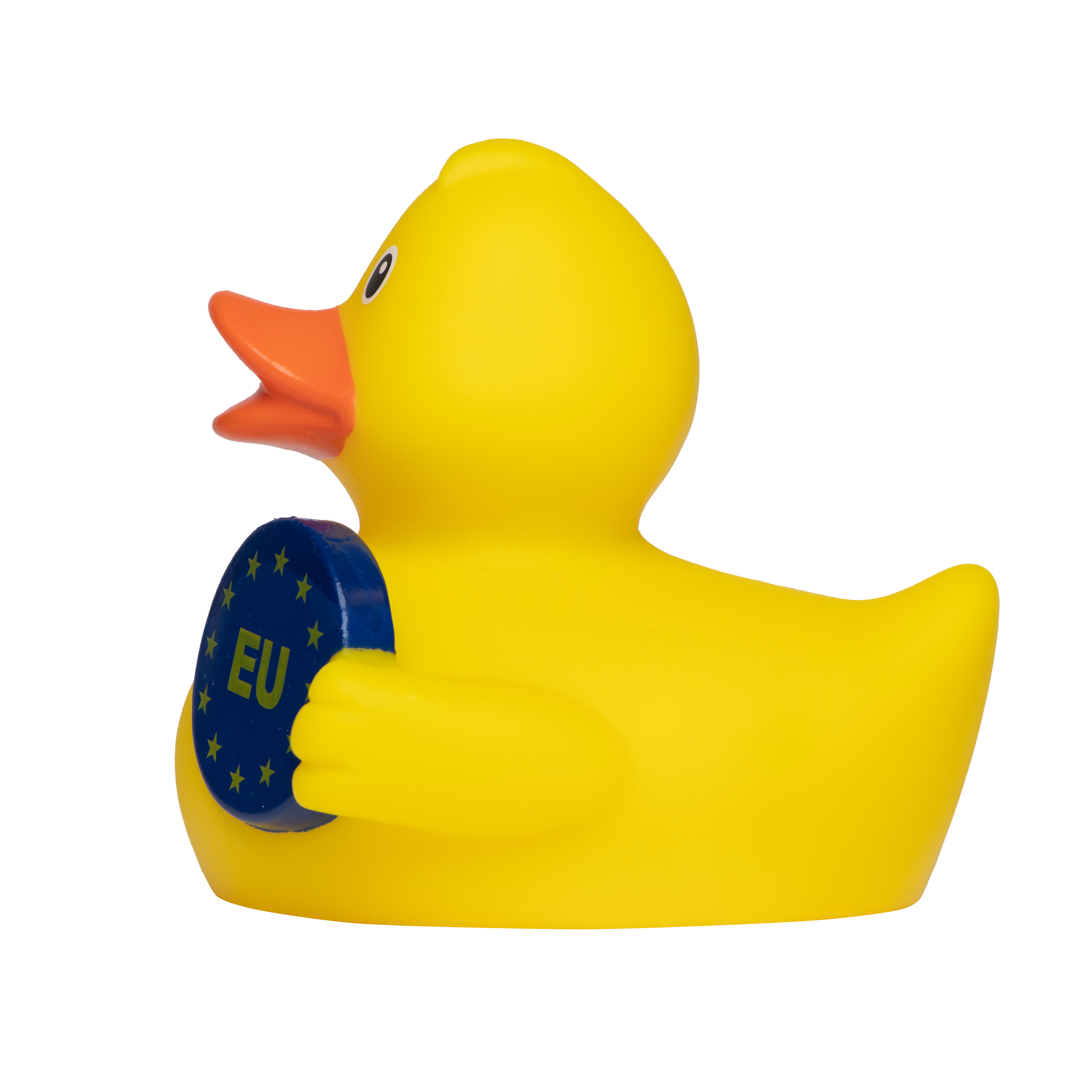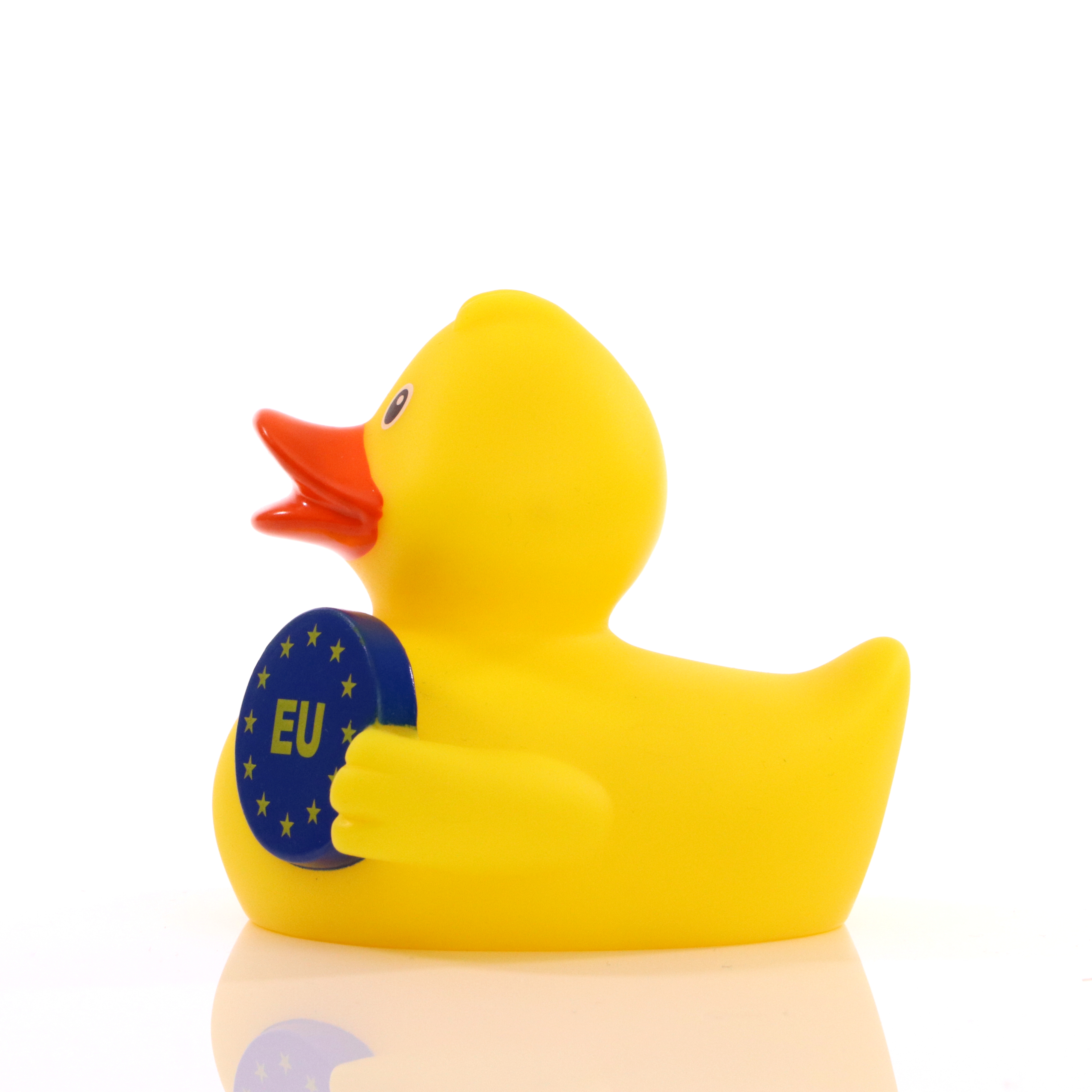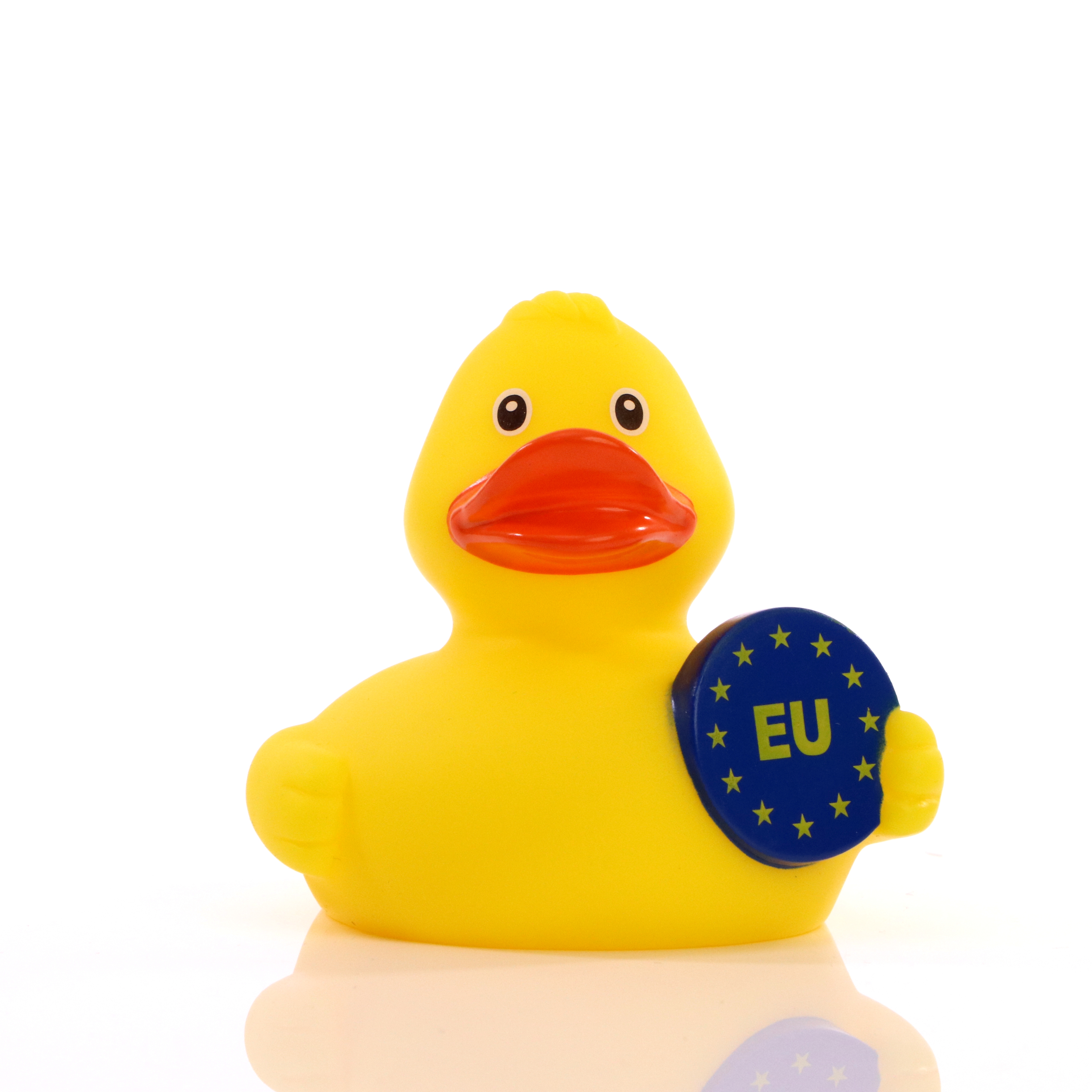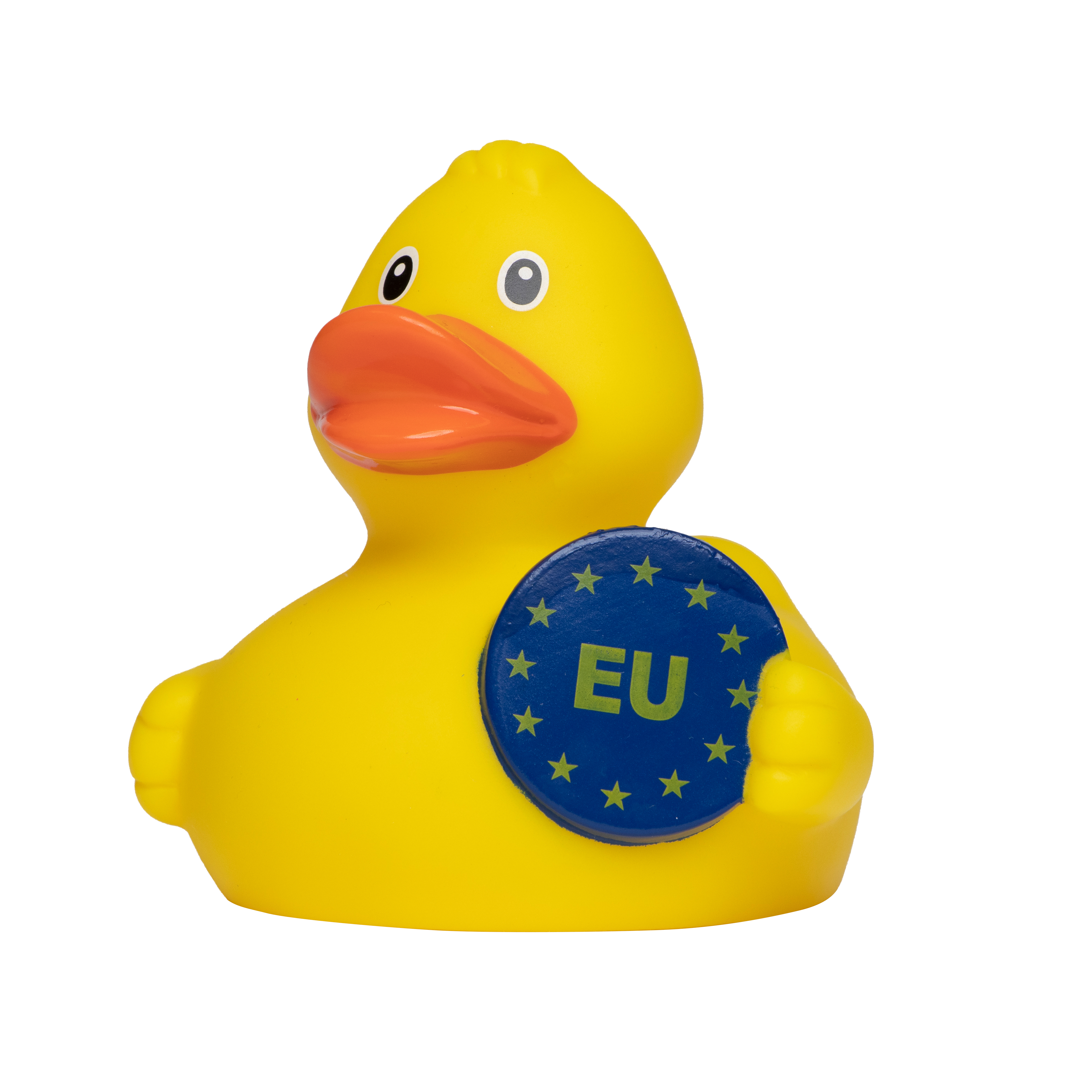 Die Quietsche-Ente Euro ist die perfekte Botschafterin für alle, die sich mit dem lieben Geld beschäftigen. Klassisch Gelb, 8cm groß, super süß, mit großer Euromünze unterm Flügel und Geschmacksmusterschutz ist sie ein tolles Geschenk für Kunden von Banken, Versicherungen und Co.