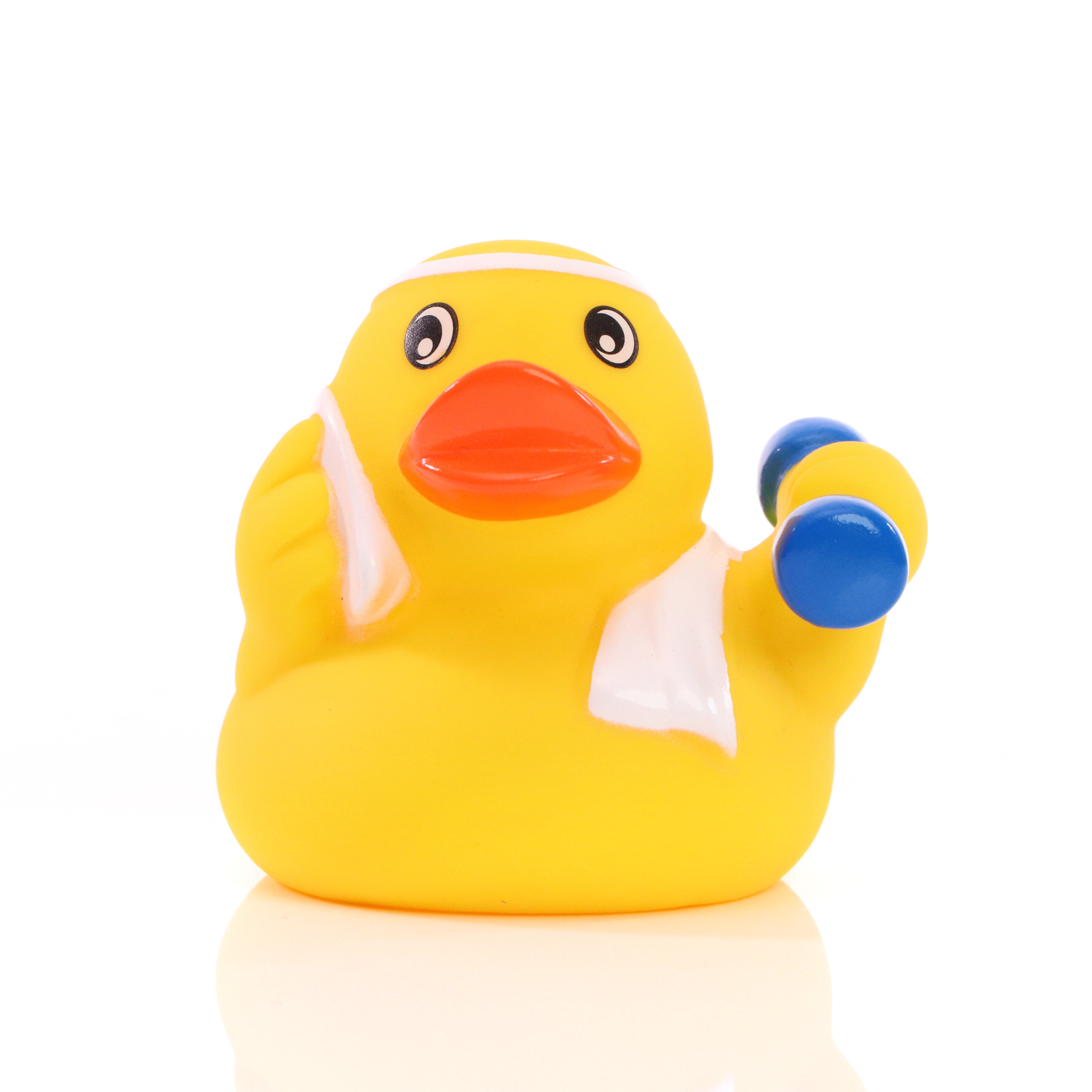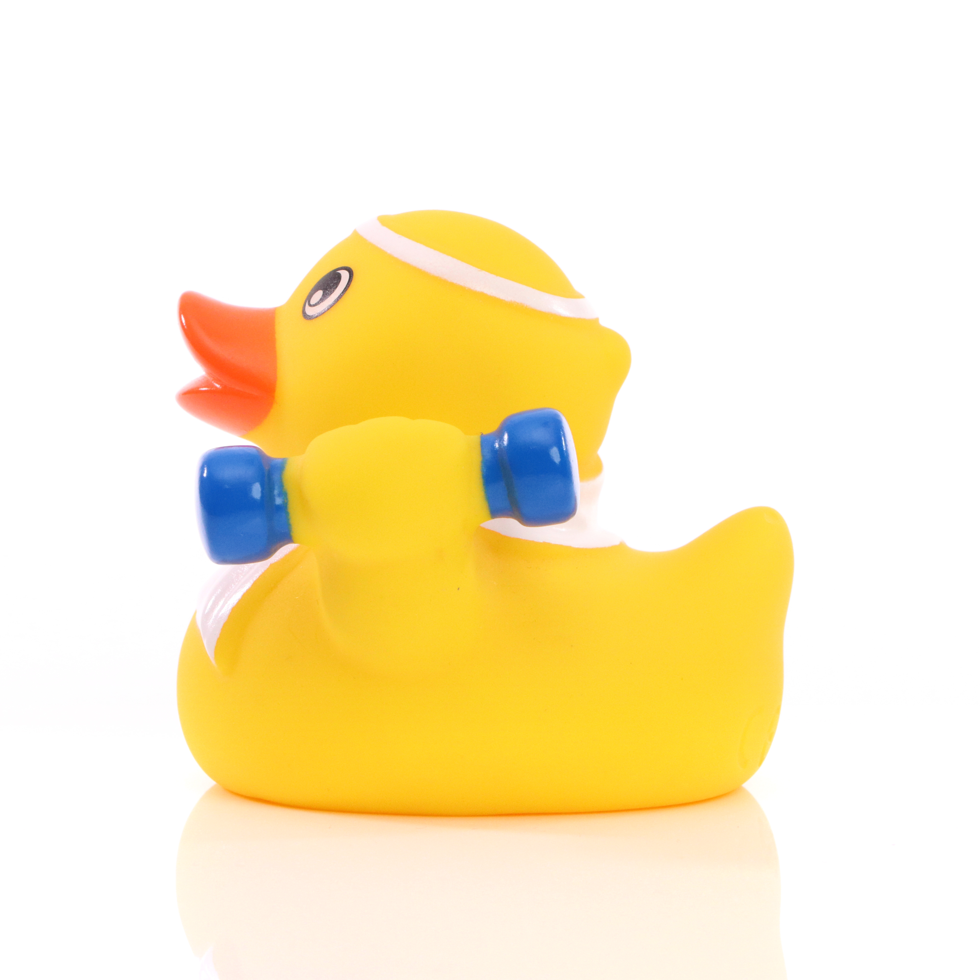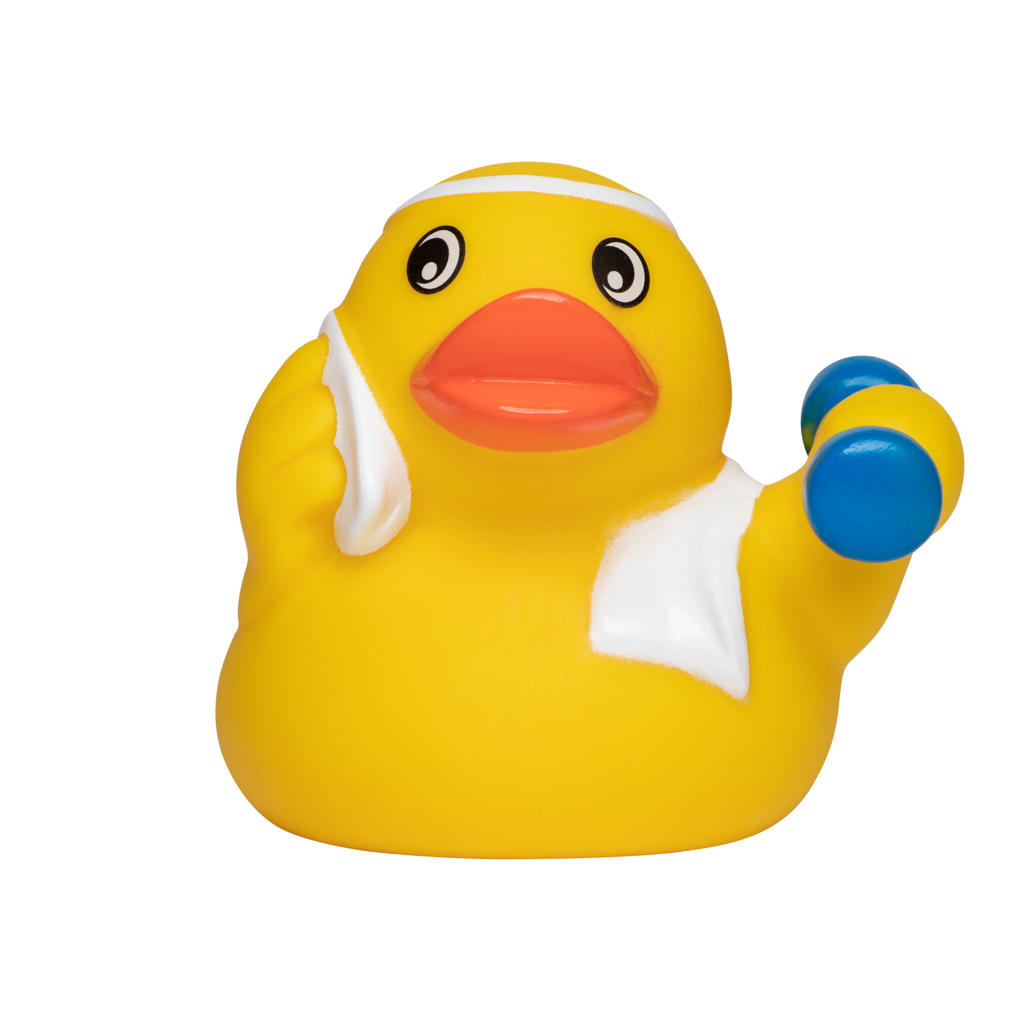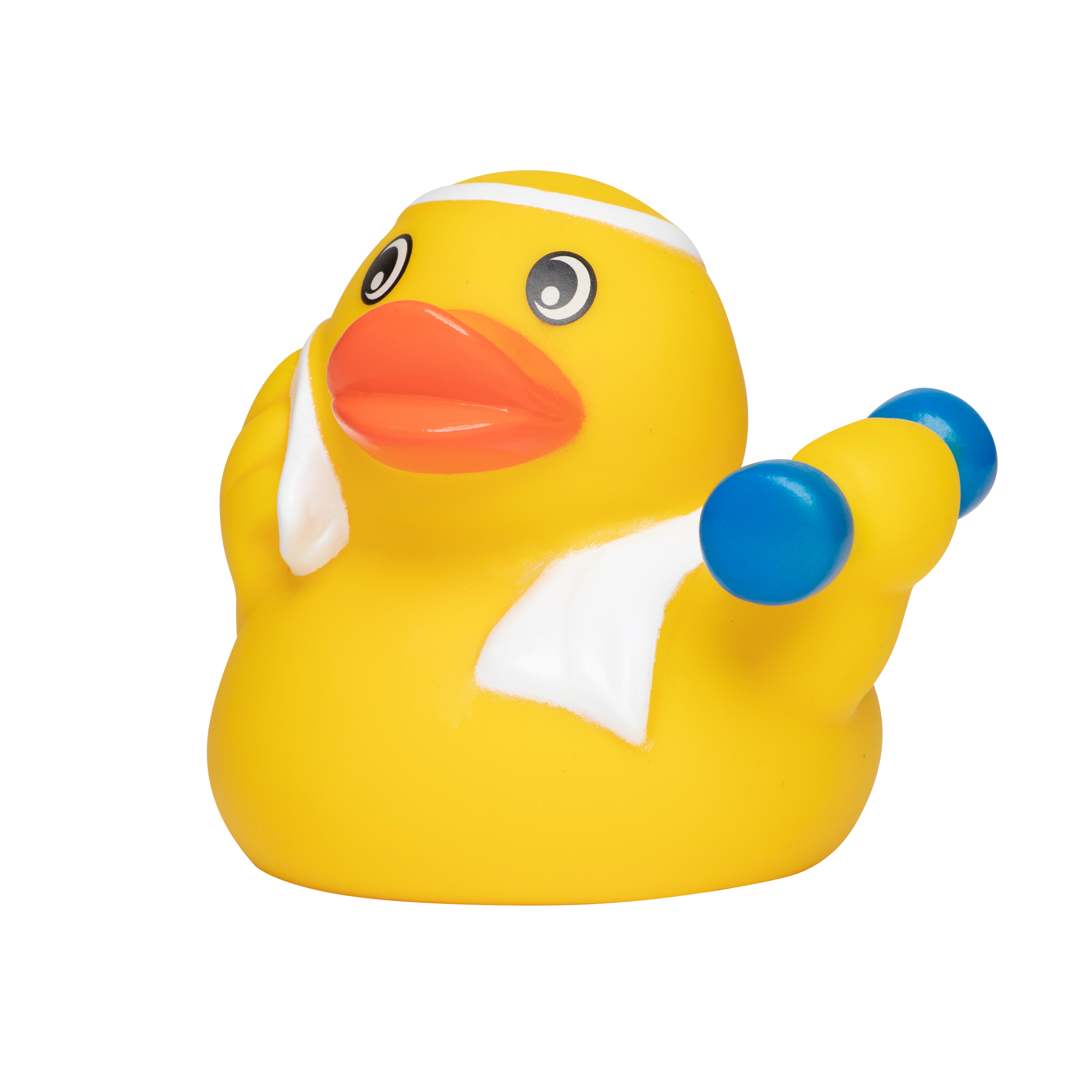 Entspannt in der Badewanne liegen langweilt diese Ente nur, sie ist eher für körperliche Höchstleistungen. Das Schweißband am Kopf und das Handtuch um den Hals sorgen dafür, dass sie Höchstleistungen vollbringt und das nicht nur mit der mitgebrachten Hantel! Diese Sportskanone eignet sich super als Personal Trainer in Ihrer Badewanne und passt auf, dass Sie sportlich und fit bleiben!