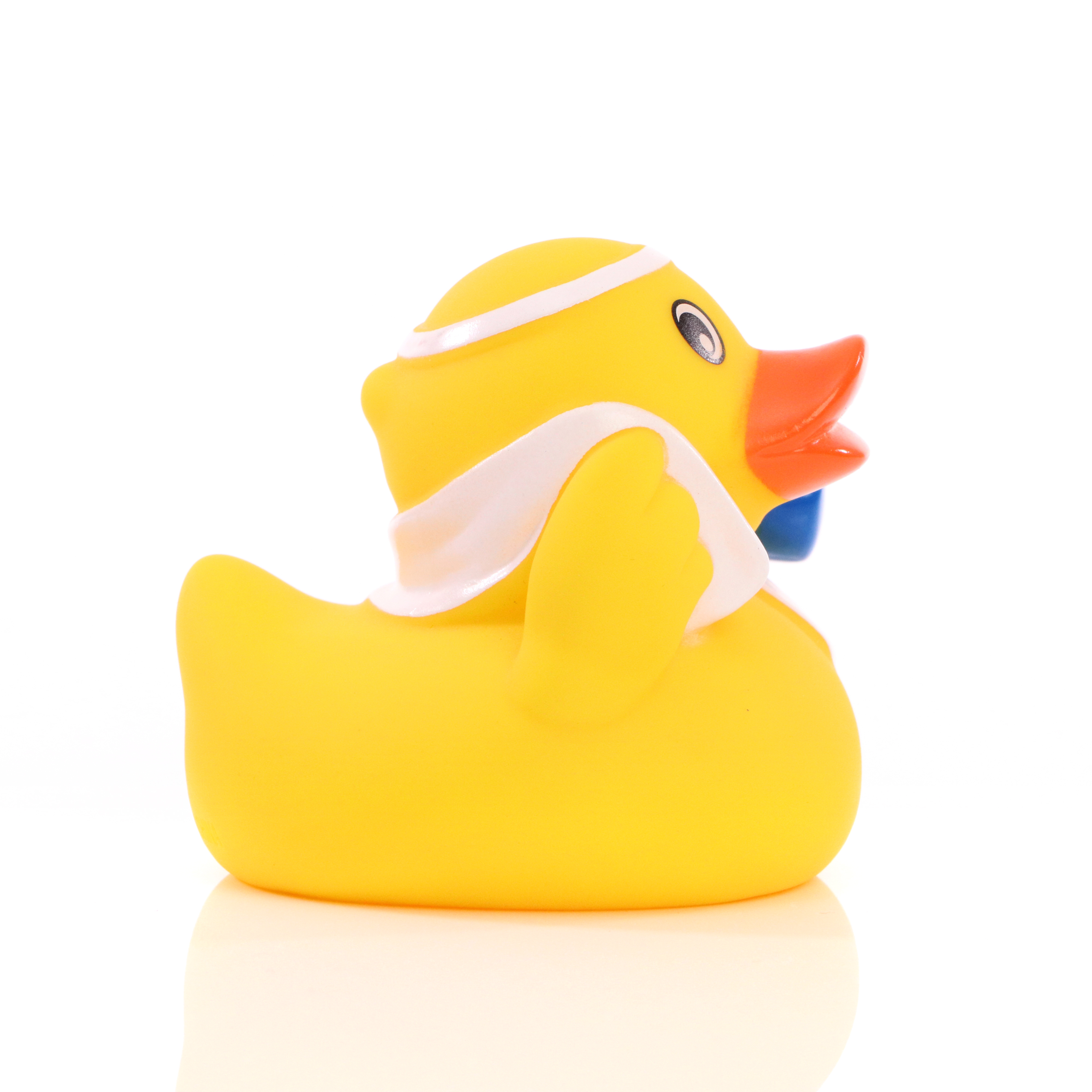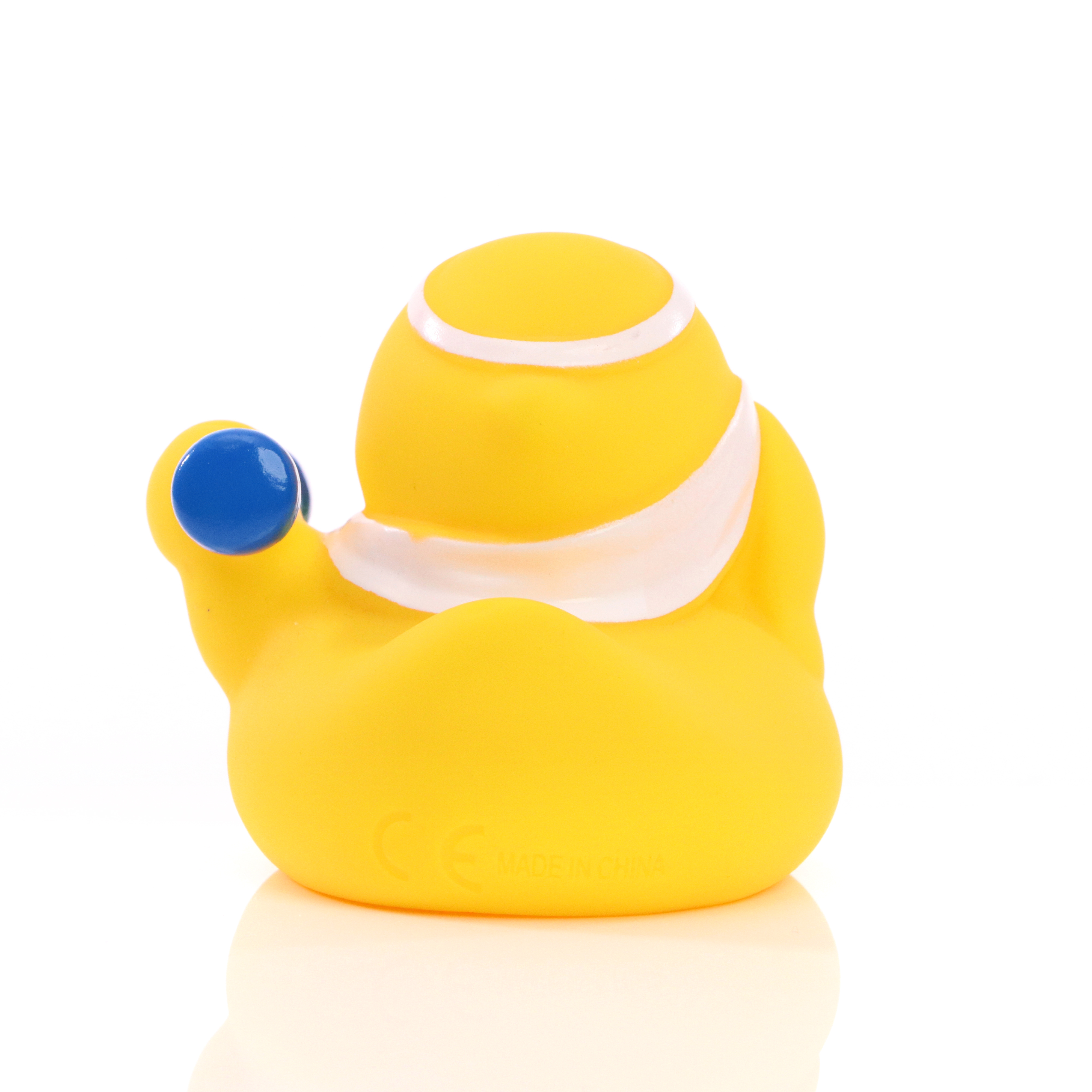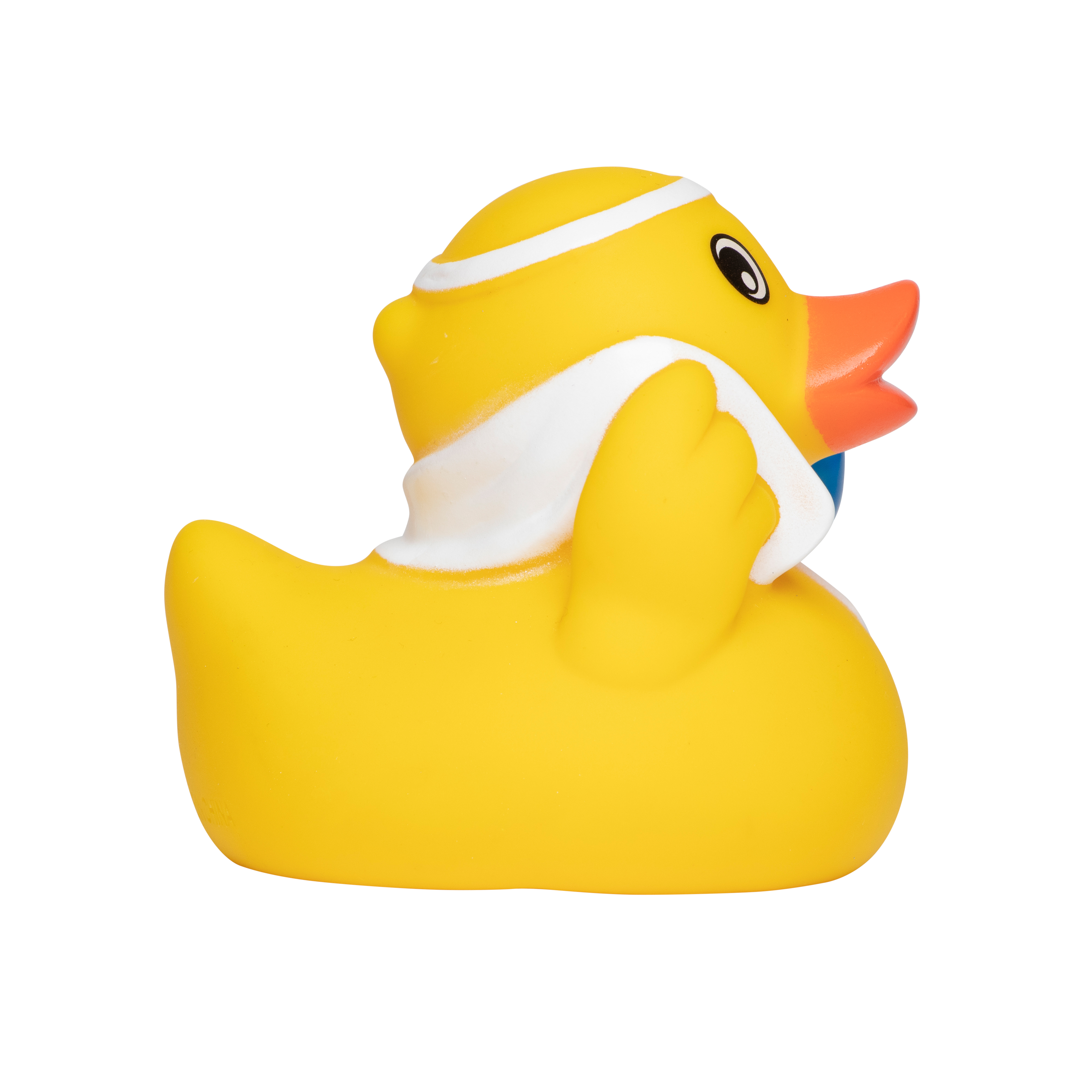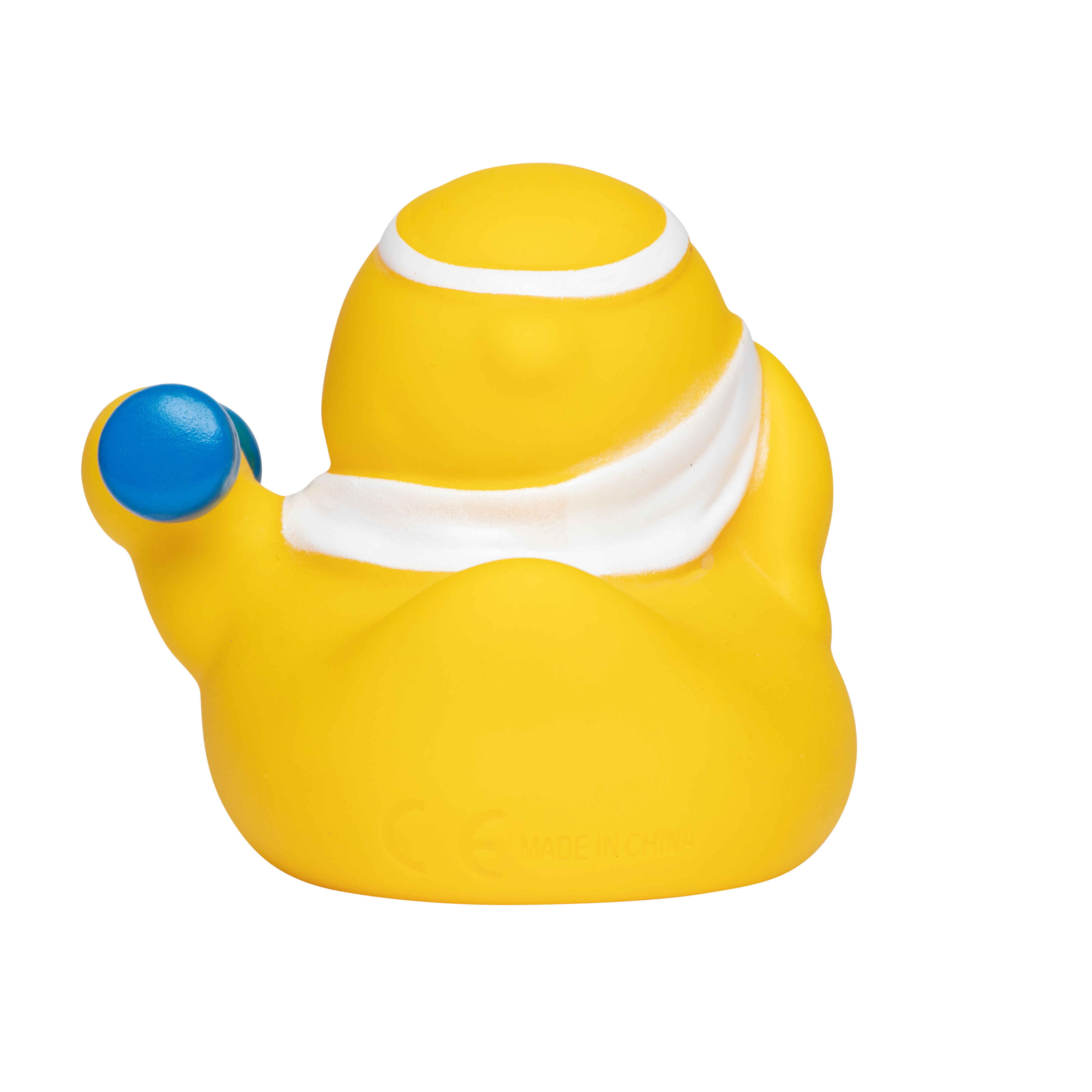 Entspannt in der Badewanne liegen langweilt diese Ente nur, sie ist eher für körperliche Höchstleistungen. Das Schweißband am Kopf und das Handtuch um den Hals sorgen dafür, dass sie Höchstleistungen vollbringt und das nicht nur mit der mitgebrachten Hantel! Diese Sportskanone eignet sich super als Personal Trainer in Ihrer Badewanne und passt auf, dass Sie sportlich und fit bleiben!