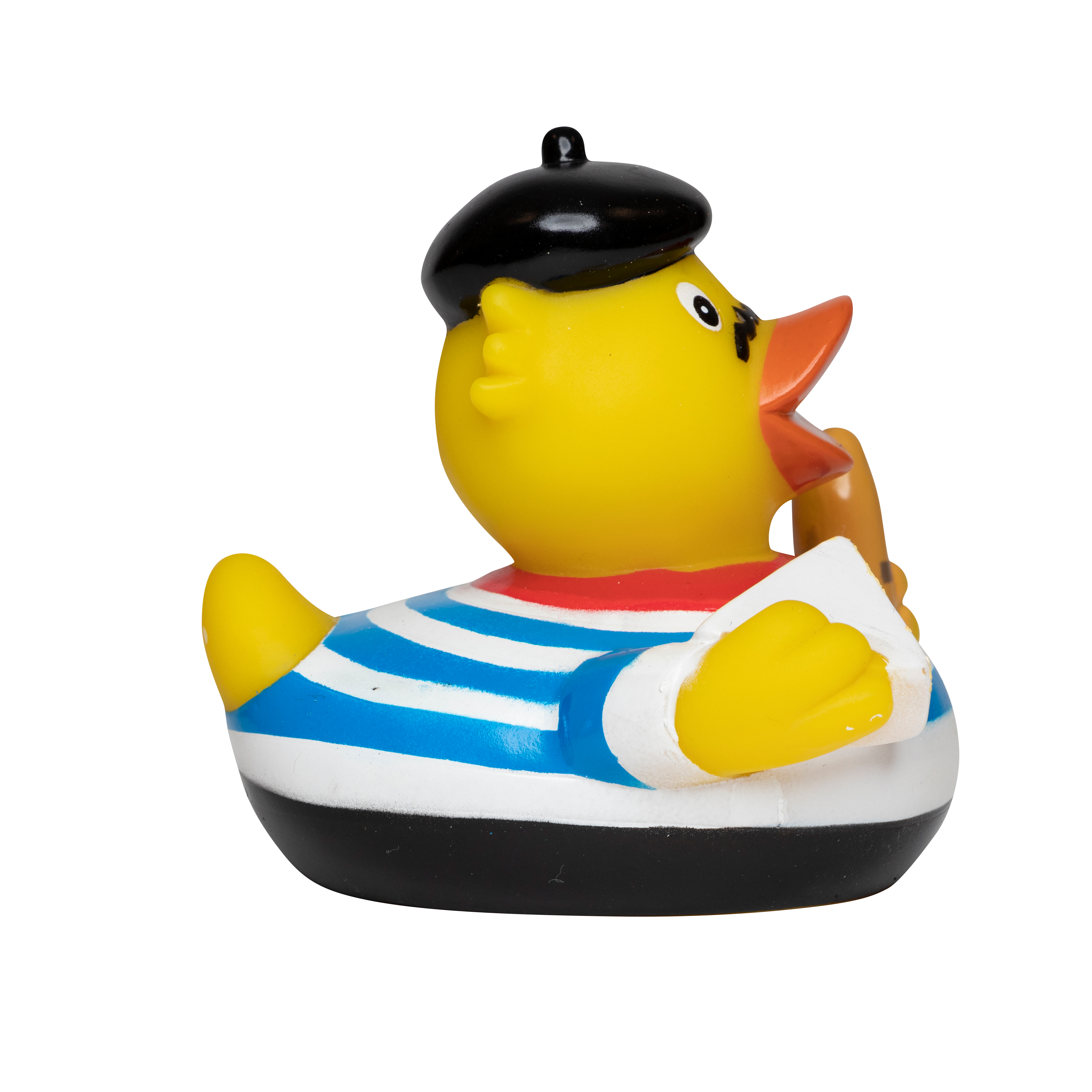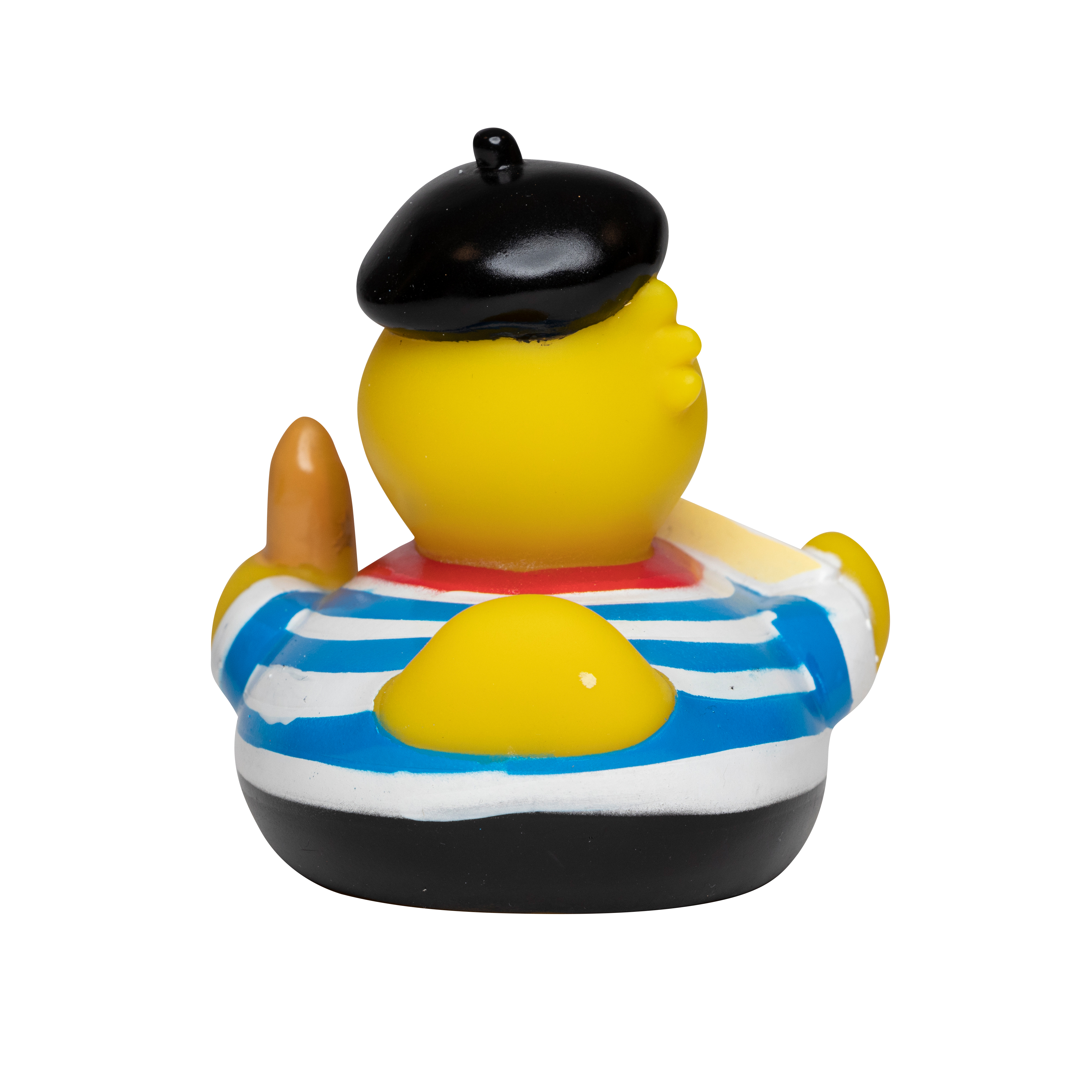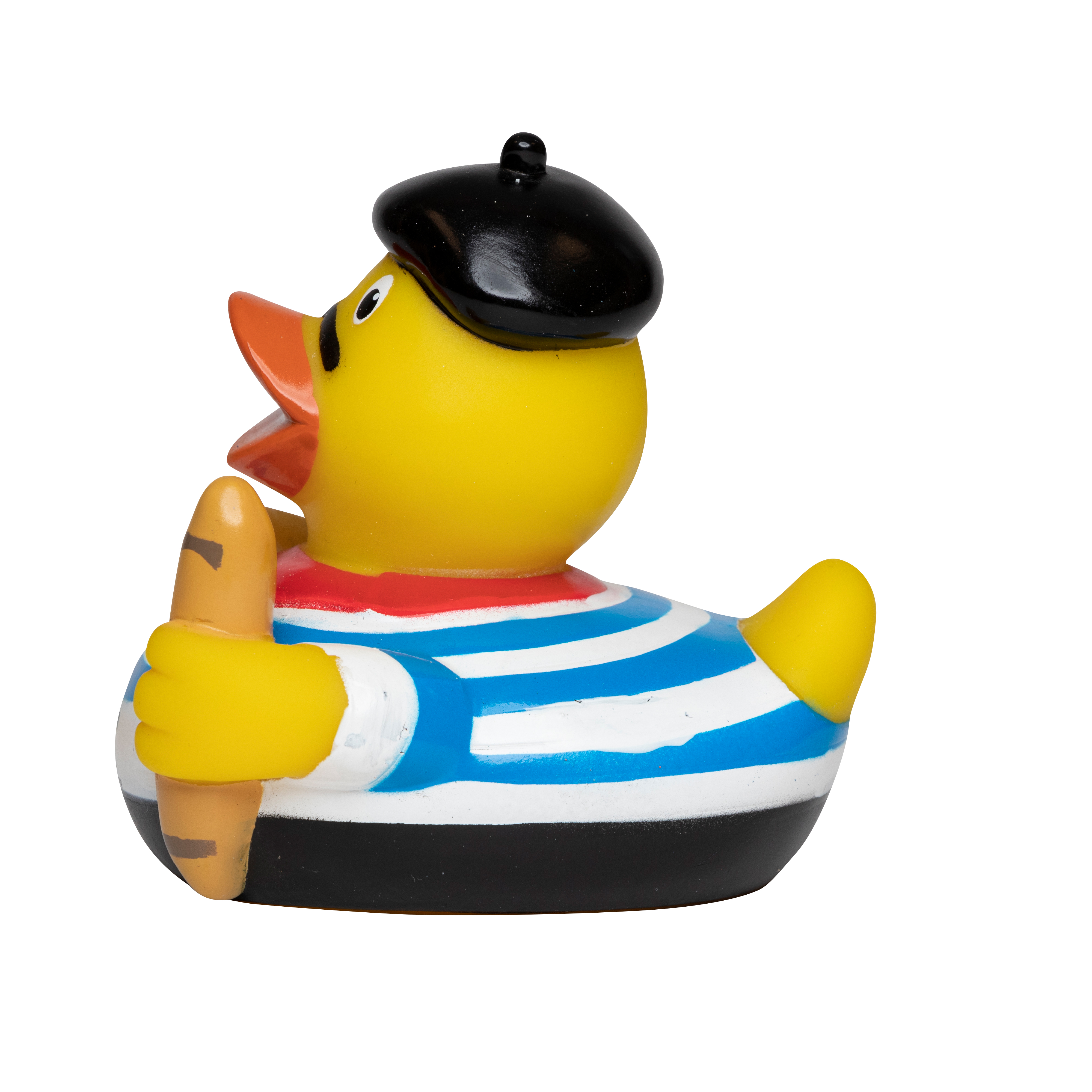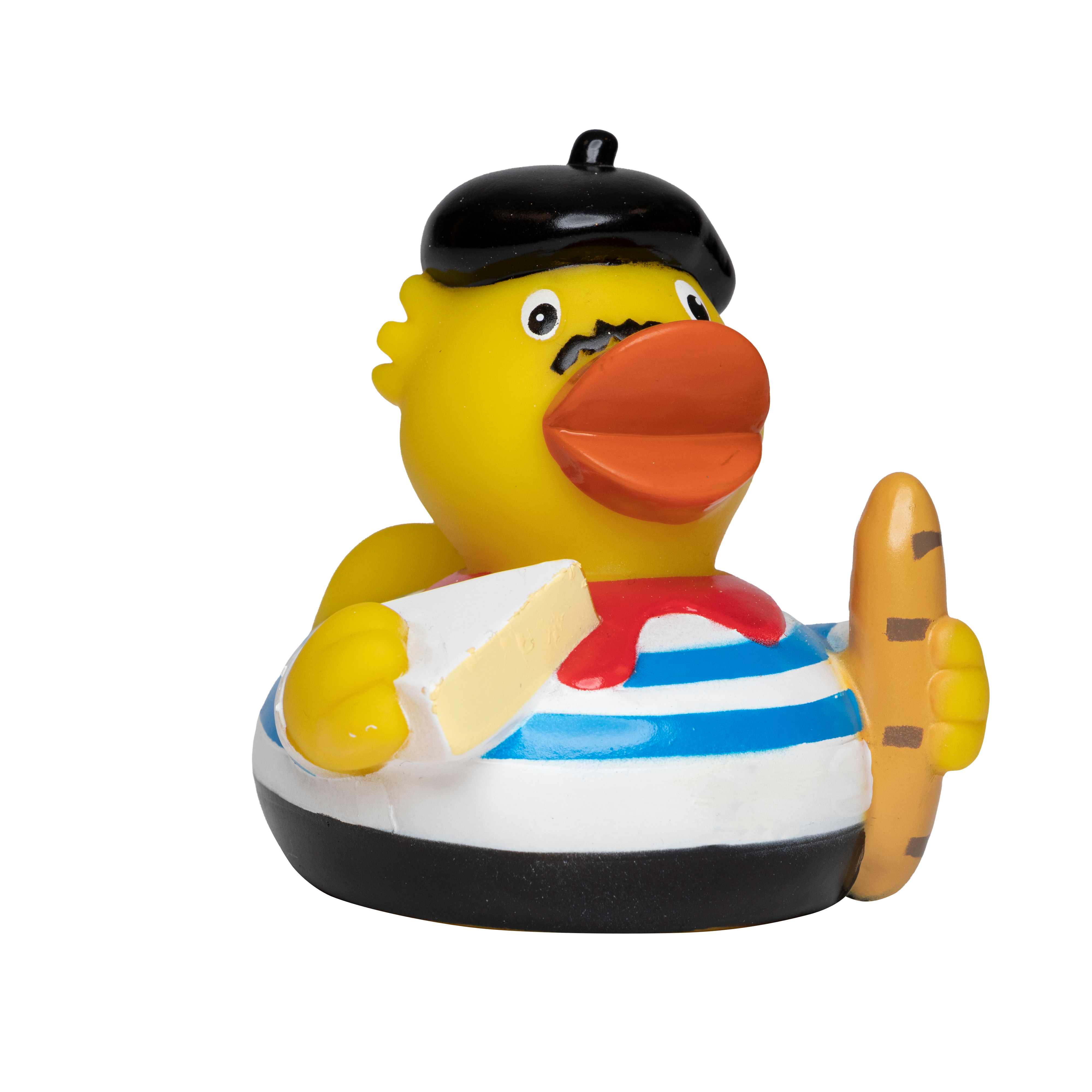 Nous préférons les canard jaune. Wir bevorzugen Enten in gelb! Und am allerliebsten mögen wir sie quietschlebendig! So können wir nur jedem Entenliebhaber empfehlen, die vegetarischen Klassiker der französischen Küche zu kosten: Camembert und Baguette. Denn wer könnte diesen Kulleraugen ans Gefieder wollen? Mit Baskenmütze und lässigem Oberlippen... pardon, Oberschnabelbärtchen genießt die Quietsche-Ente Frankreich bei uns Artenschutz und kann sich beruhigt auf's Savoir-vivre konzentrieren.