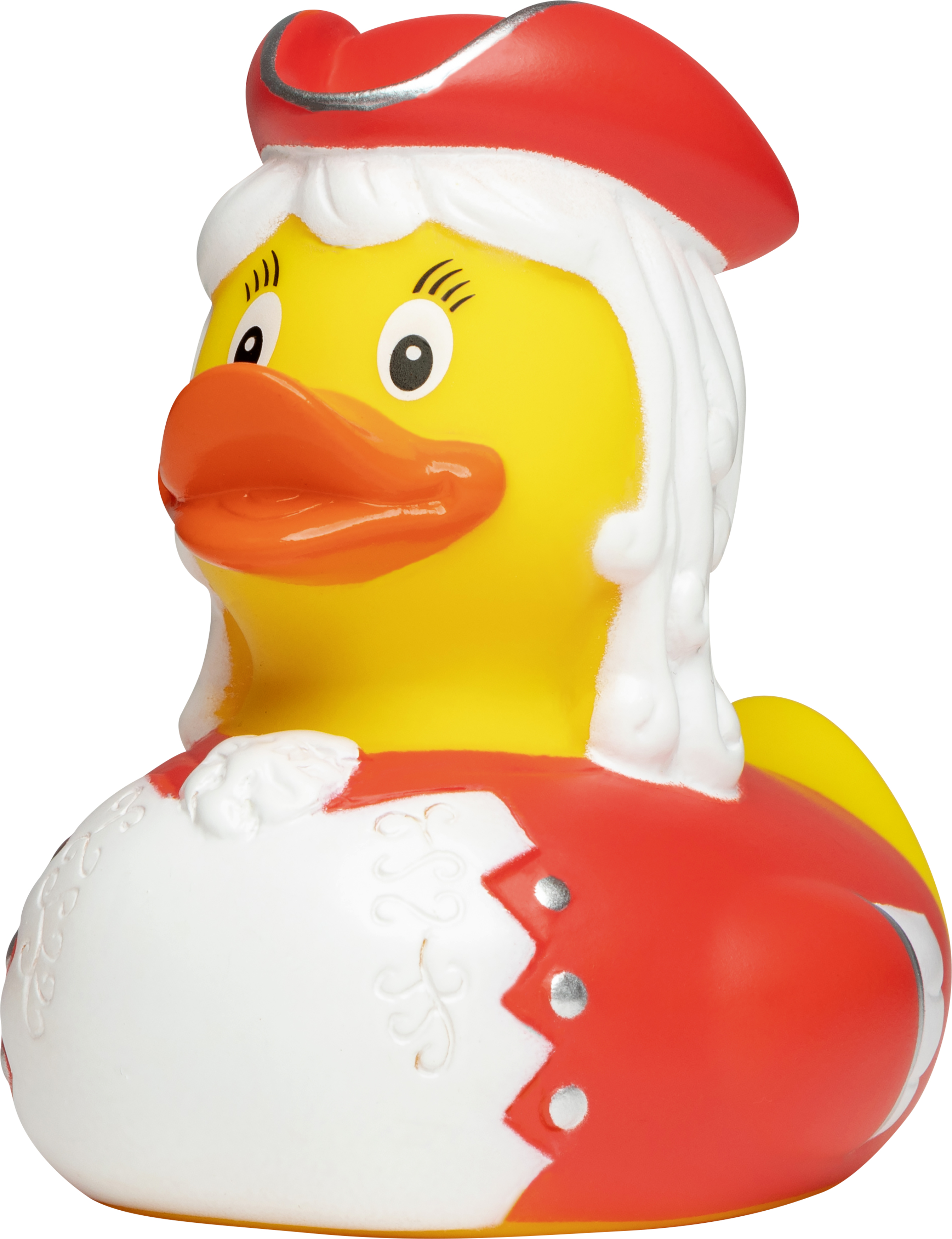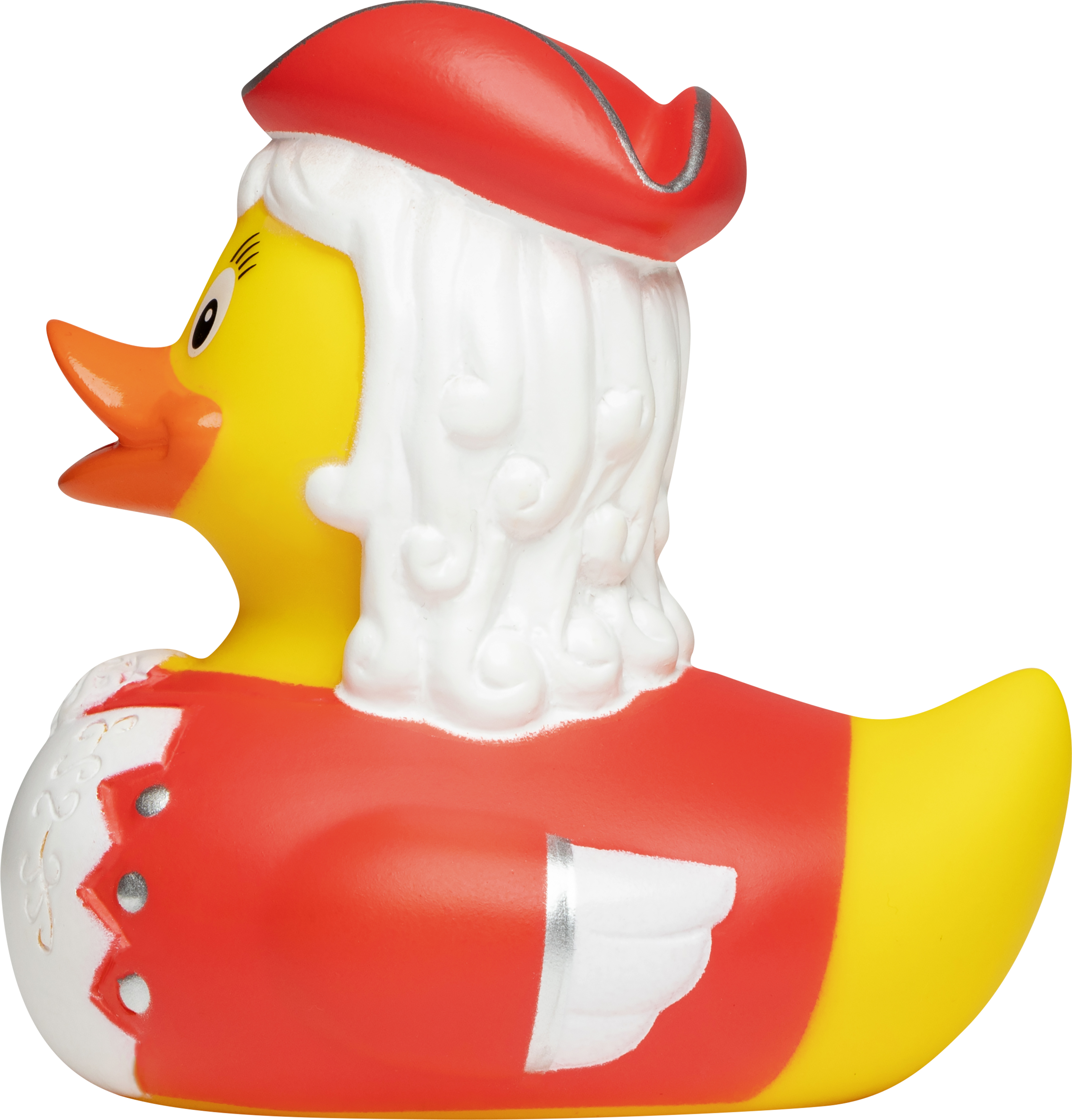 In der 5. Jahreszeit fühlt sich dieses Quietsche-Entchen heimisch. Das hübsche Funkenmariechen schwingt zu jecken Tönen die Flügel und trägt eine passende Uniform inkl. typischer Haarpracht. Mit ihren 8 cm Körpergröße und Geschmacksmusterschutz passt sie bestens in die Schnabels® Familie. Give away, besonderer Orden oder Deko – das süße Funkenmariechen ist stets mittendrin statt nur dabei.