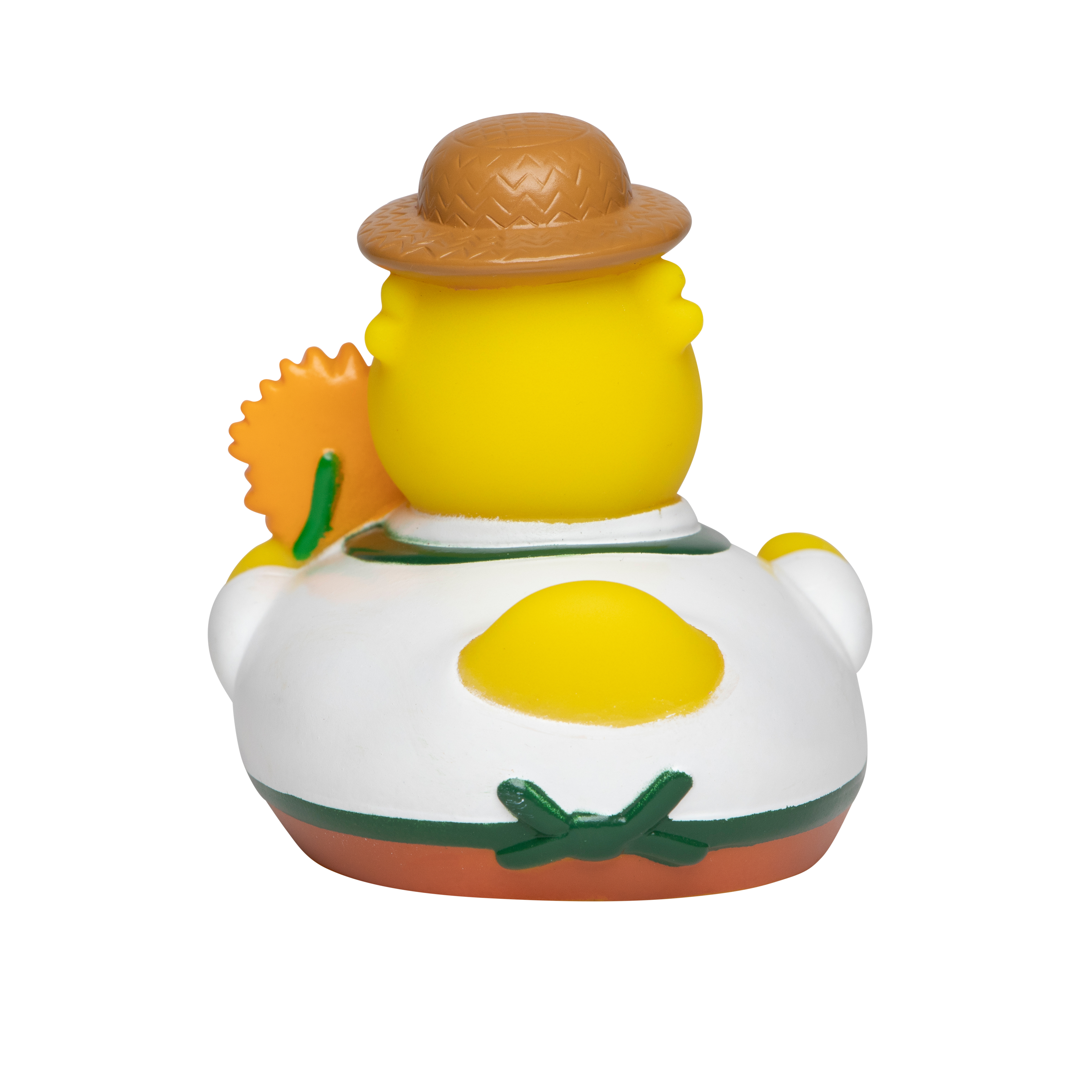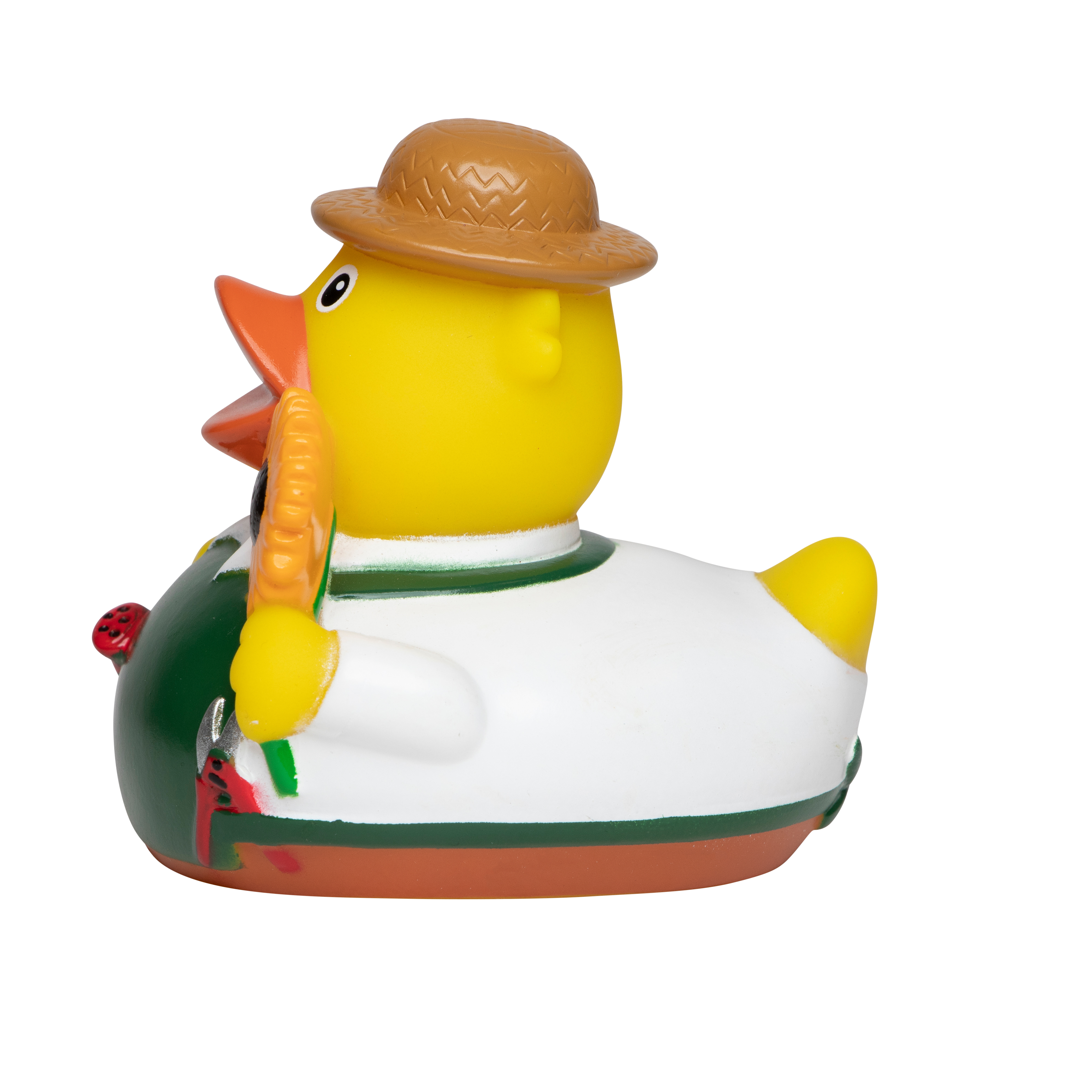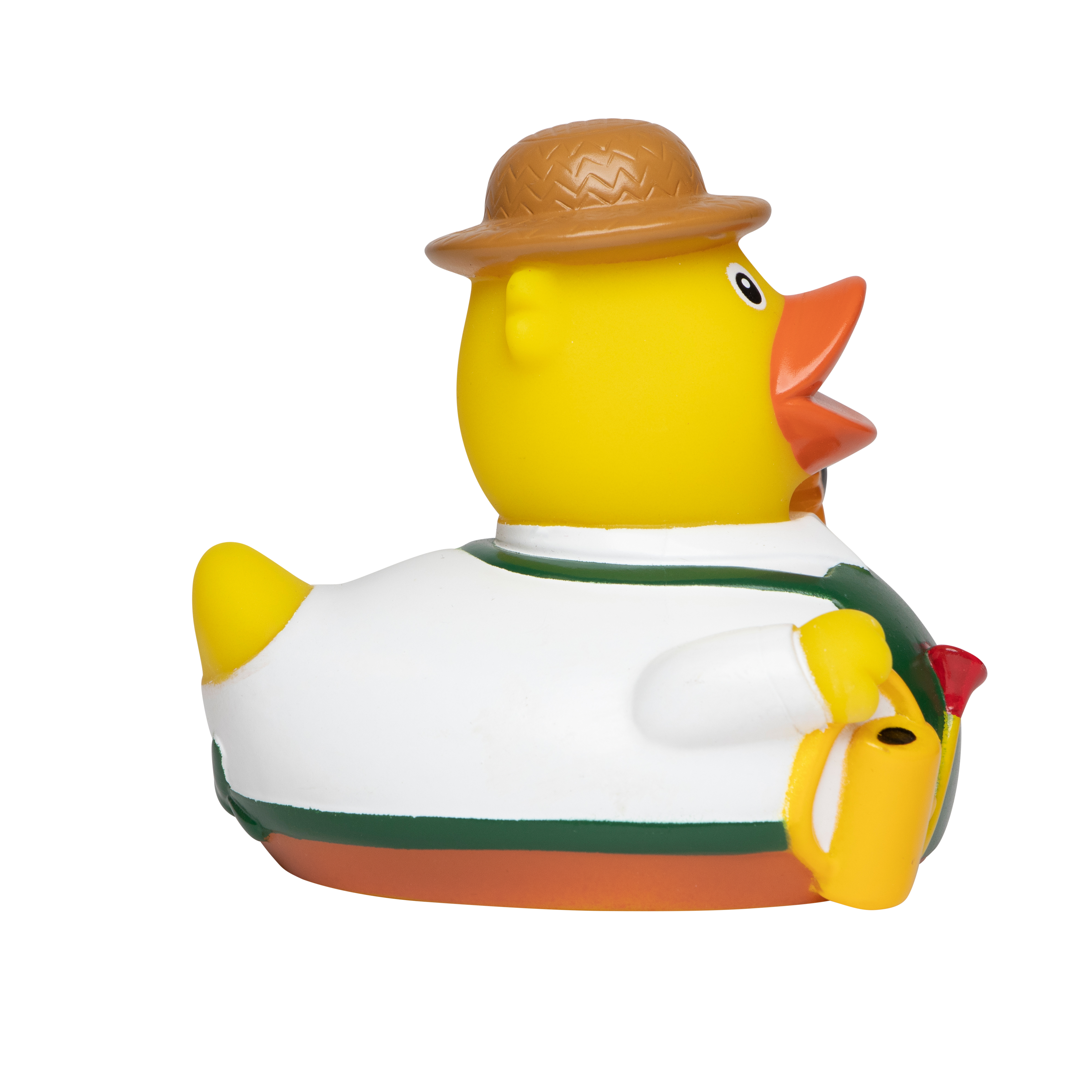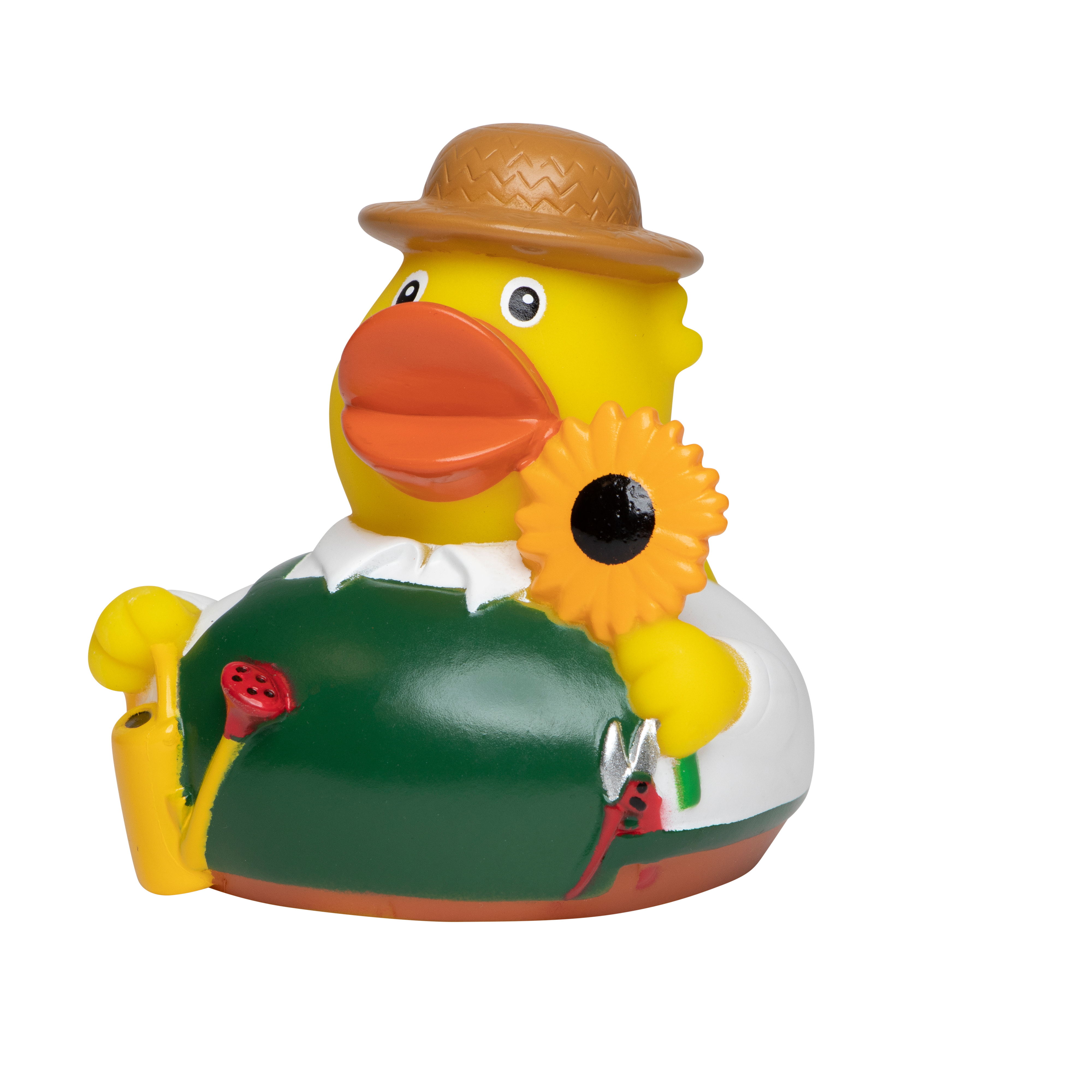 Unsere Gärtner-Ente mit Sonnenblume, Strohhut und gelber Gießkanne hat den grünen Daumen, und das ganz ohne Finger! Was diese Ente mit ihren Flügeln anpackt, wächst und gedeiht und mit der Gartenschere, die natürlich auch immer dabei ist, schneidet sie auch gerne mal eine der Blumen ab, um einen sonnigen Gruß mitzubringen.