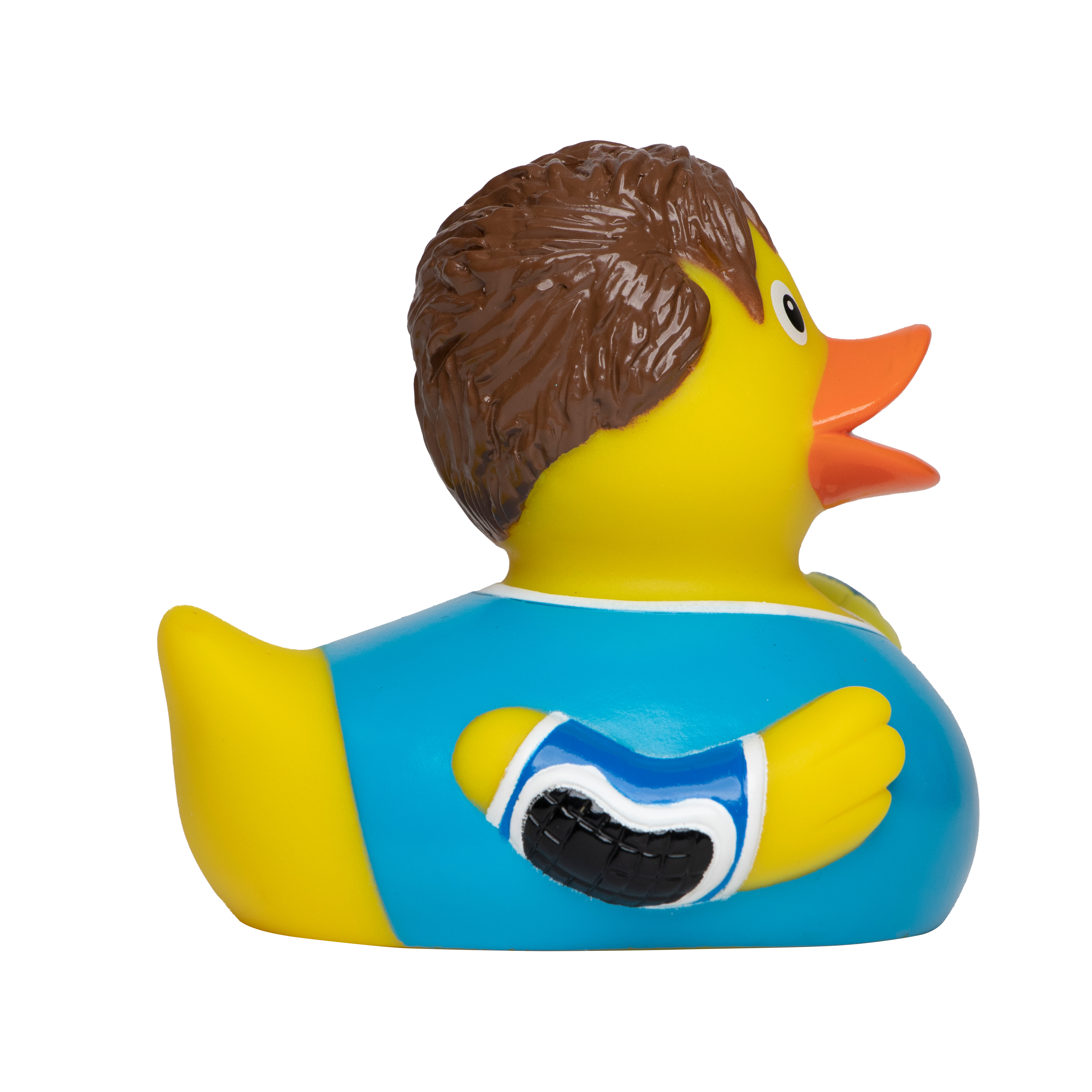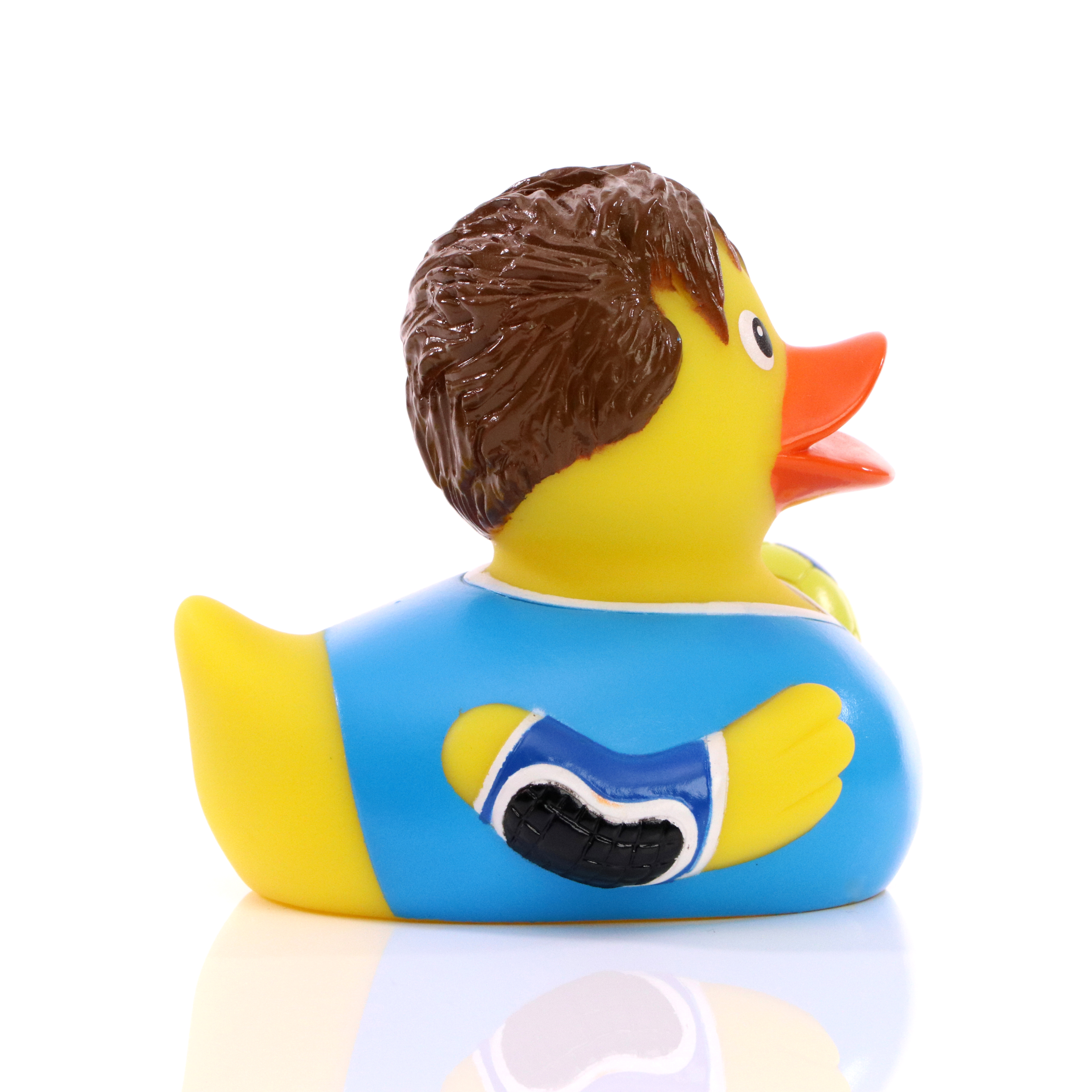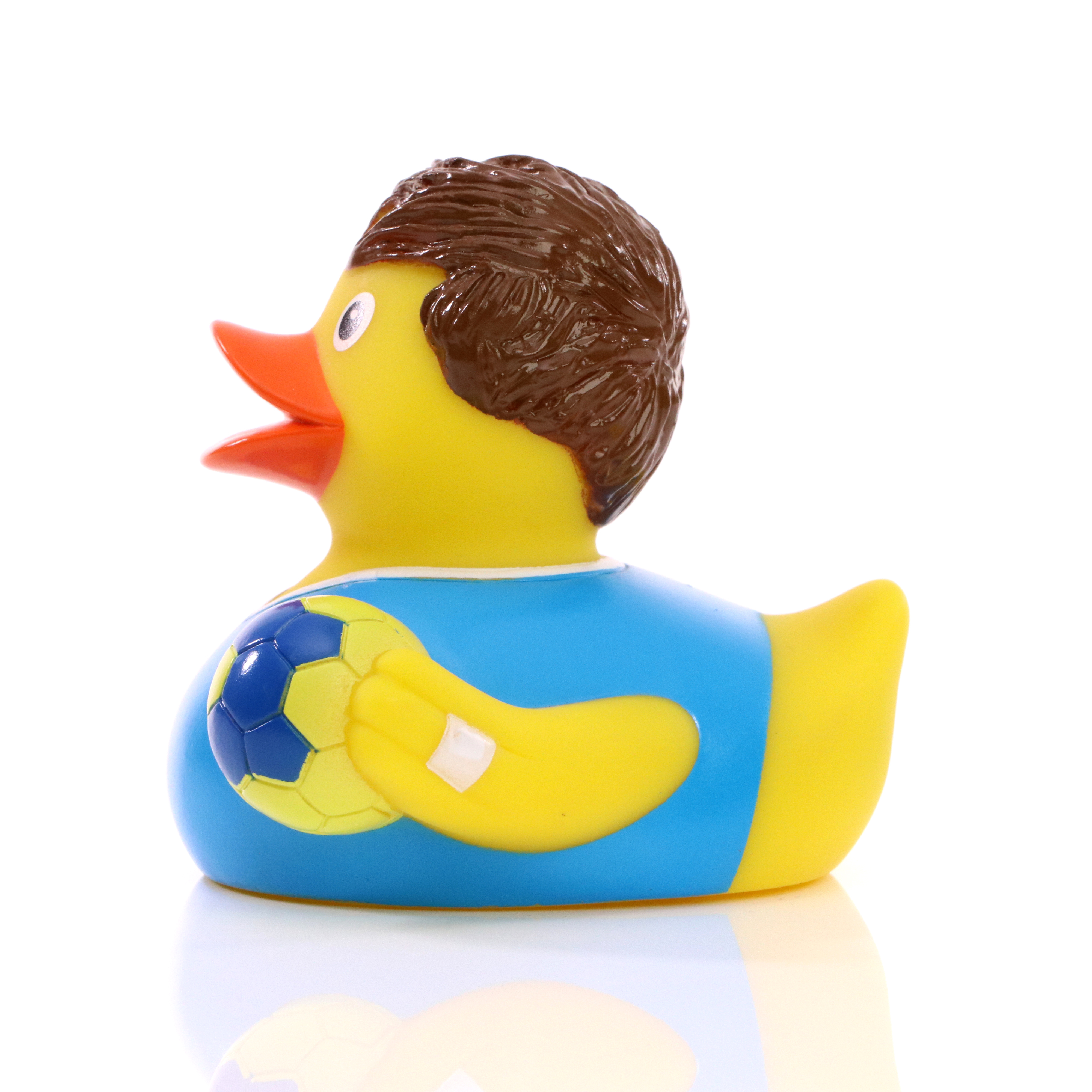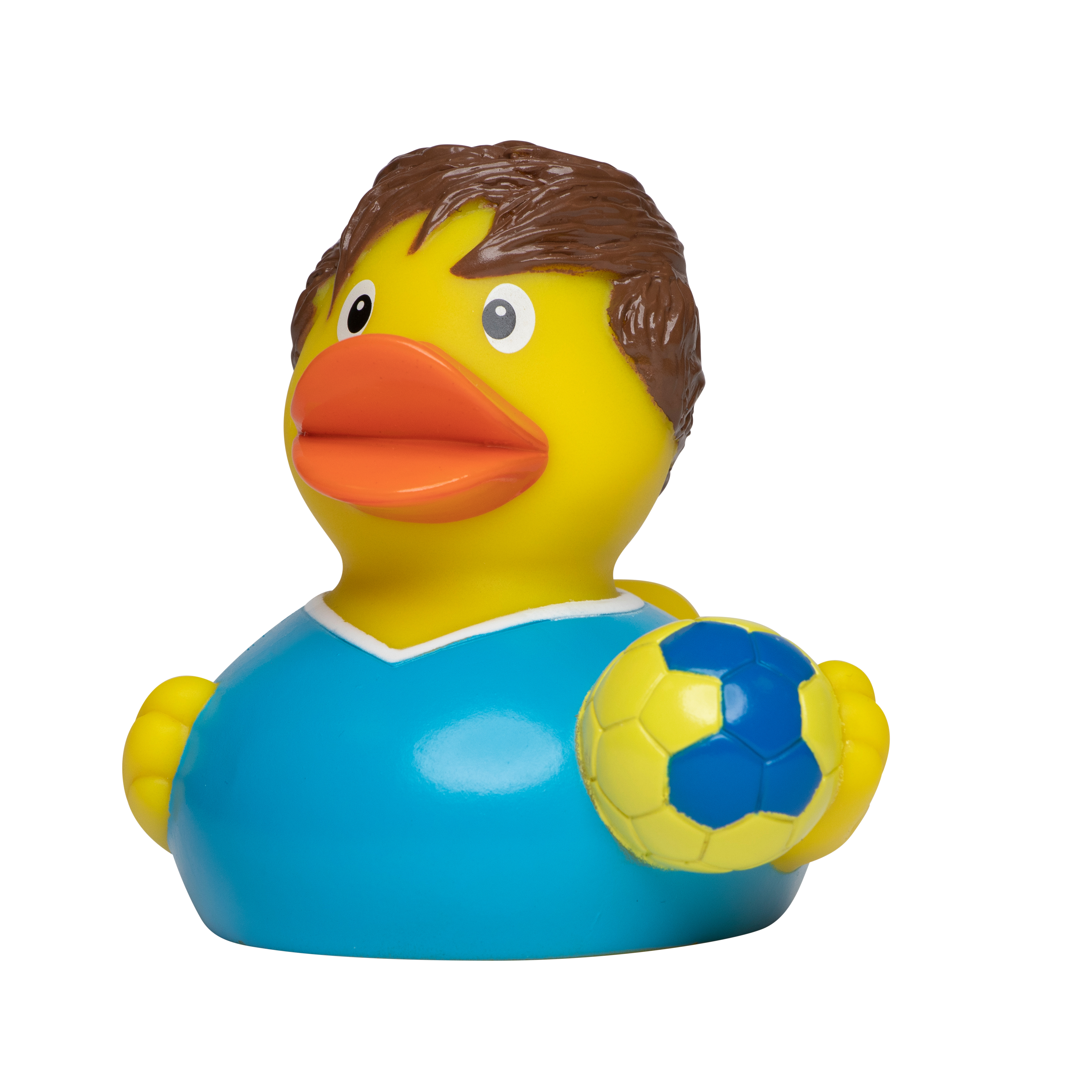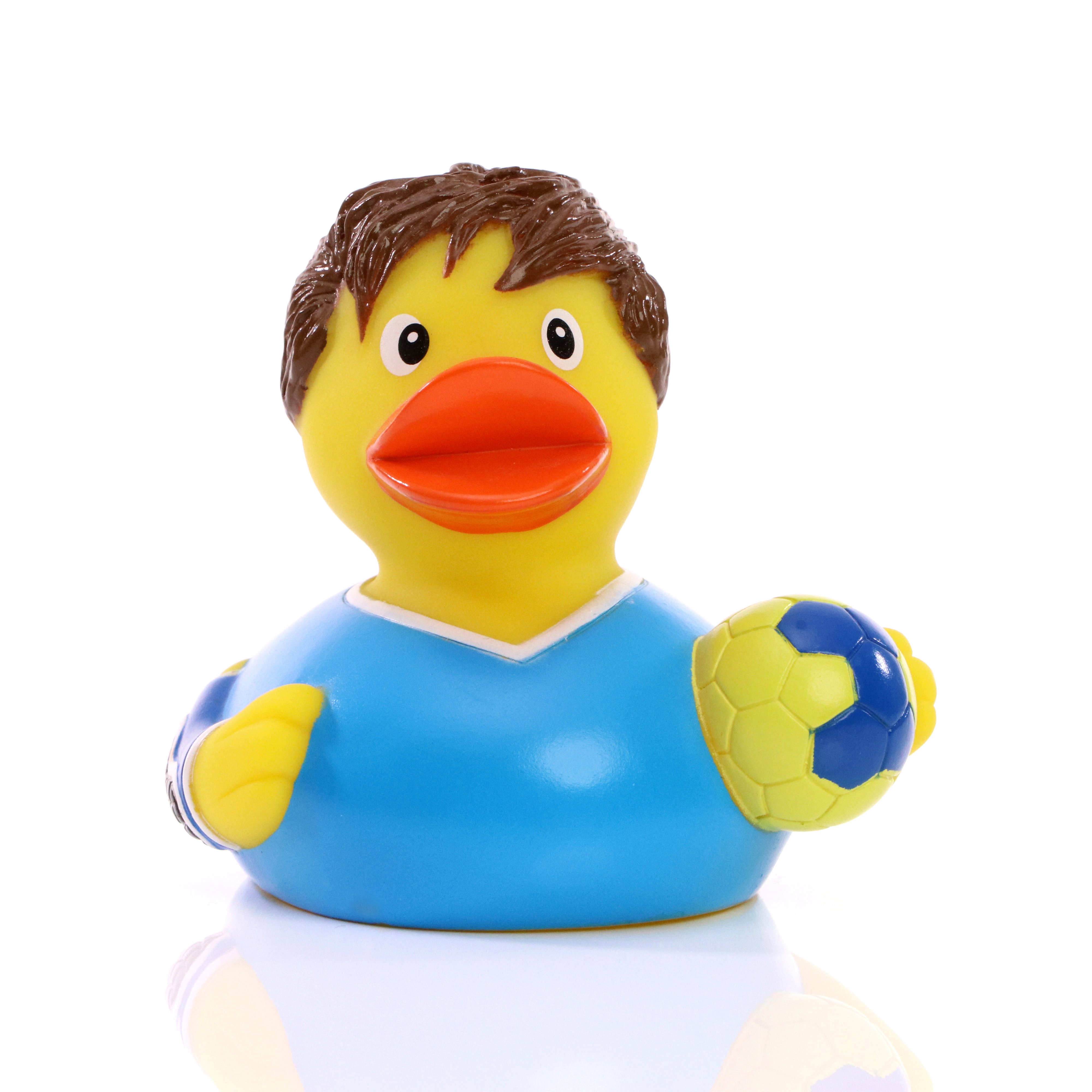 Unverzichtbar für alle Fans des Handballs. Dieses Schnabels® Exemplar ist mindestens so cool und sportlich, wie seine Vorbilder auf dem Spielfeld. Die Quietsche-Ente Handball tritt mit Geschmacksmusterschutz an und macht sicher nicht nur als Maskottchen einen klasse Job.