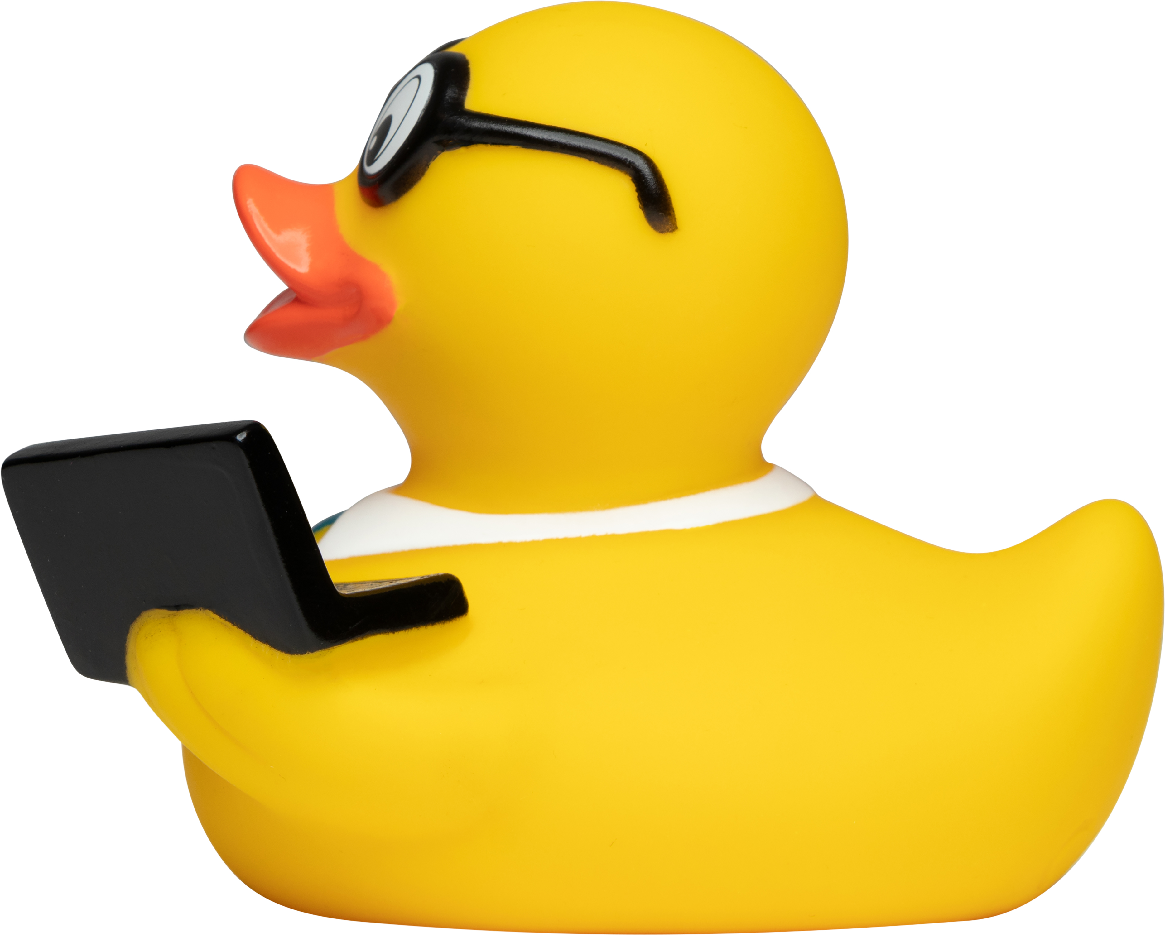 Unsere geschäftstüchtige Ente hat ihren Laptop immer dabei und kann so immer und überall die wichtigsten Geschäfte tätigen. Durch das Headset am Ohr, ist sie für ihre Geschäftspartner stets erreichbar und mit Schlips, Kragen und der Brille auf der Nase machte diese Ente einen höchst seriösen Eindruck.