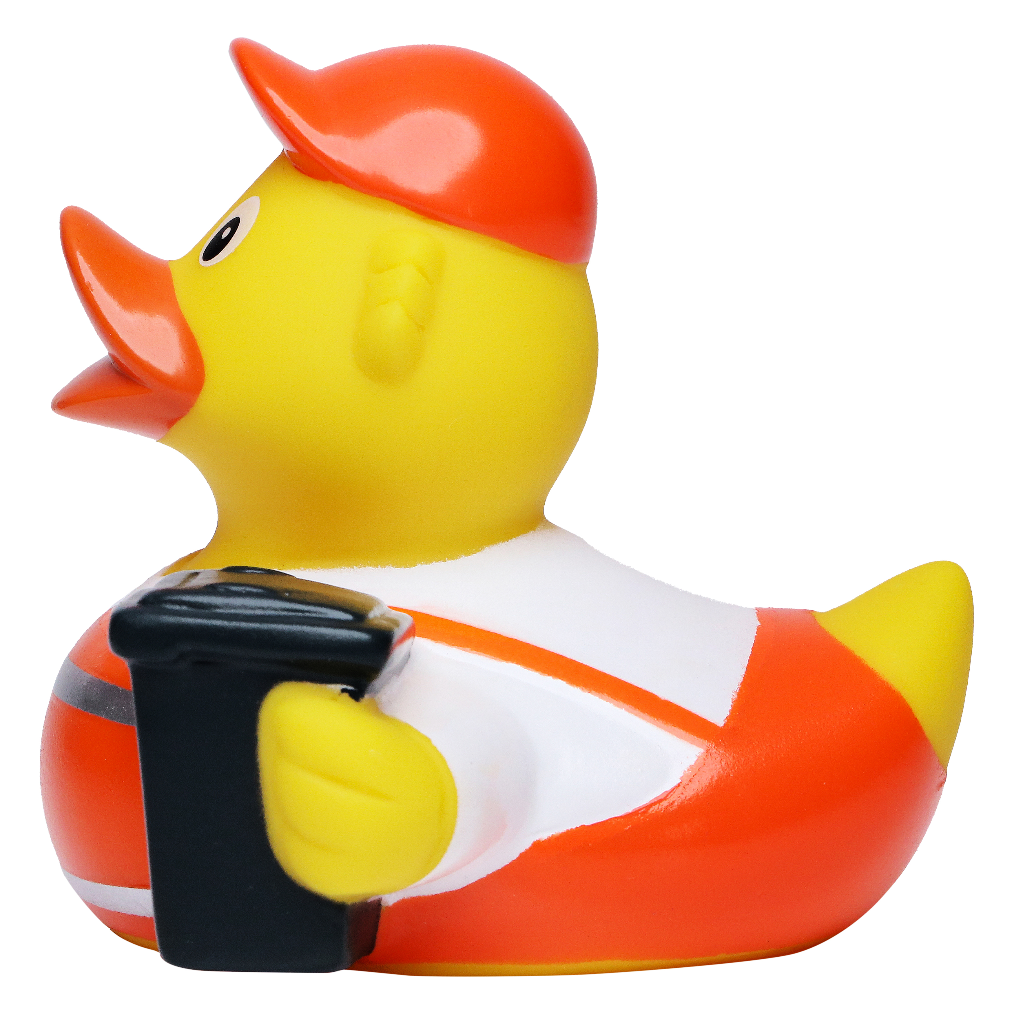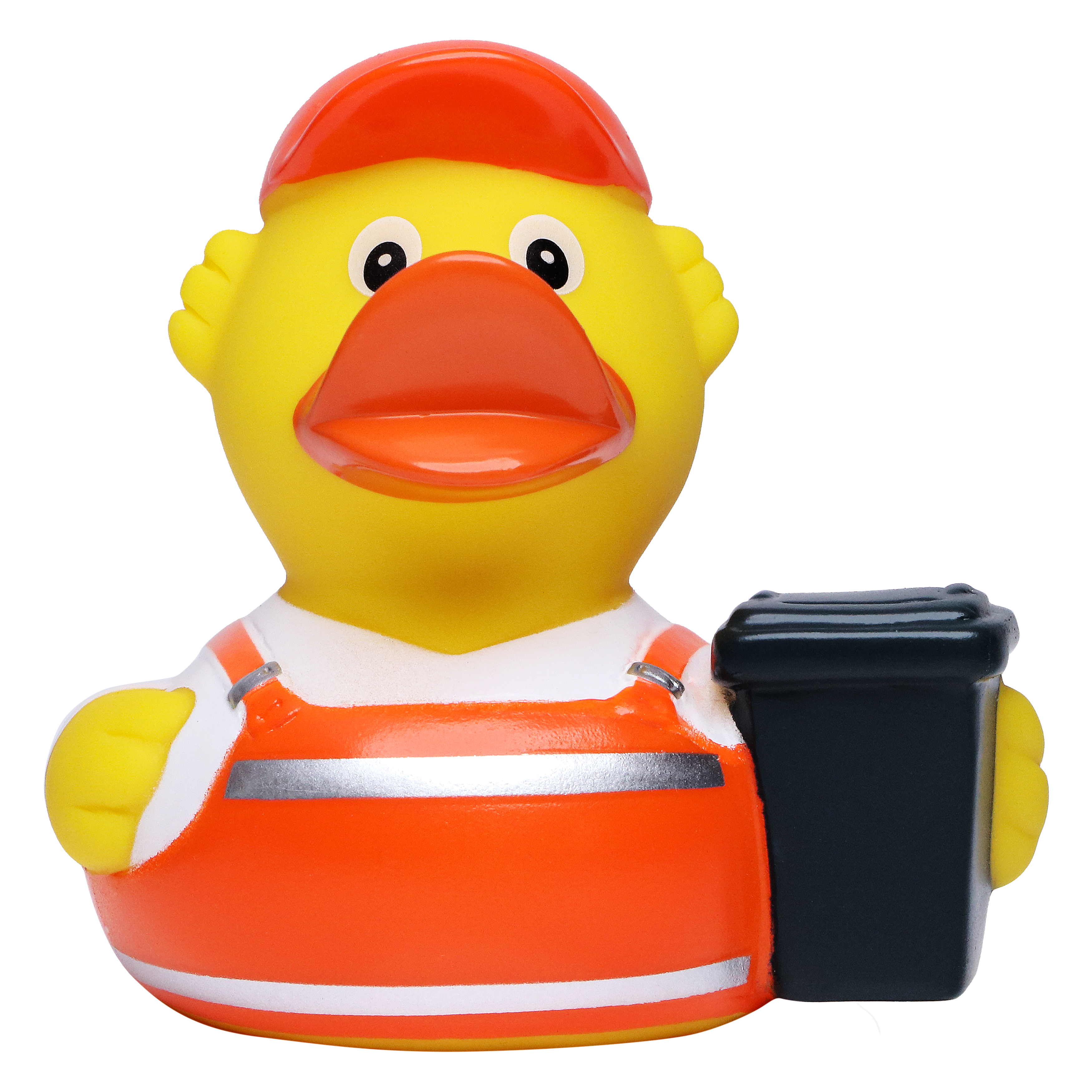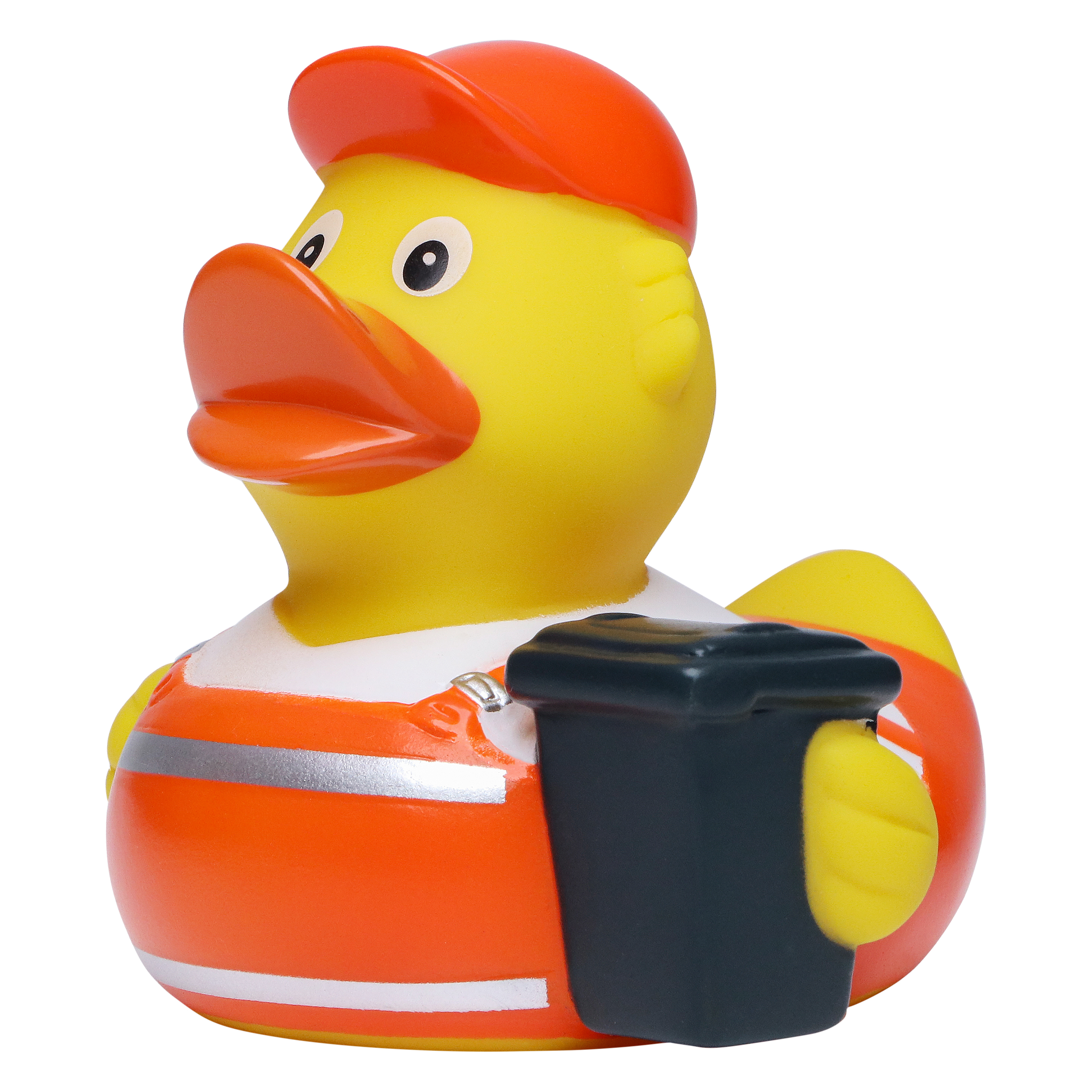 Quietsche-Ente Müllmann sorgt zumindest visuell für Ordnung im Alltag. Charmant macht er seinen Job und bringt ganz nebenbei noch 8 cm geballte Power und Geschmacksmusterschutz mit. Bis ins Detail schlüpft dieses Schnabels® Exemplar in das bekannte Müllmann-Outfit und bringt sorgar eine kleine Mülltonne mit.