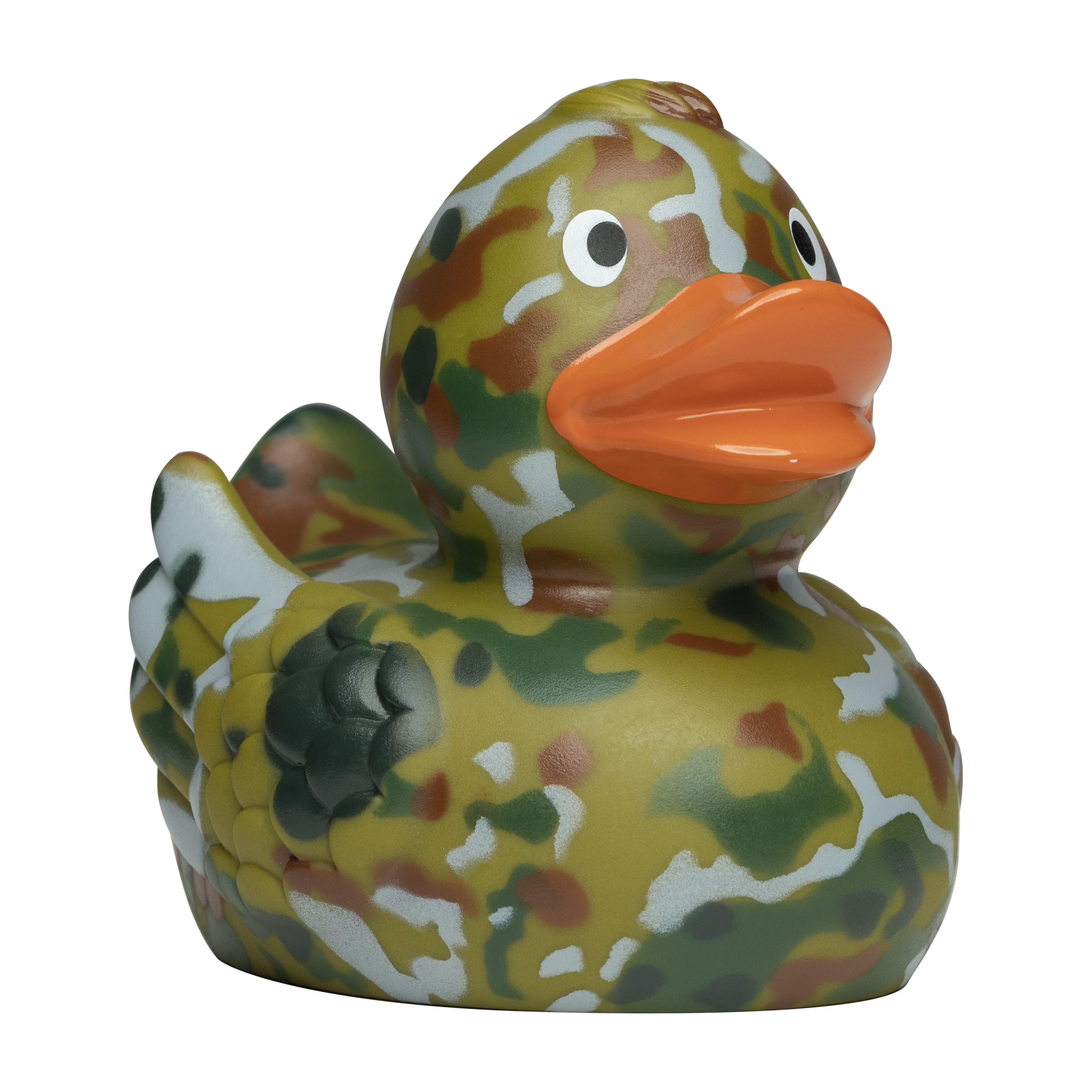 Hier kommt eine Badeentchen in geheimer Mission. Um nicht gleich gesehen zu werden, hat es sein leuchtend gelbes Gefieder geschickt mit einem Camouflagemuster und deckenden Farben umhüllt. Wie die geheime Mission lautet? Bringe die Menschen zum Lächeln. Wir sagen: Das wird ihr mühelos gelingen.