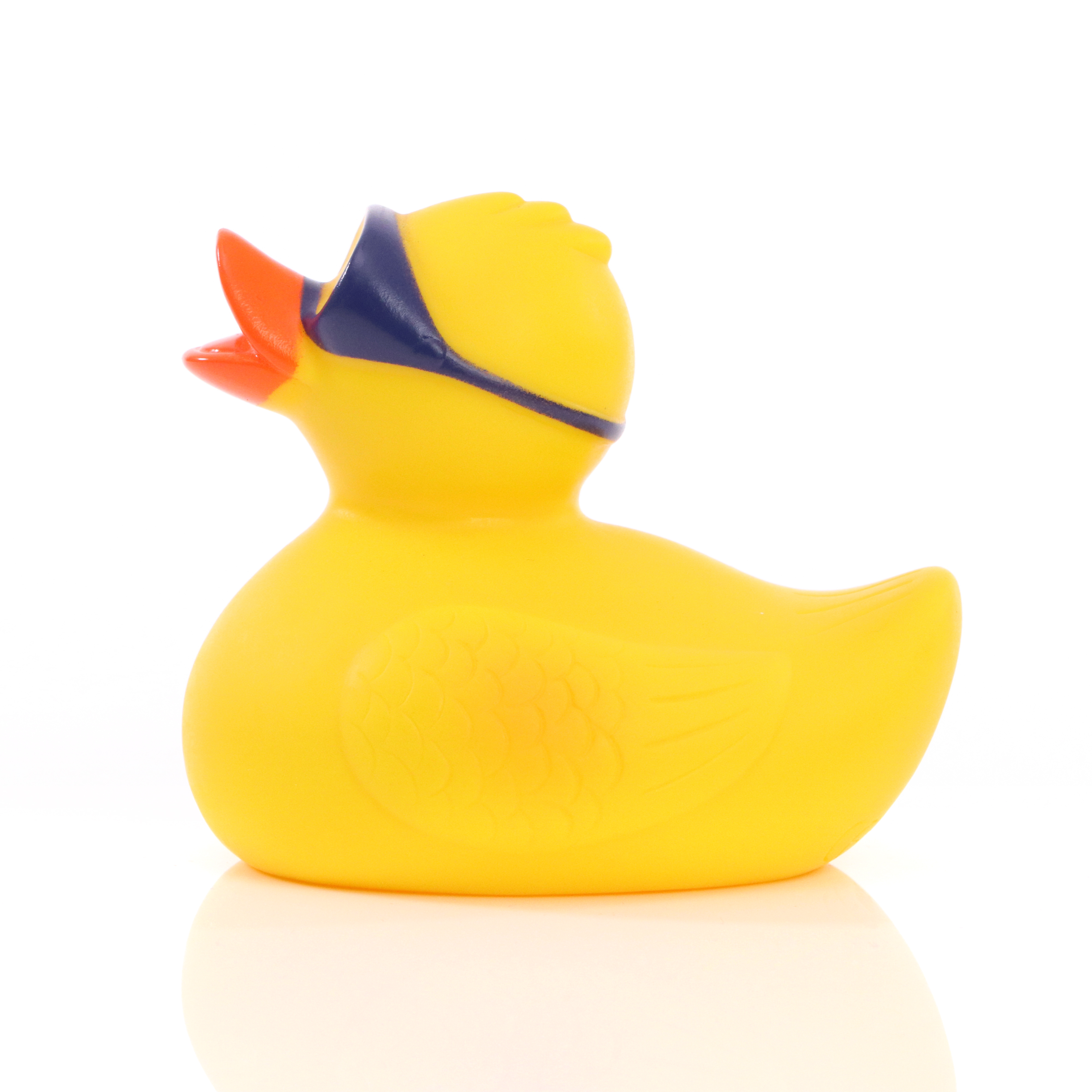 Mit der blauen Taucherbrille kommt dieser Ente kein Wasser in ihre Augen und sie kann unter den Schaumbergen in der Badewanne alles entdecken, was auf dem Grund verborgen liegt – so kann in Ihrer Wanne wirklich gar nichts mehr verloren gehen.
