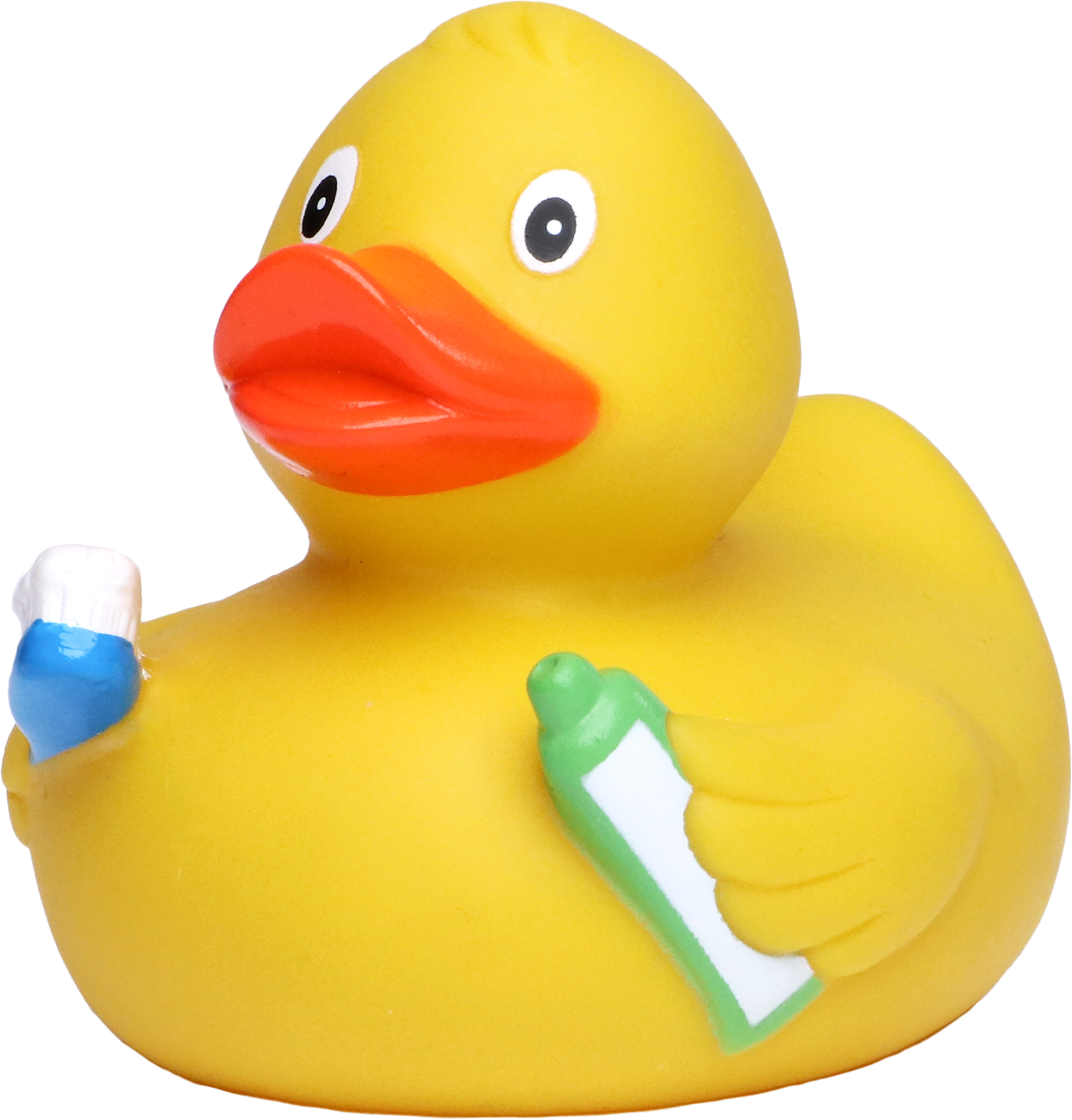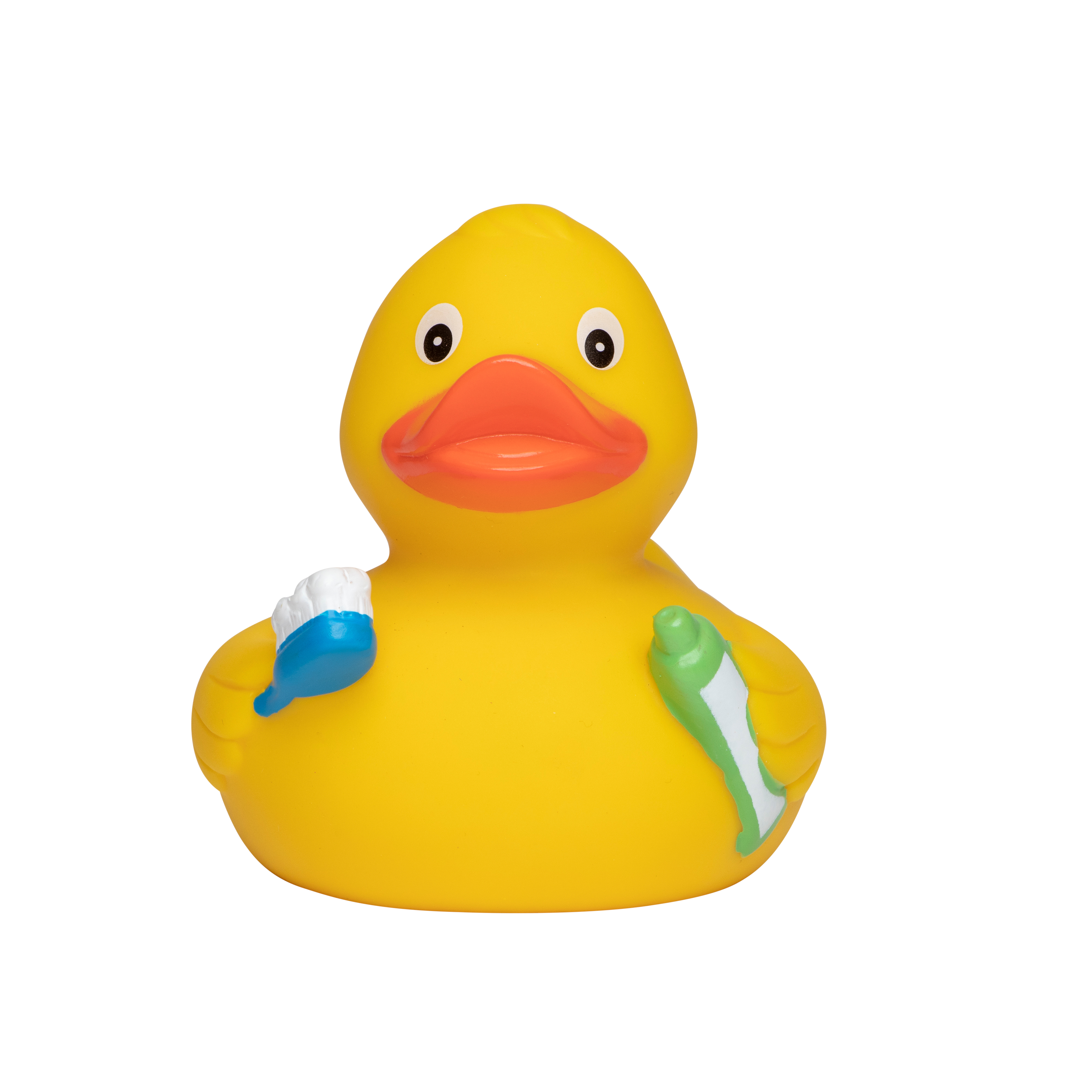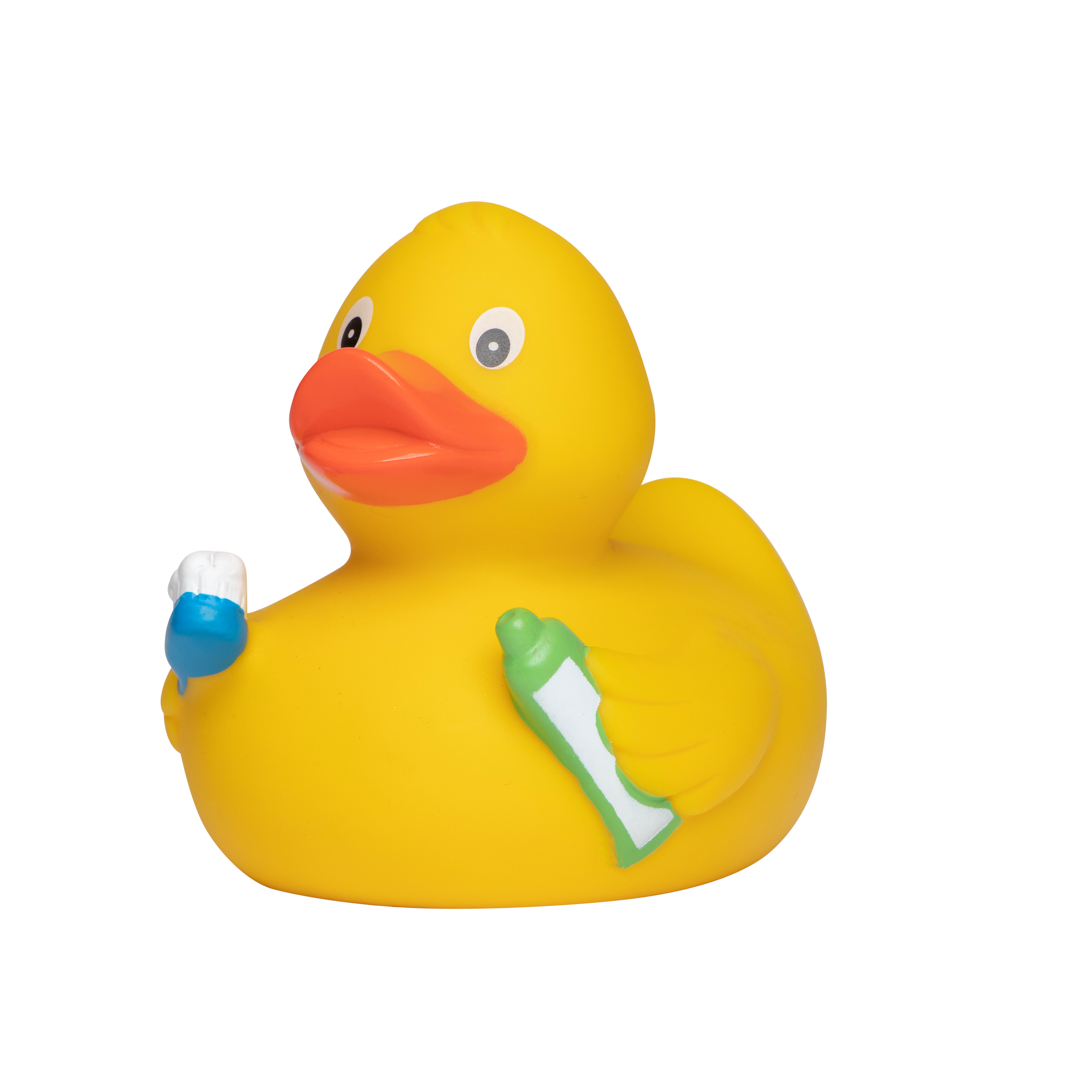 Die Zahnbürste im einem Flügel, die Zahnpasta im anderen - damit die Zähne auch immer schön sauber und lange gesund bleiben. Als kleine Zahnputzerinnerung ist diese Ente ebenso gut geeignet wie als Deko neben dem Zahnputzbecher.