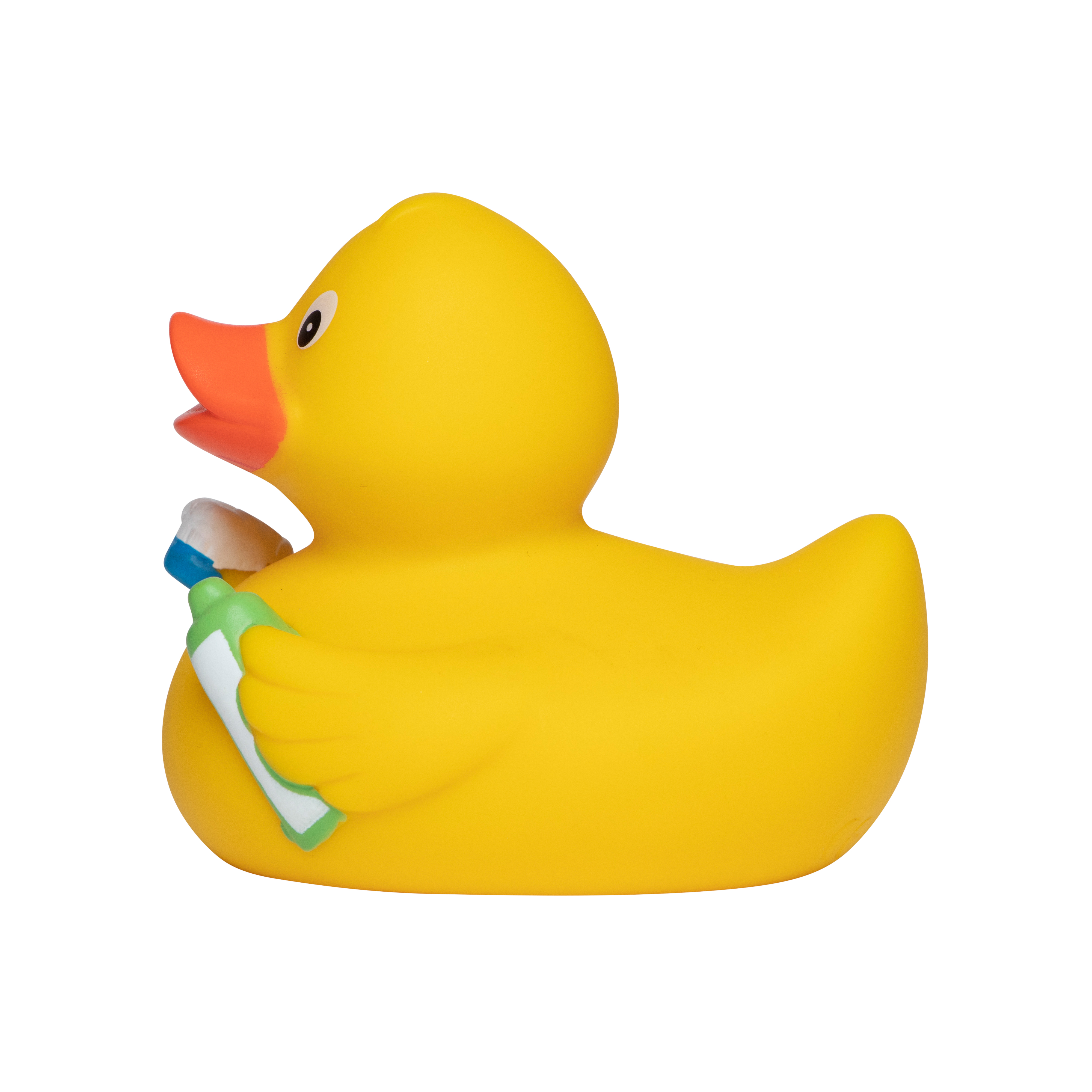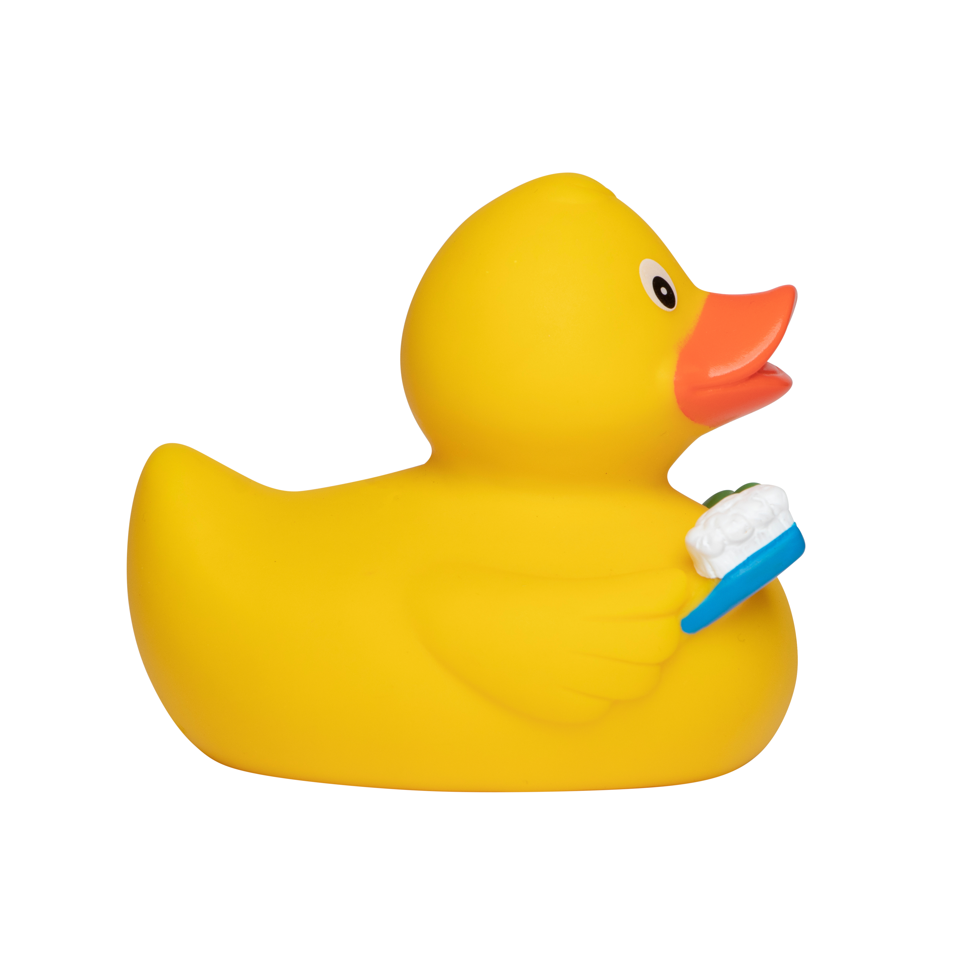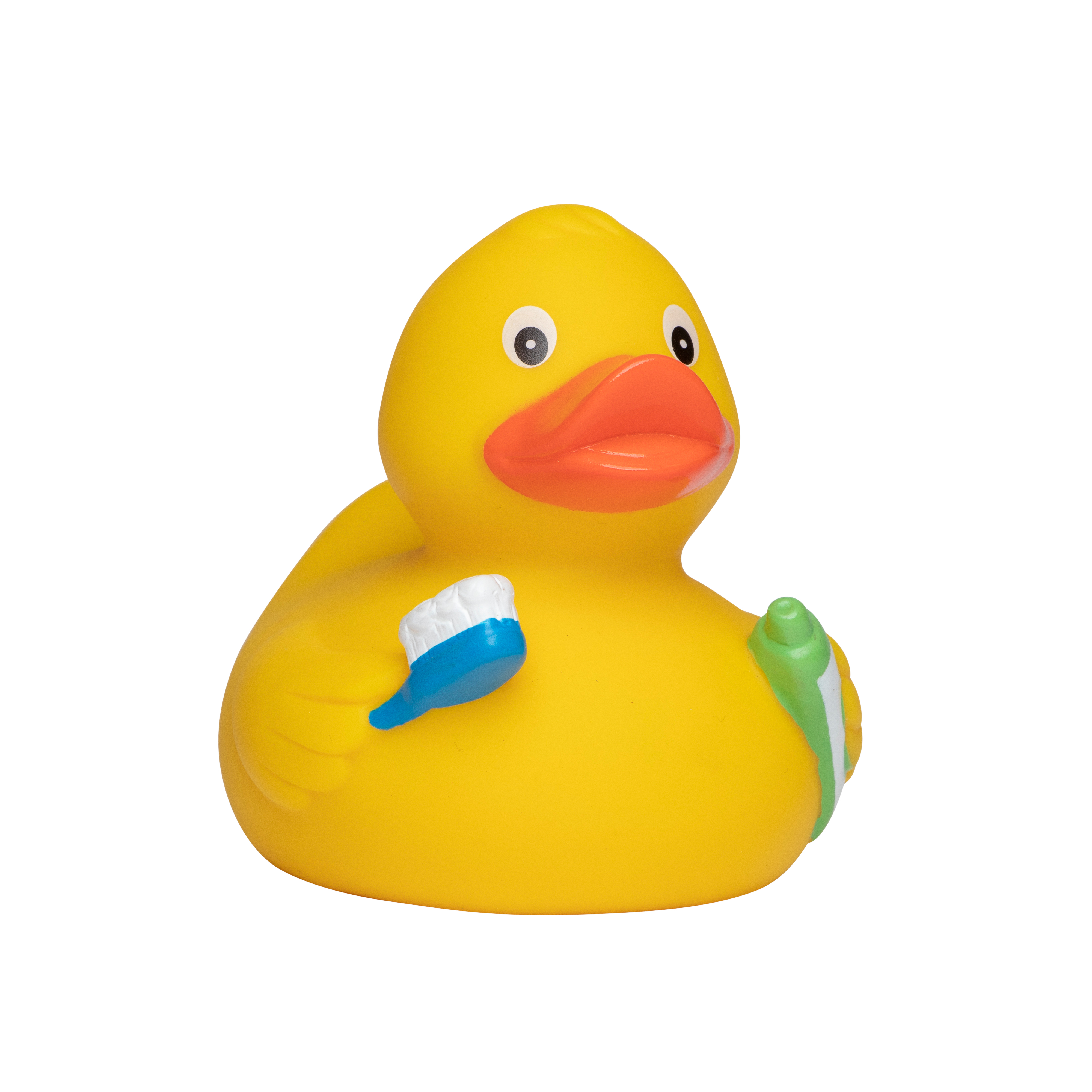 Die Zahnbürste im einem Flügel, die Zahnpasta im anderen - damit die Zähne auch immer schön sauber und lange gesund bleiben. Als kleine Zahnputzerinnerung ist diese Ente ebenso gut geeignet wie als Deko neben dem Zahnputzbecher.