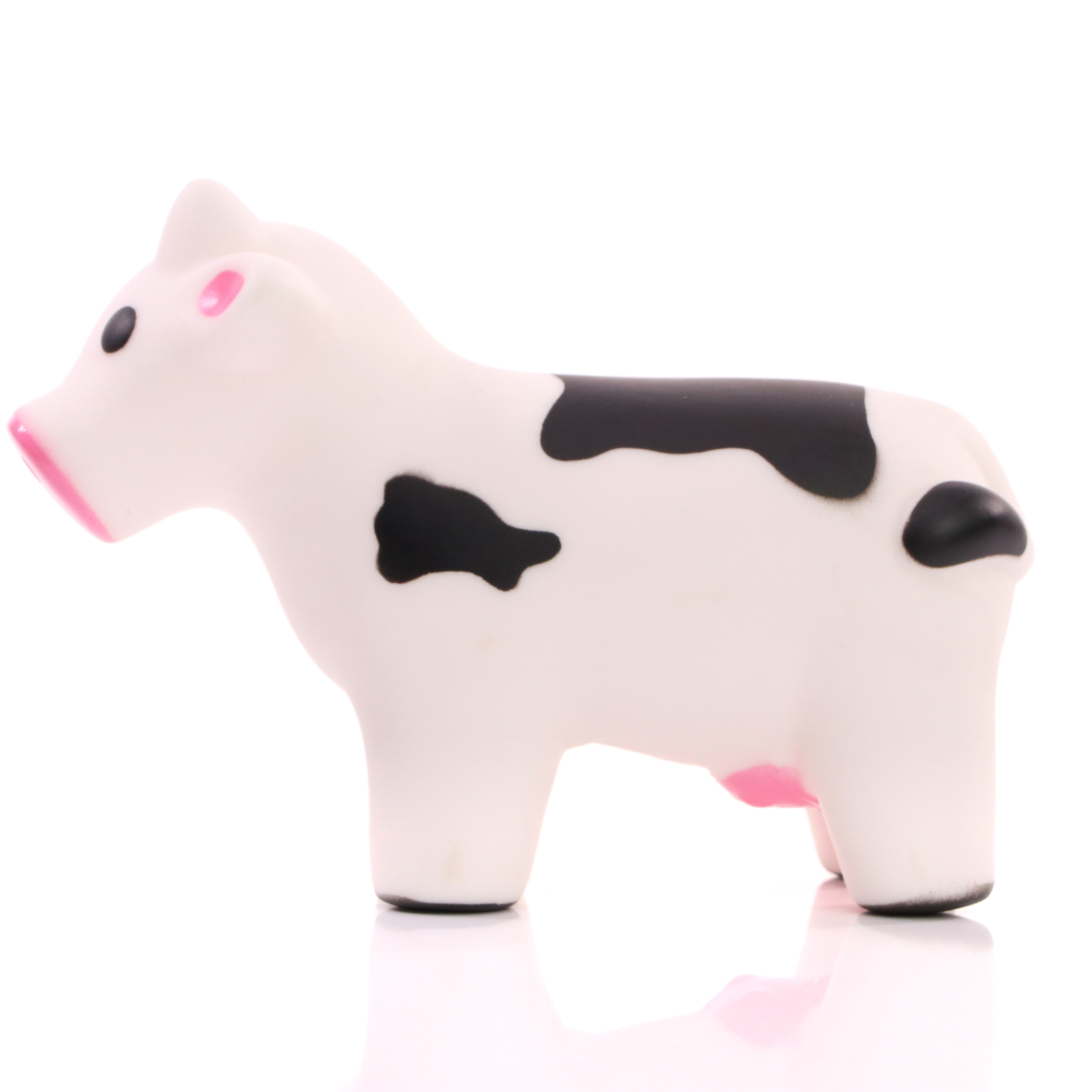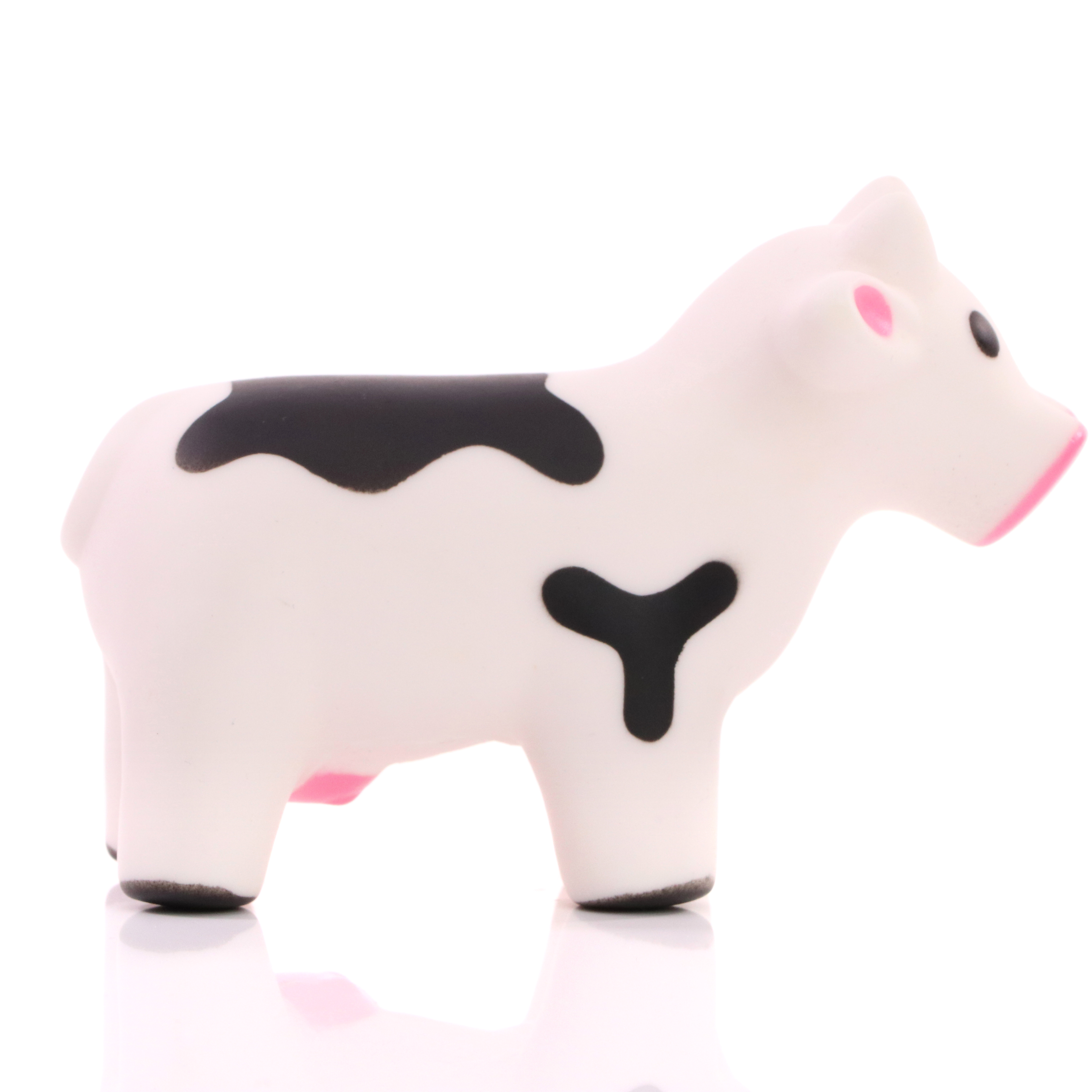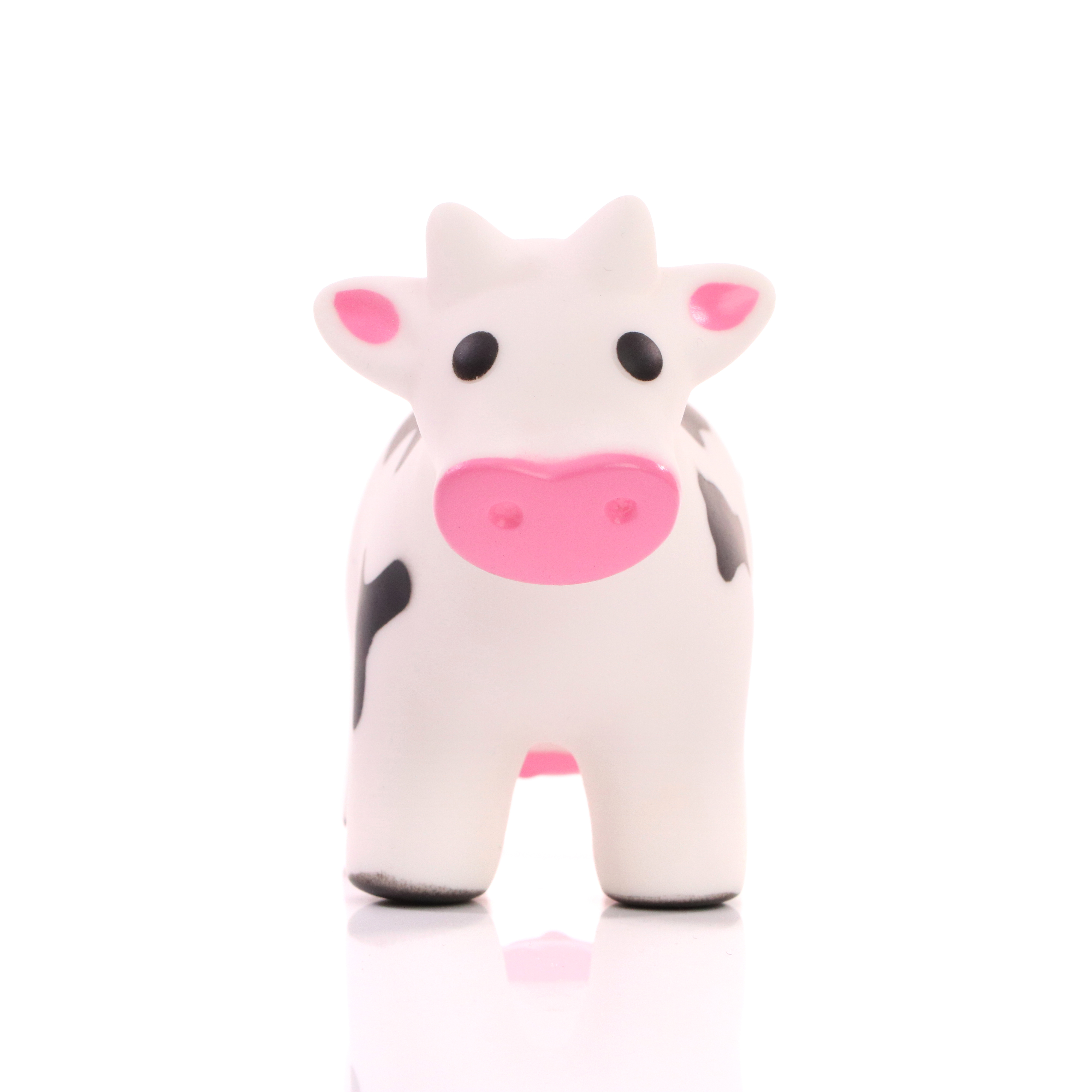 Nicht nur die kleinen gelben Enten können quietschen und in den Badewannen dieser Welt gute Laune verbreiten. Unsere Kuh liebt es zu planschen und für lächelnde Badewannenfreunde zu sorgen.