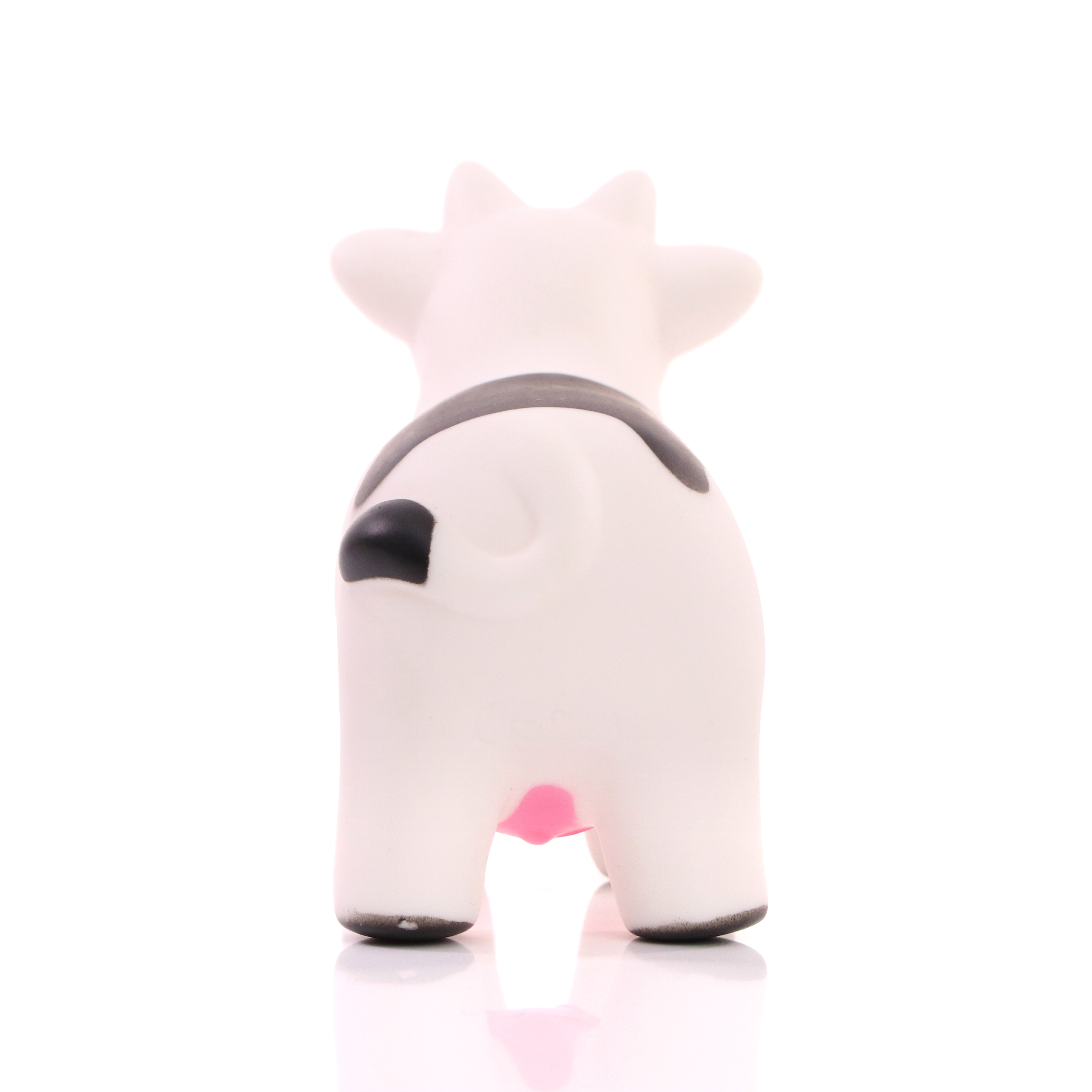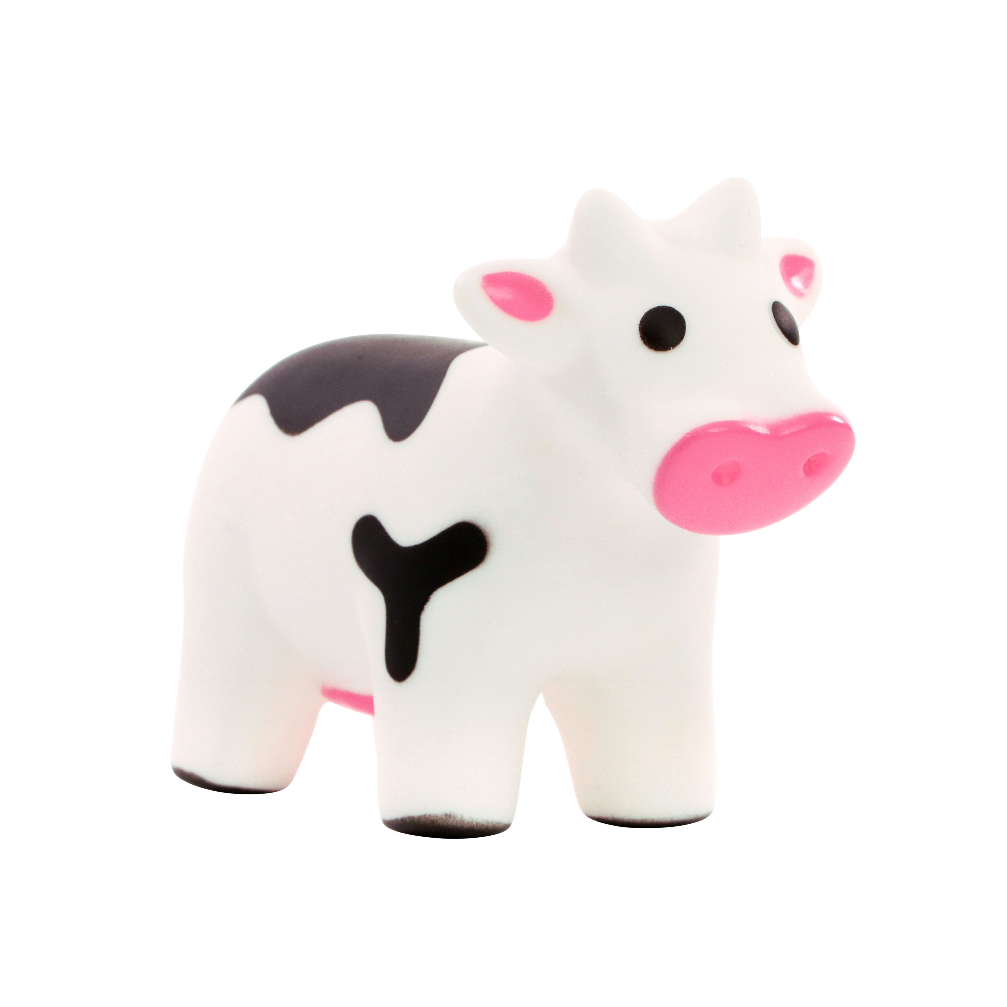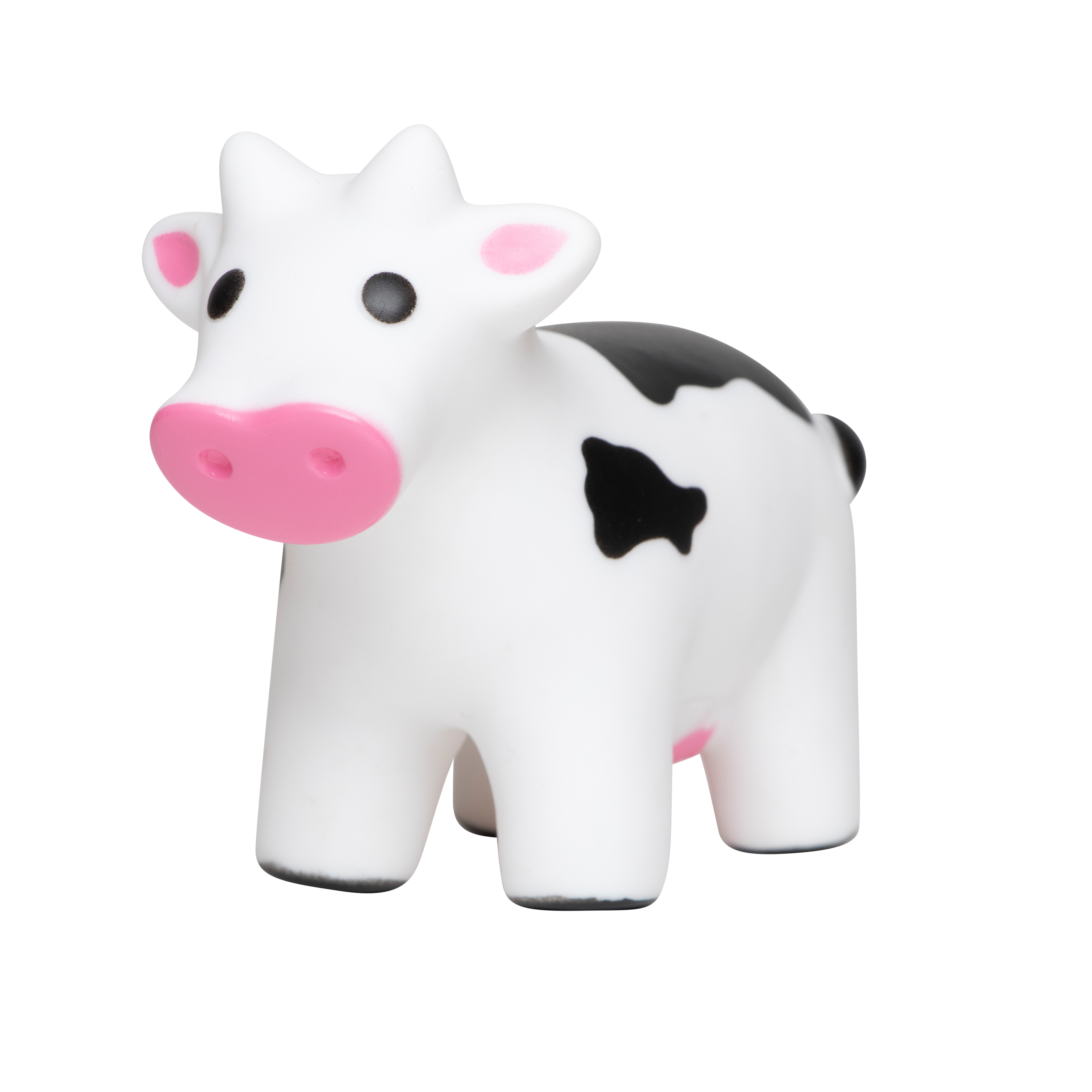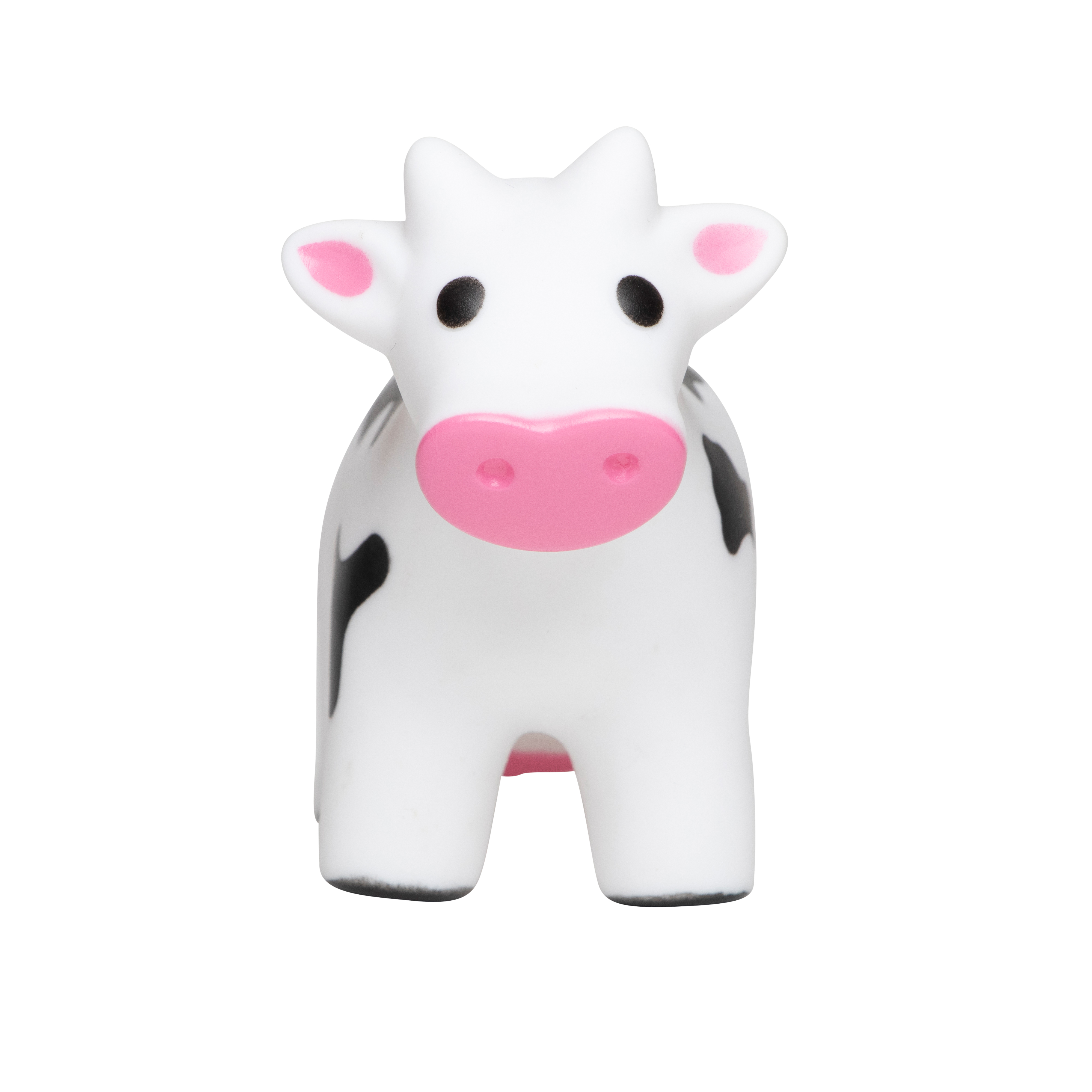 Nicht nur die kleinen gelben Enten können quietschen und in den Badewannen dieser Welt gute Laune verbreiten. Unsere Kuh liebt es zu planschen und für lächelnde Badewannenfreunde zu sorgen.