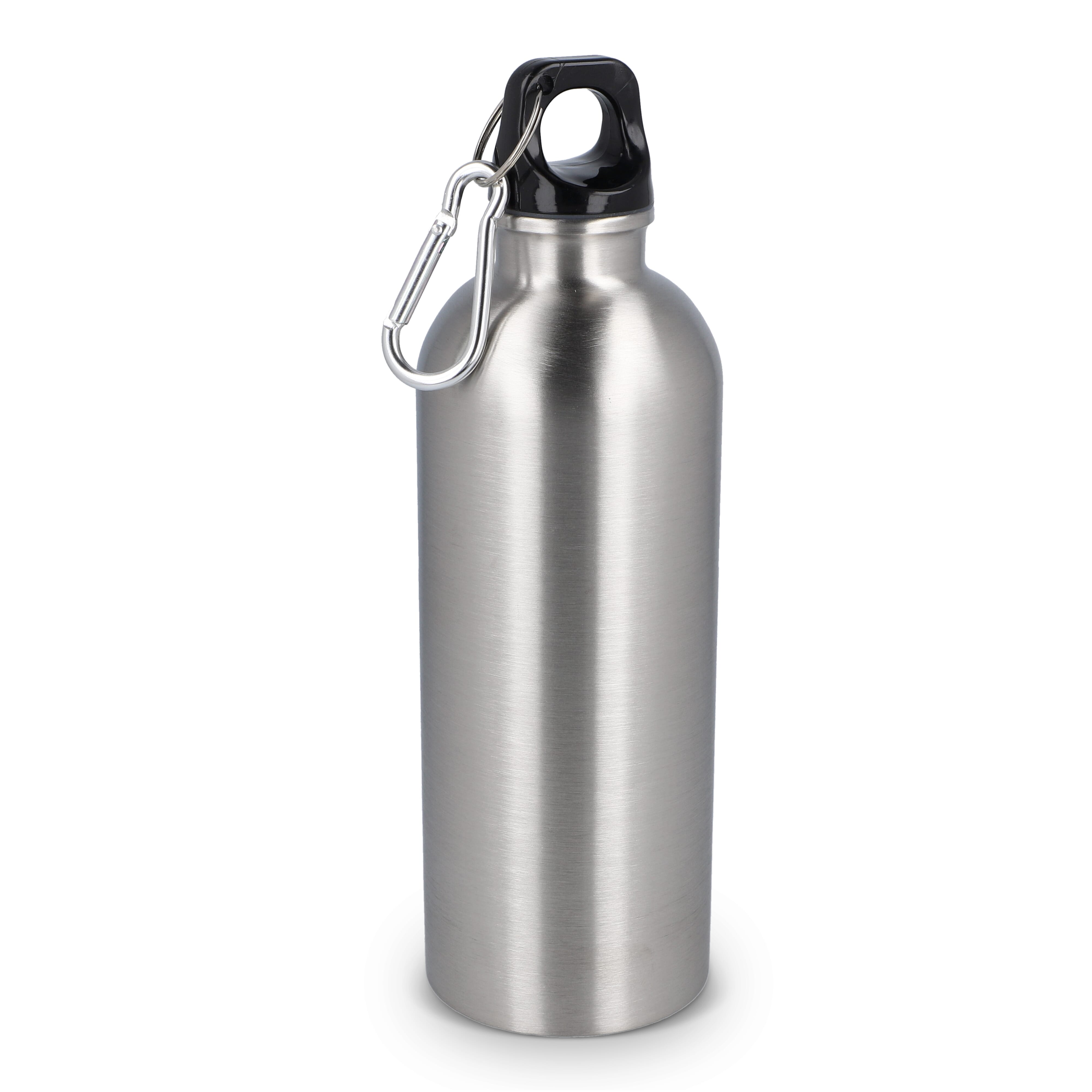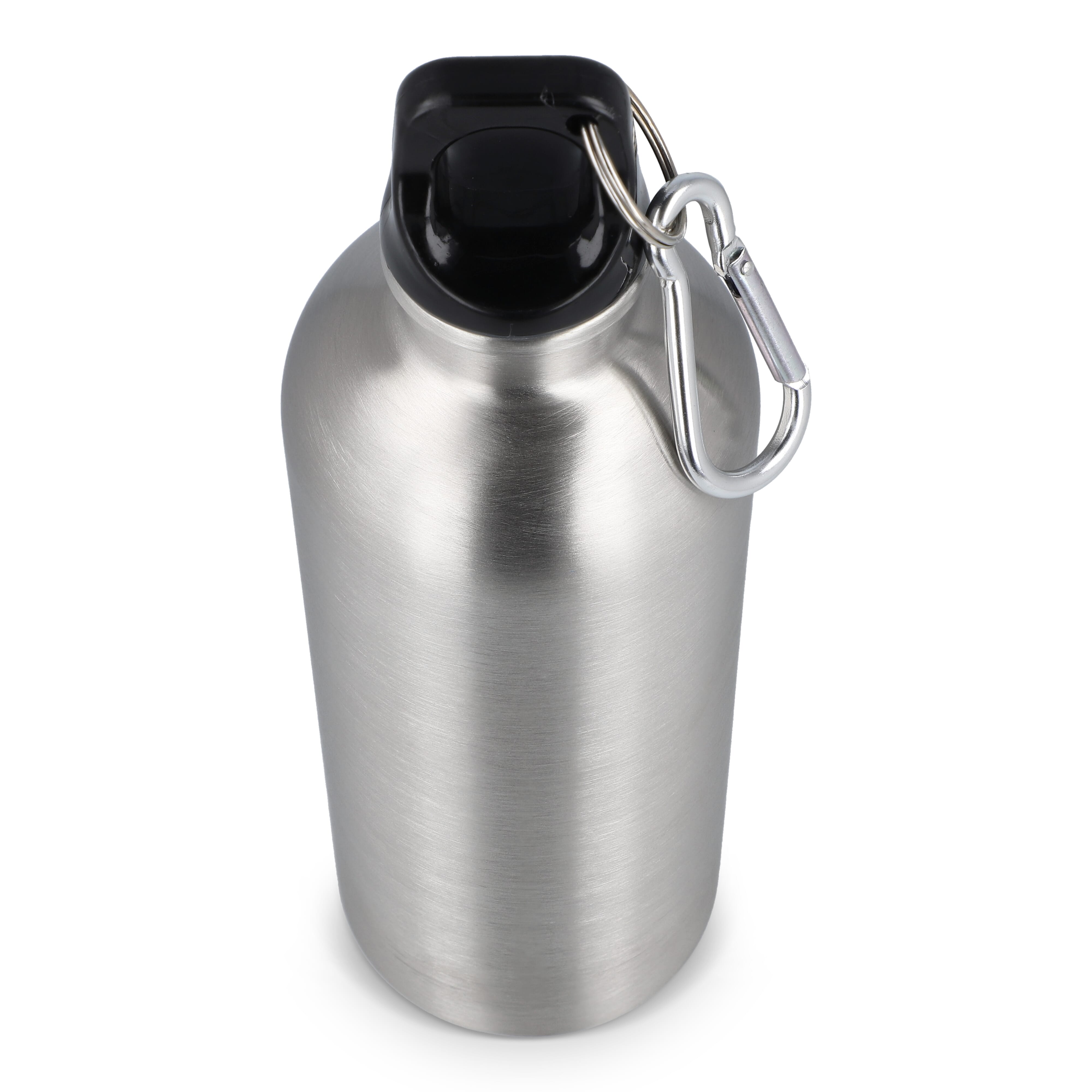 Eine robuste, einwandige 500-ml-Flasche aus recyceltem Edelstahl mit Karabinerhaken zum einfachen Befestigen an Taschen oder sonstige Ausrüstung. Die Flasche ist leicht, wiederverwendbar und ideal, um unterwegs ausreichend Flüssigkeit zu sich zu nehmen. Erhältlich in verschiedenen glänzenden und metallic Farben. Jede Flasche ist in einer Geschenkbox verpackt.
