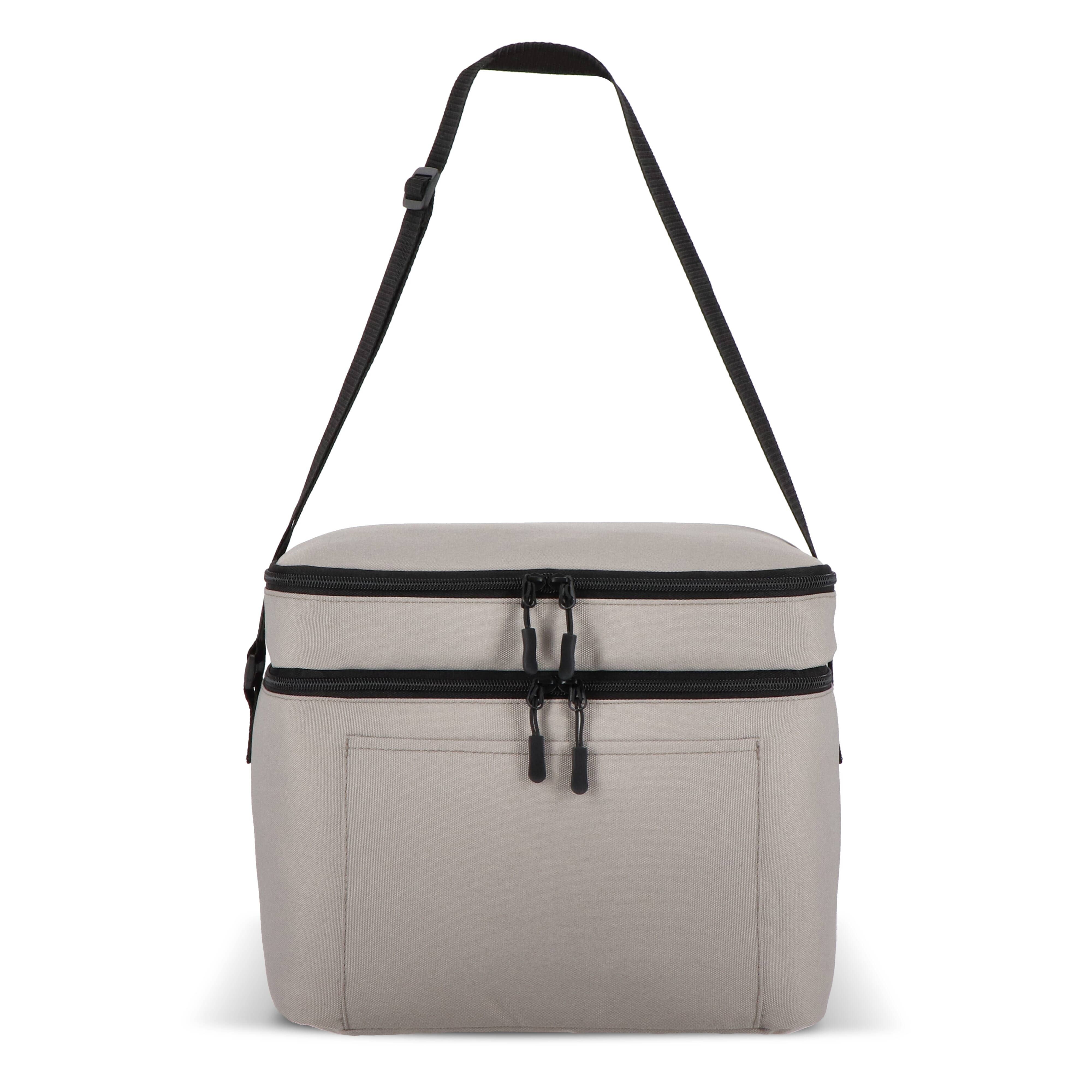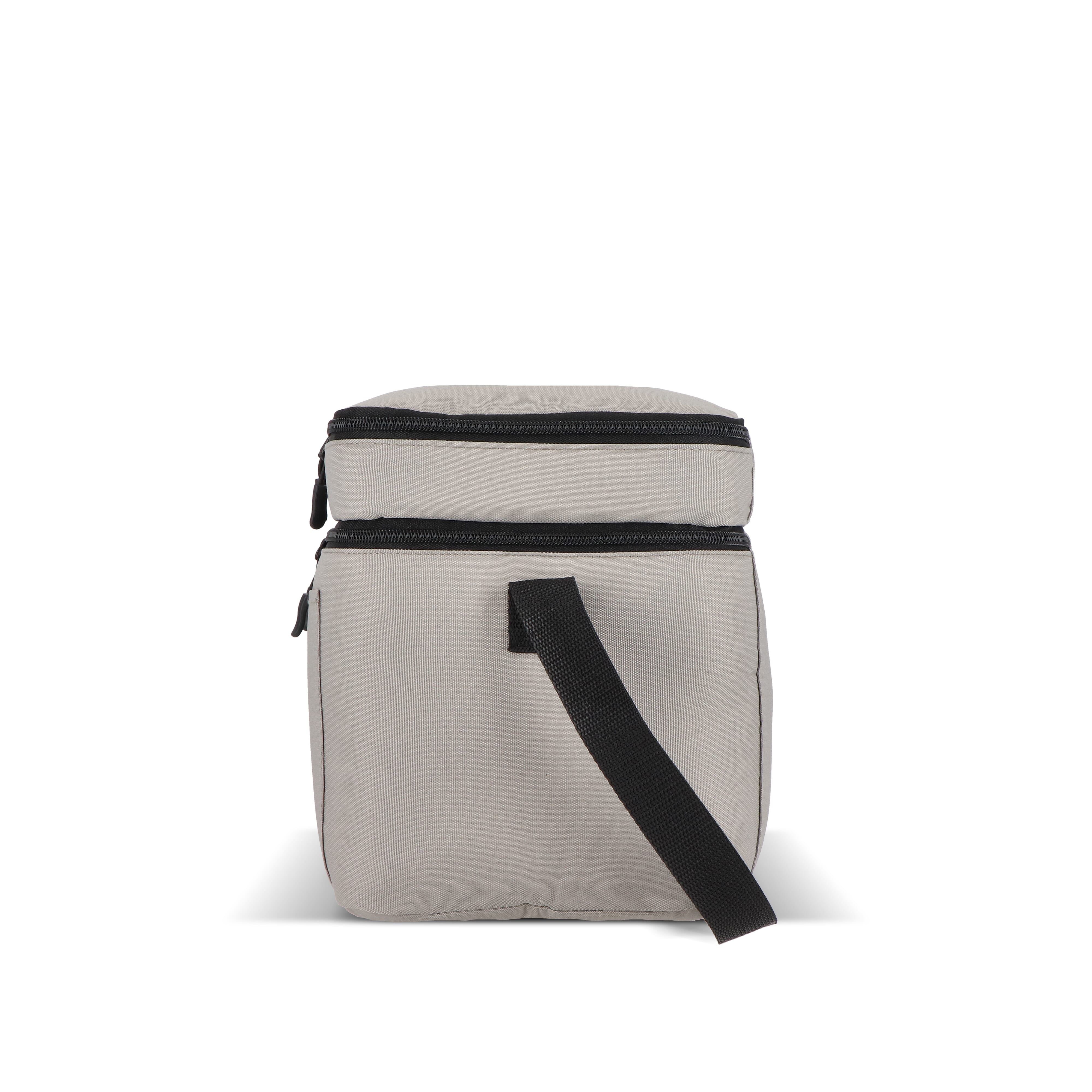 Kühltasche aus recyceltem 600D-PET mit einem Fassungsvermögen von 15 Litern, mit einem größeren Bodenfach und einer kleineren oberen Tasche. Das isolierte PEVA-Futter ermöglicht es Ihnen, warme und kalte Gegenstände getrennt aufzubewahren, während der verstellbare Schultergurt für bequemen Tragekomfort sorgt – perfekt für unterwegs.